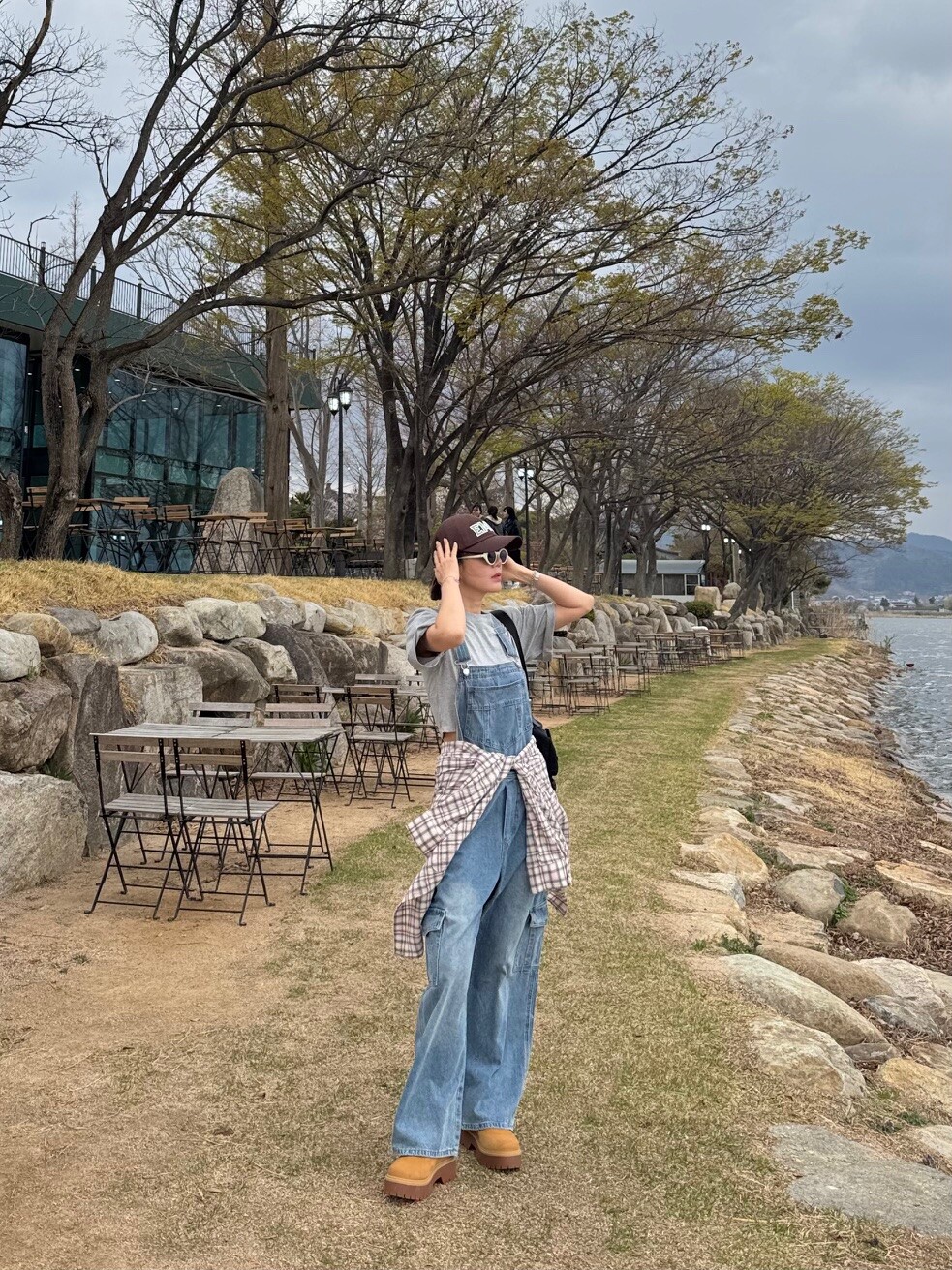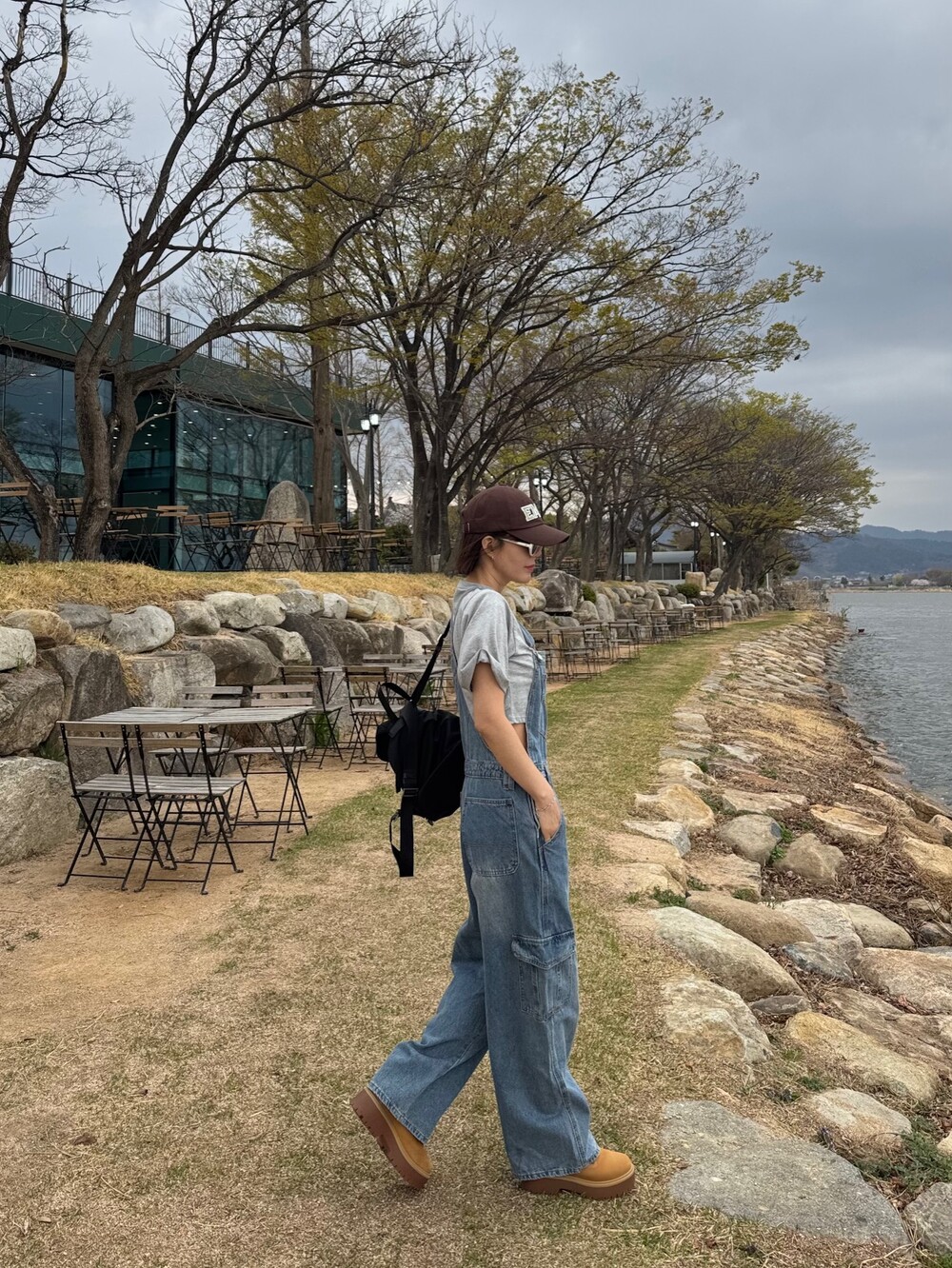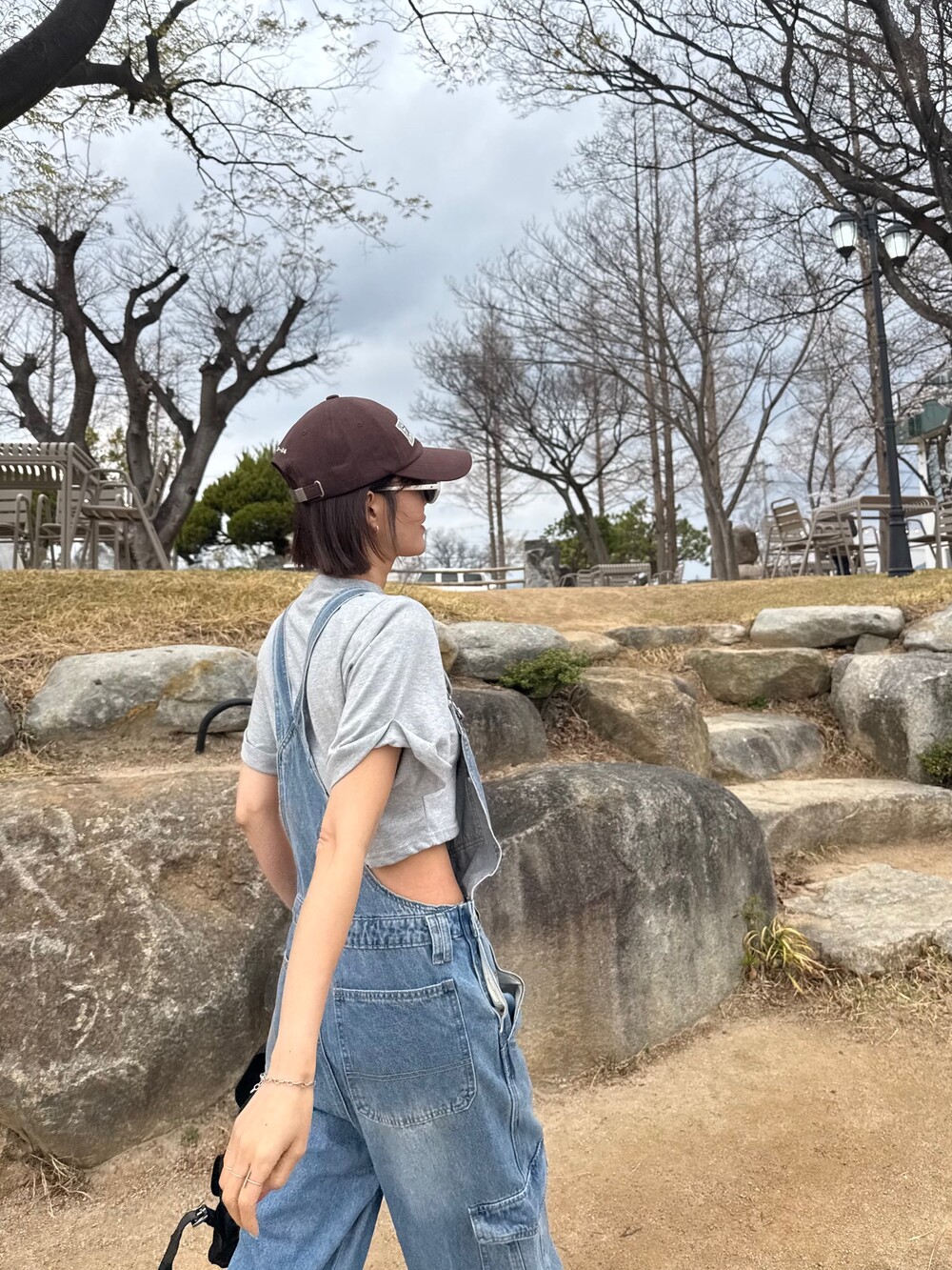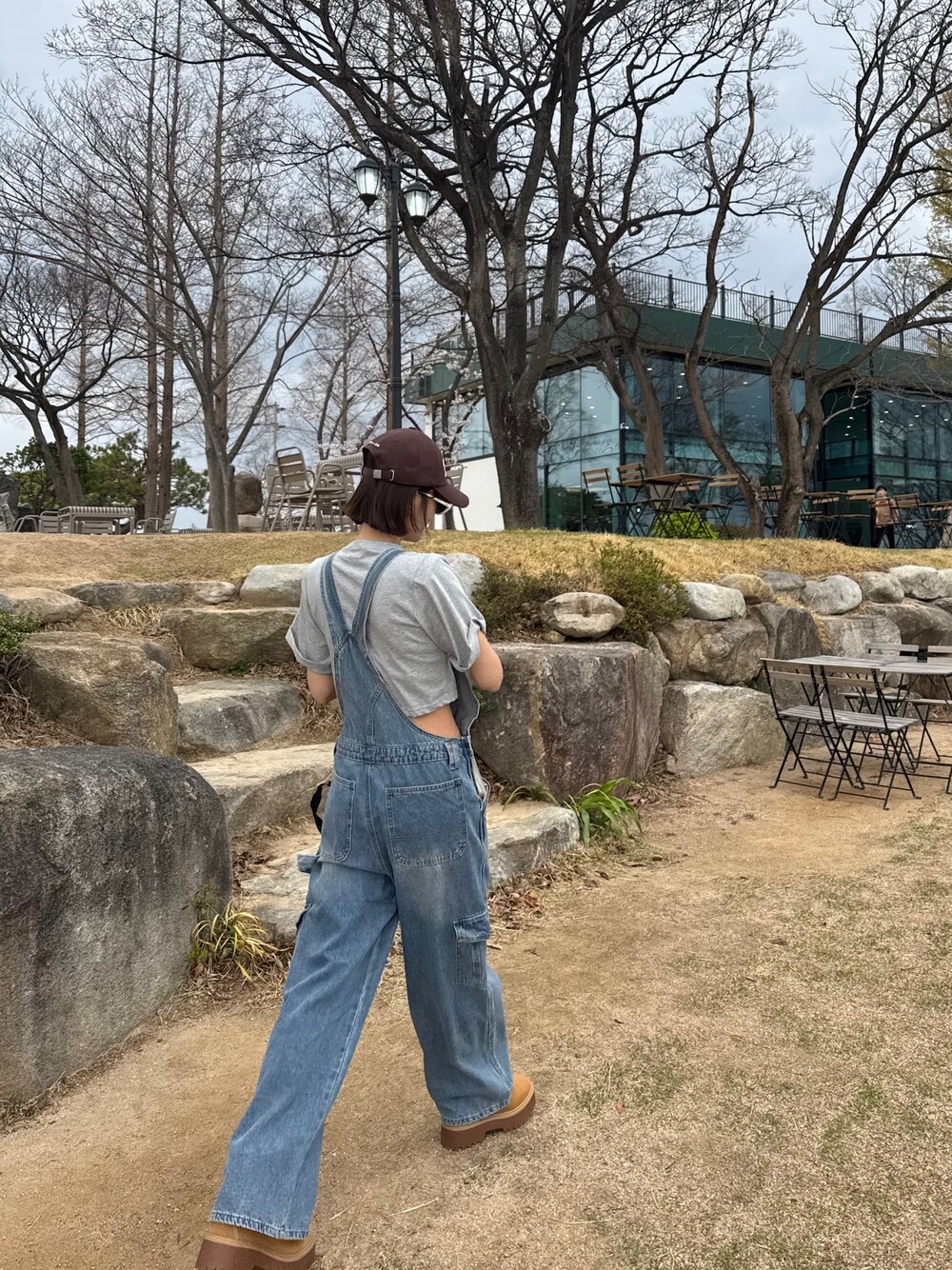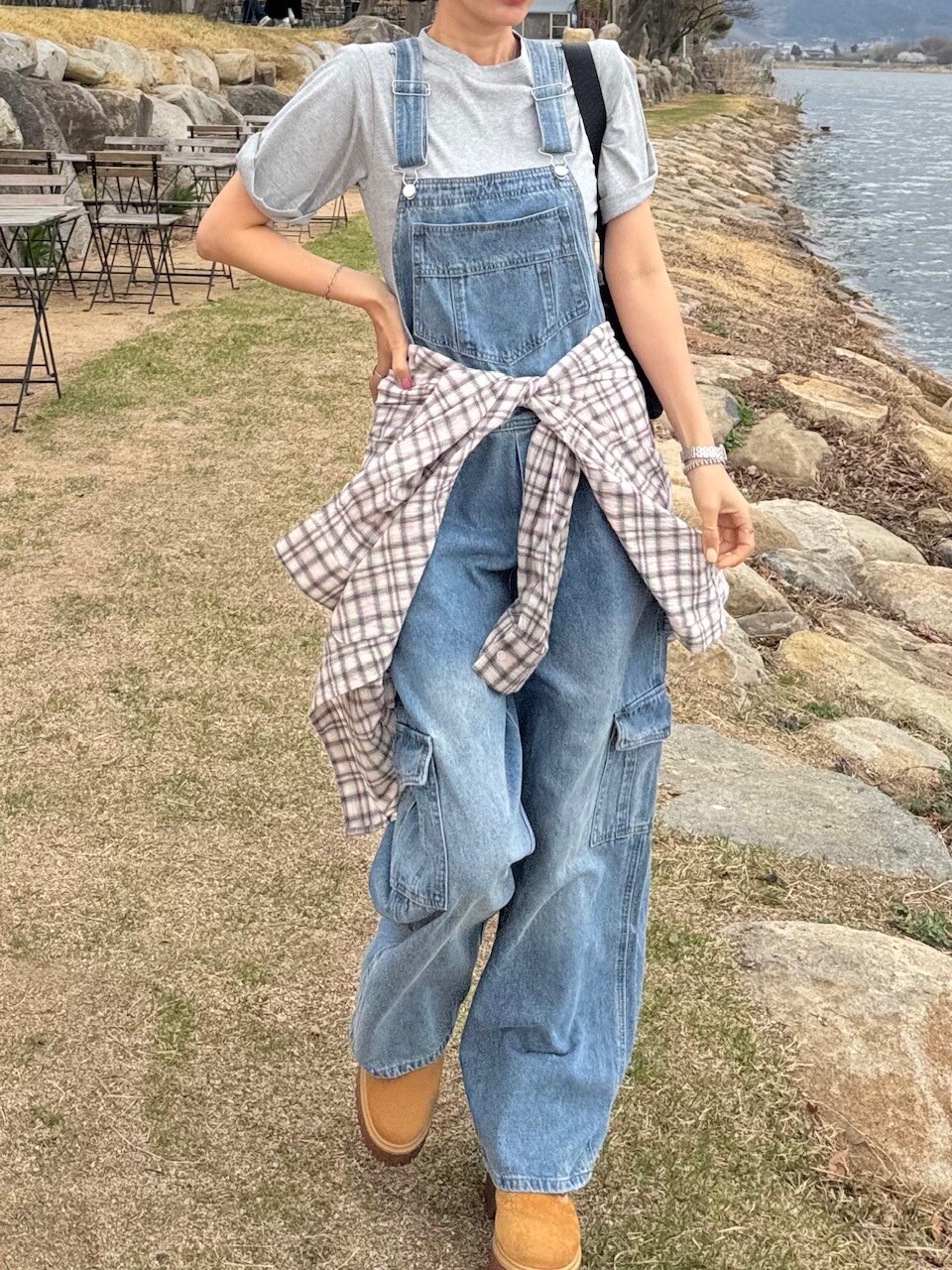 카고 포켓 오버롤 청 팬츠