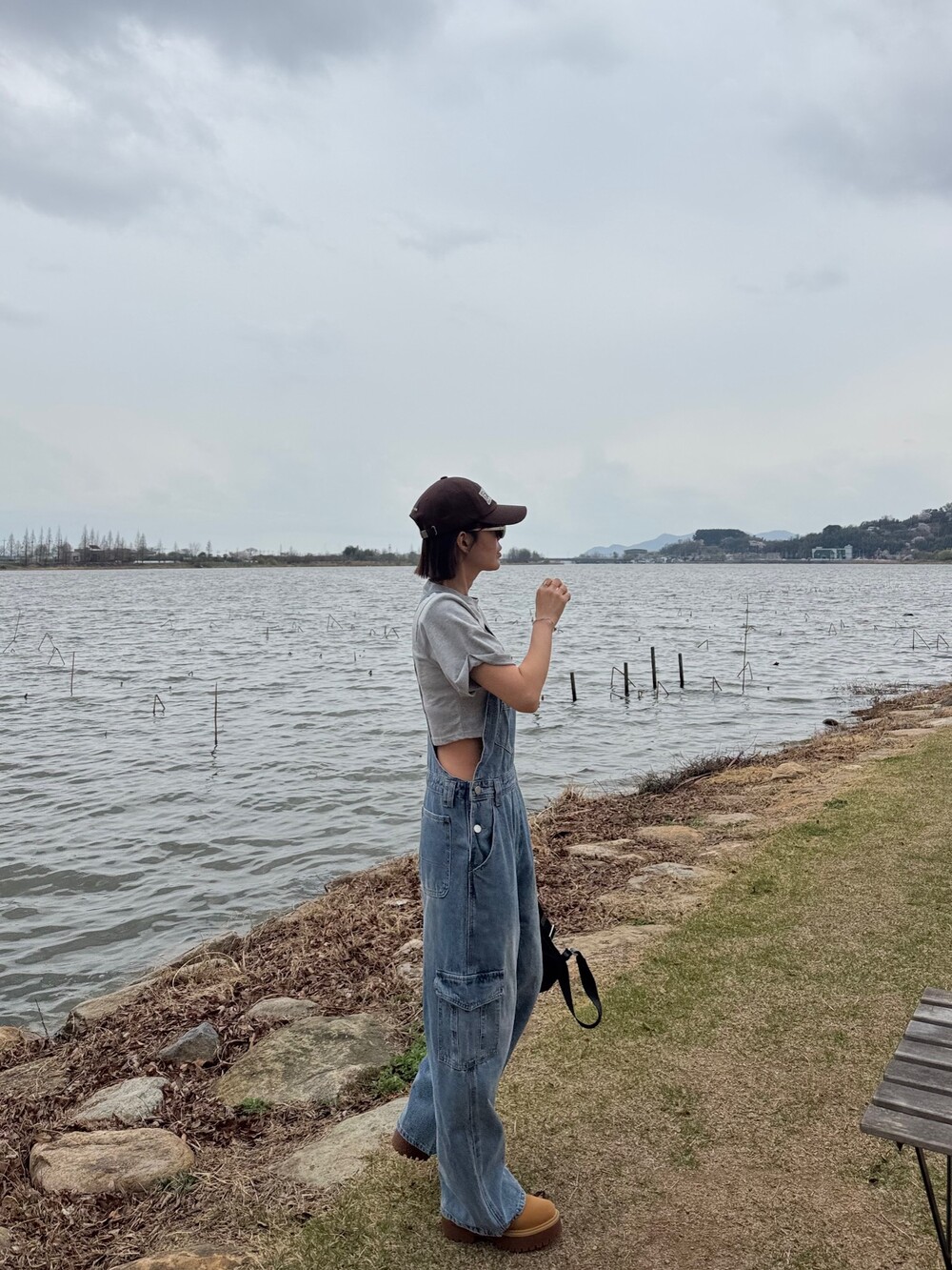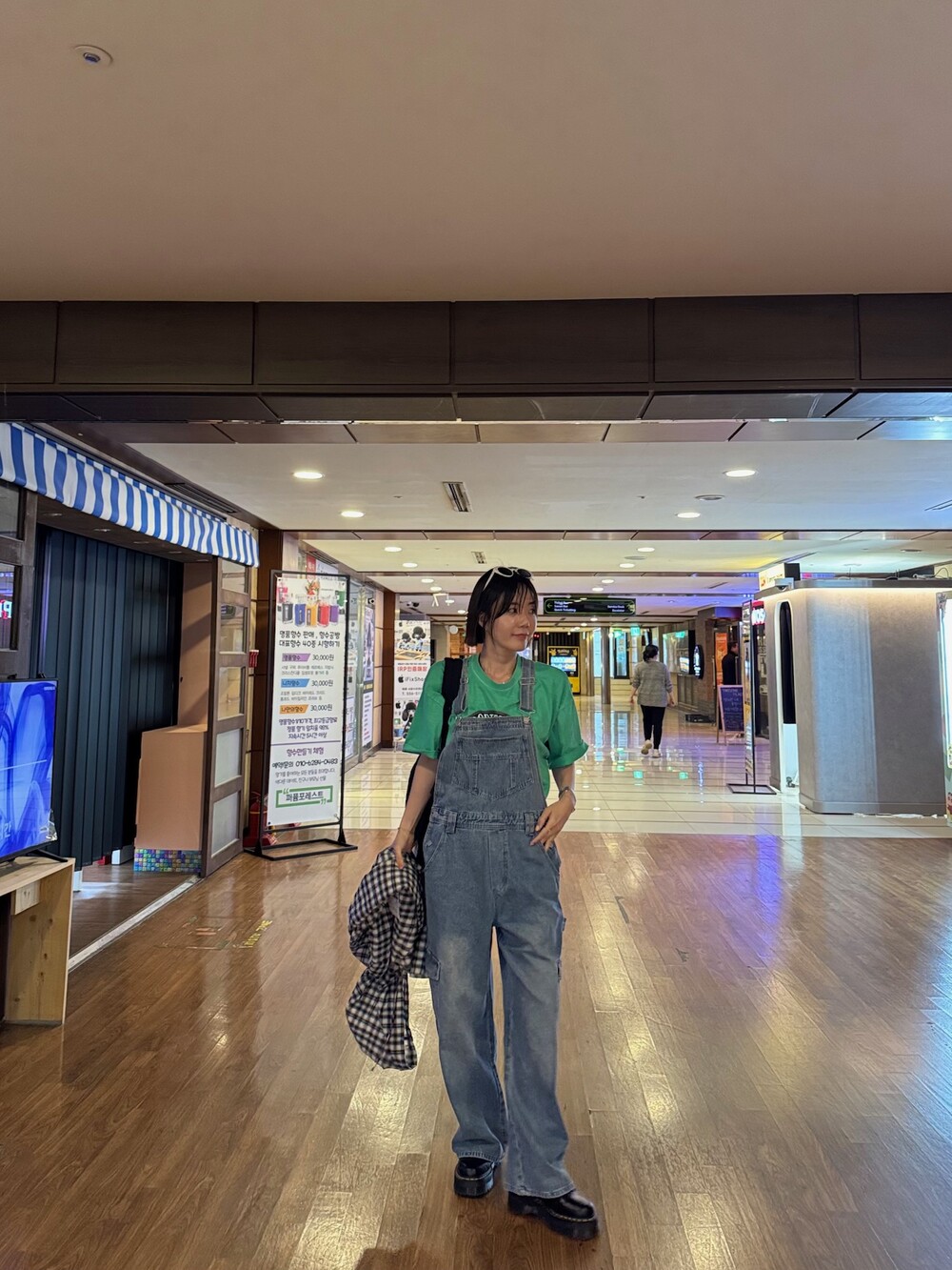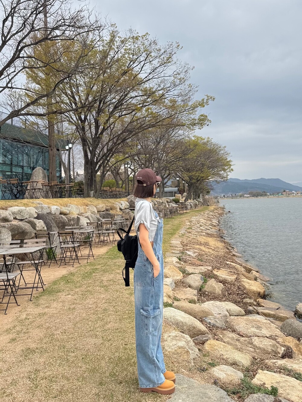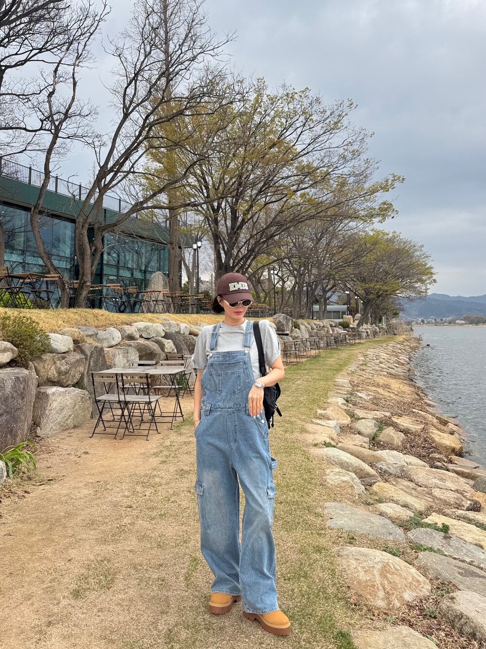 카고 포켓 오버롤 청 팬츠
