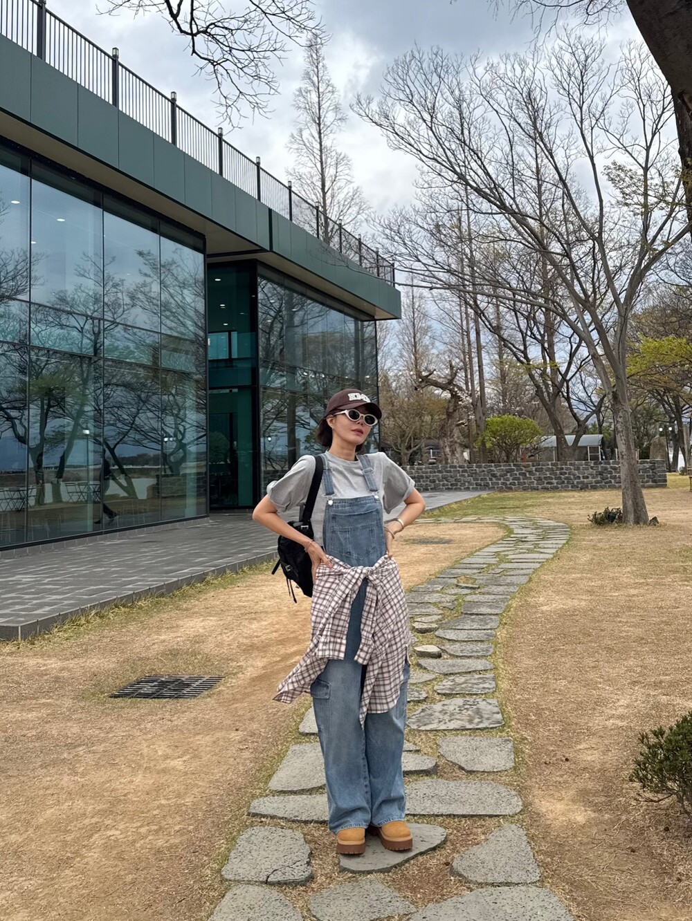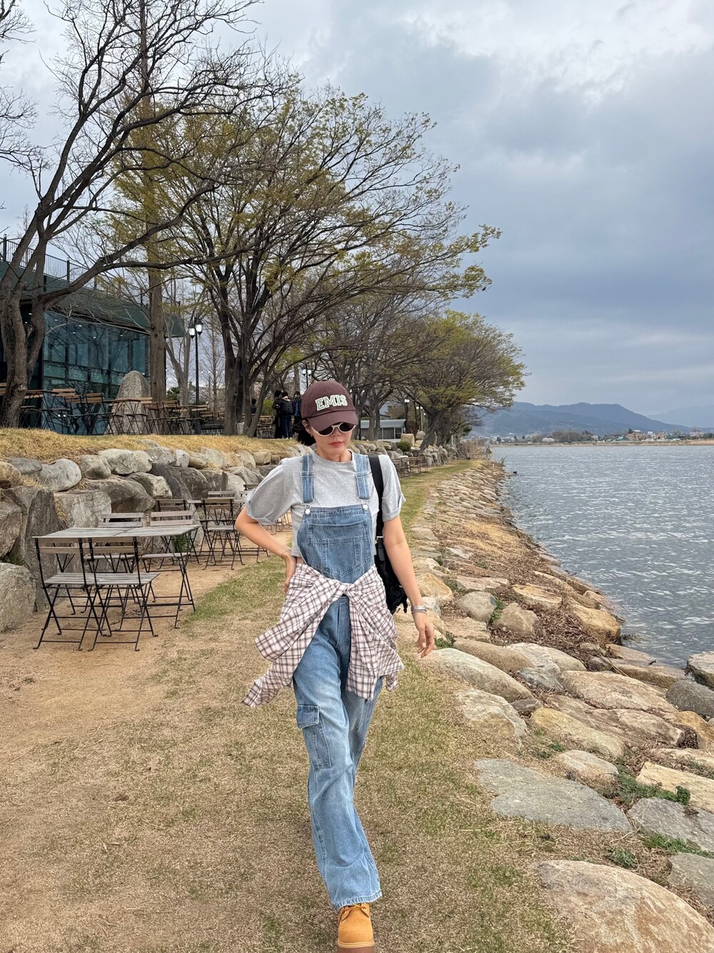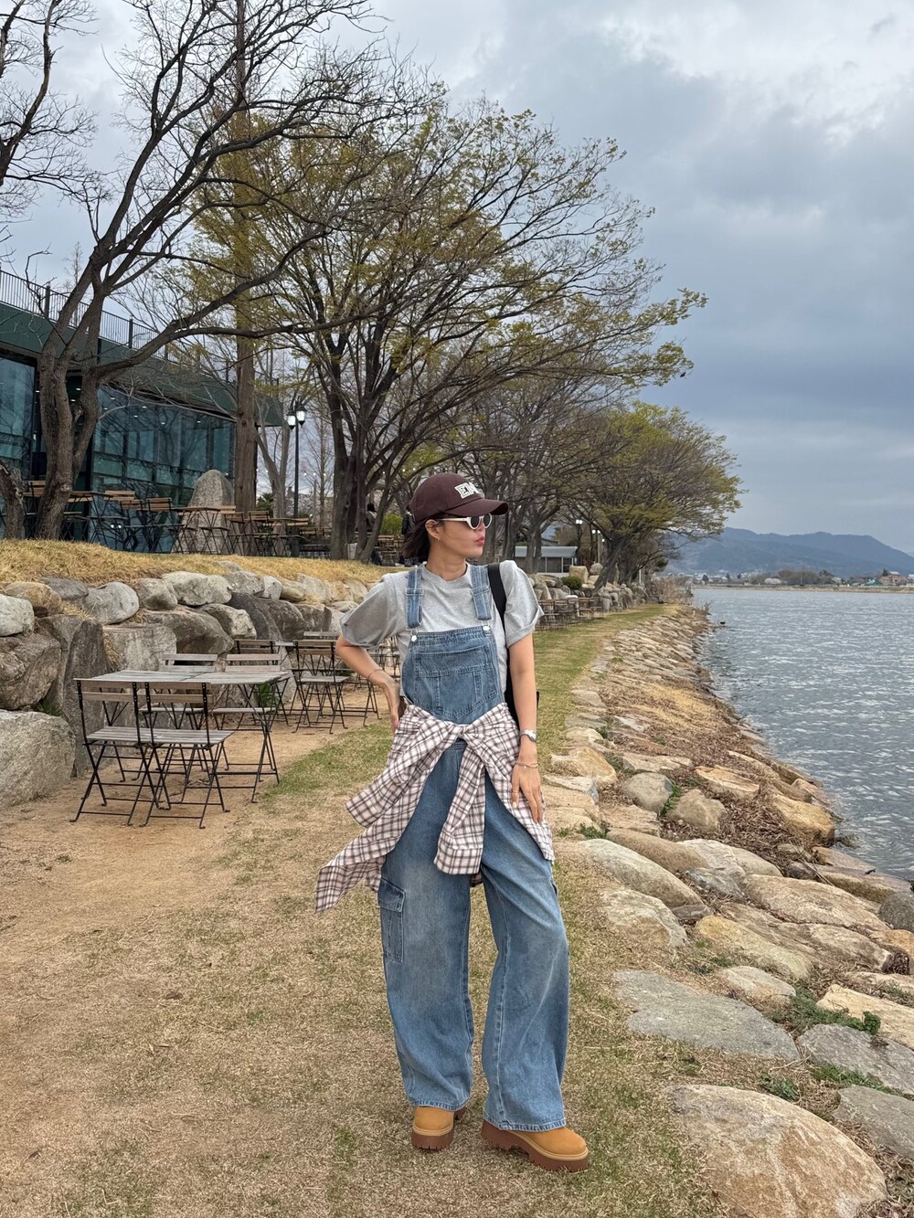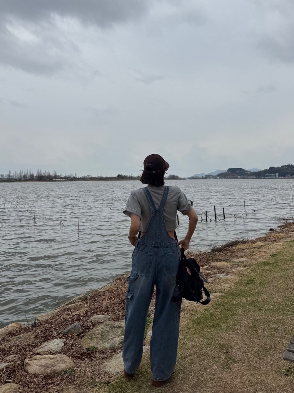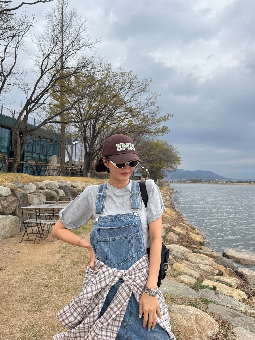 카고 포켓 오버롤 청 팬츠