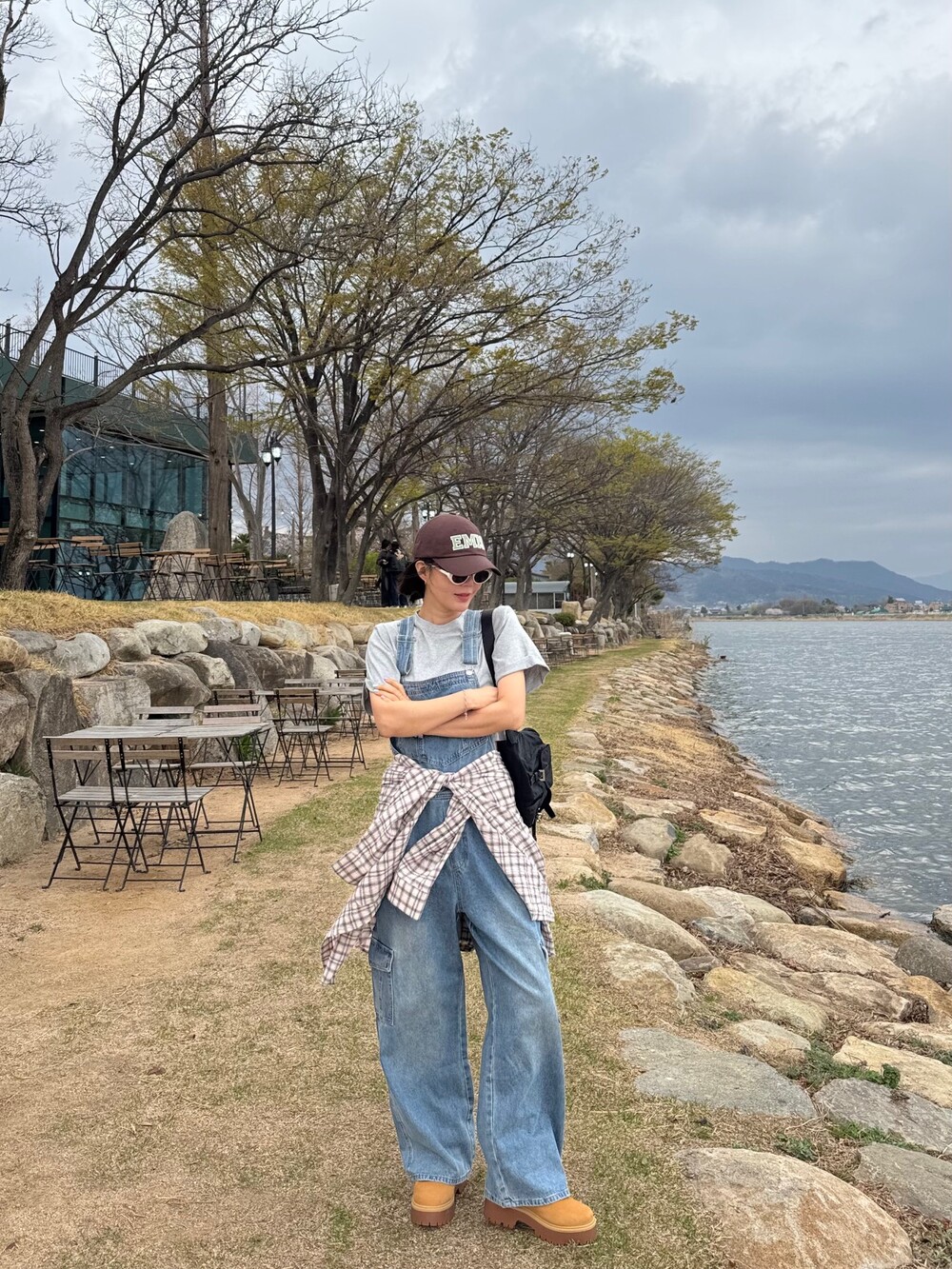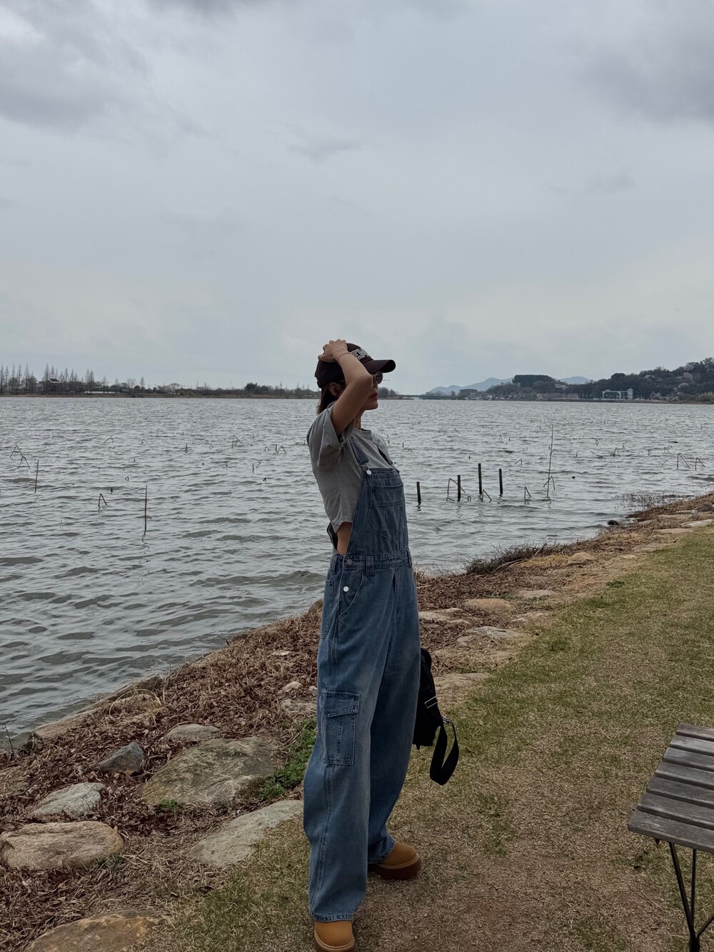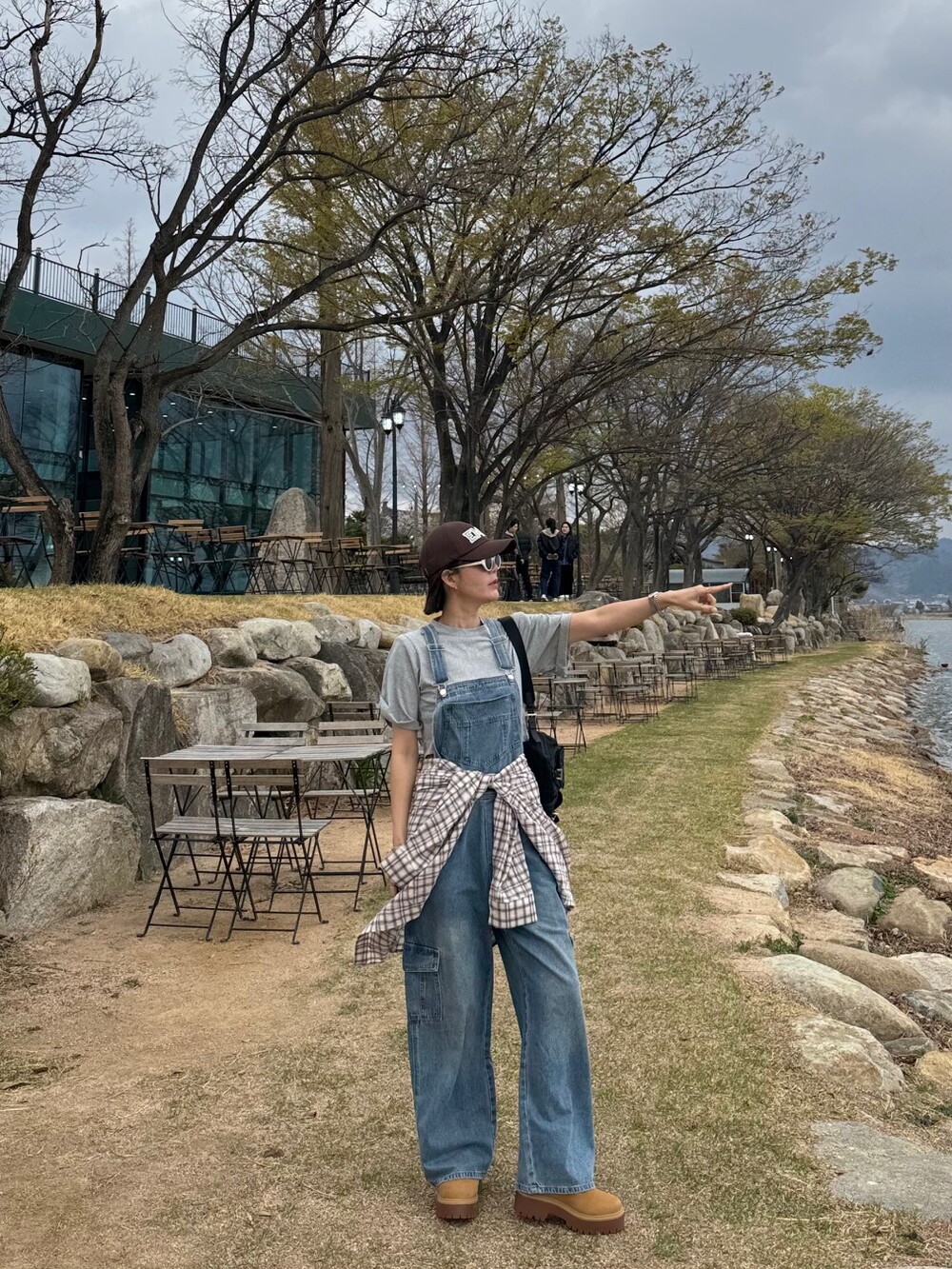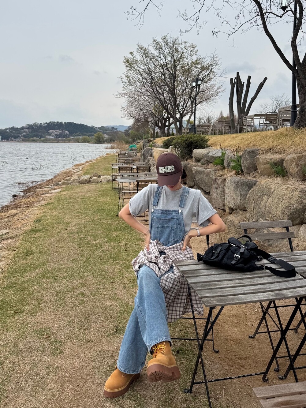 카고 포켓 오버롤 청 팬츠