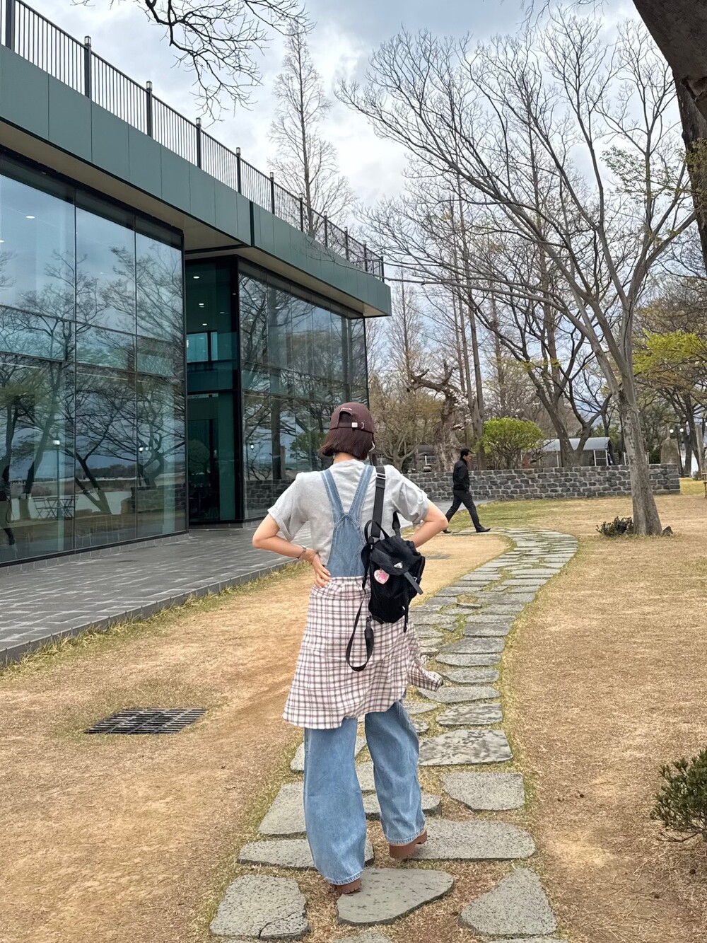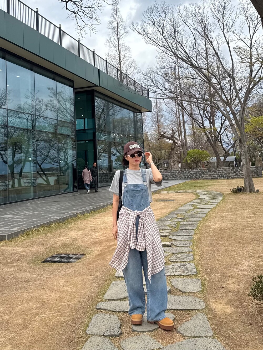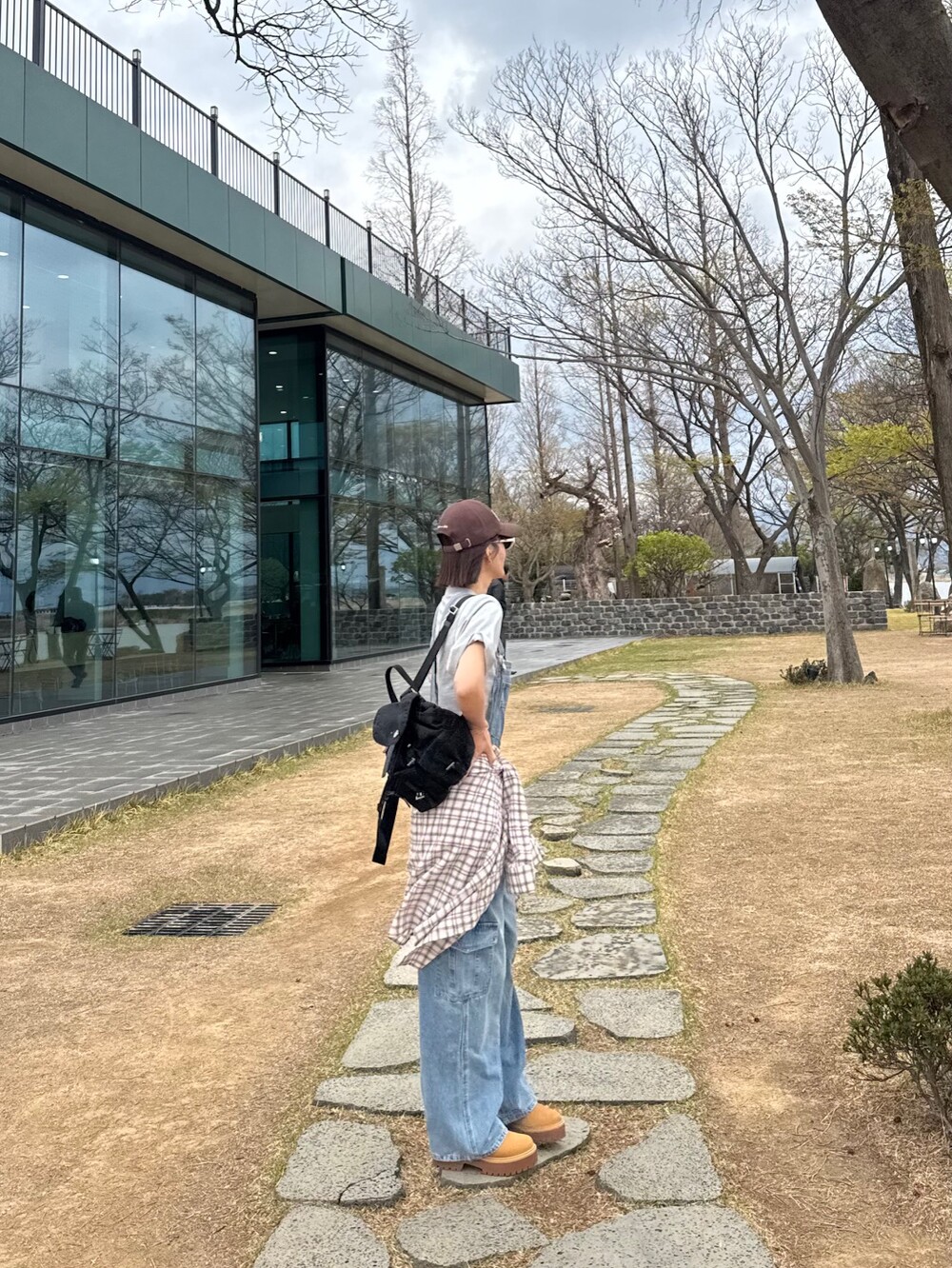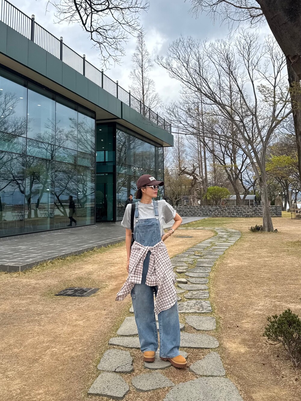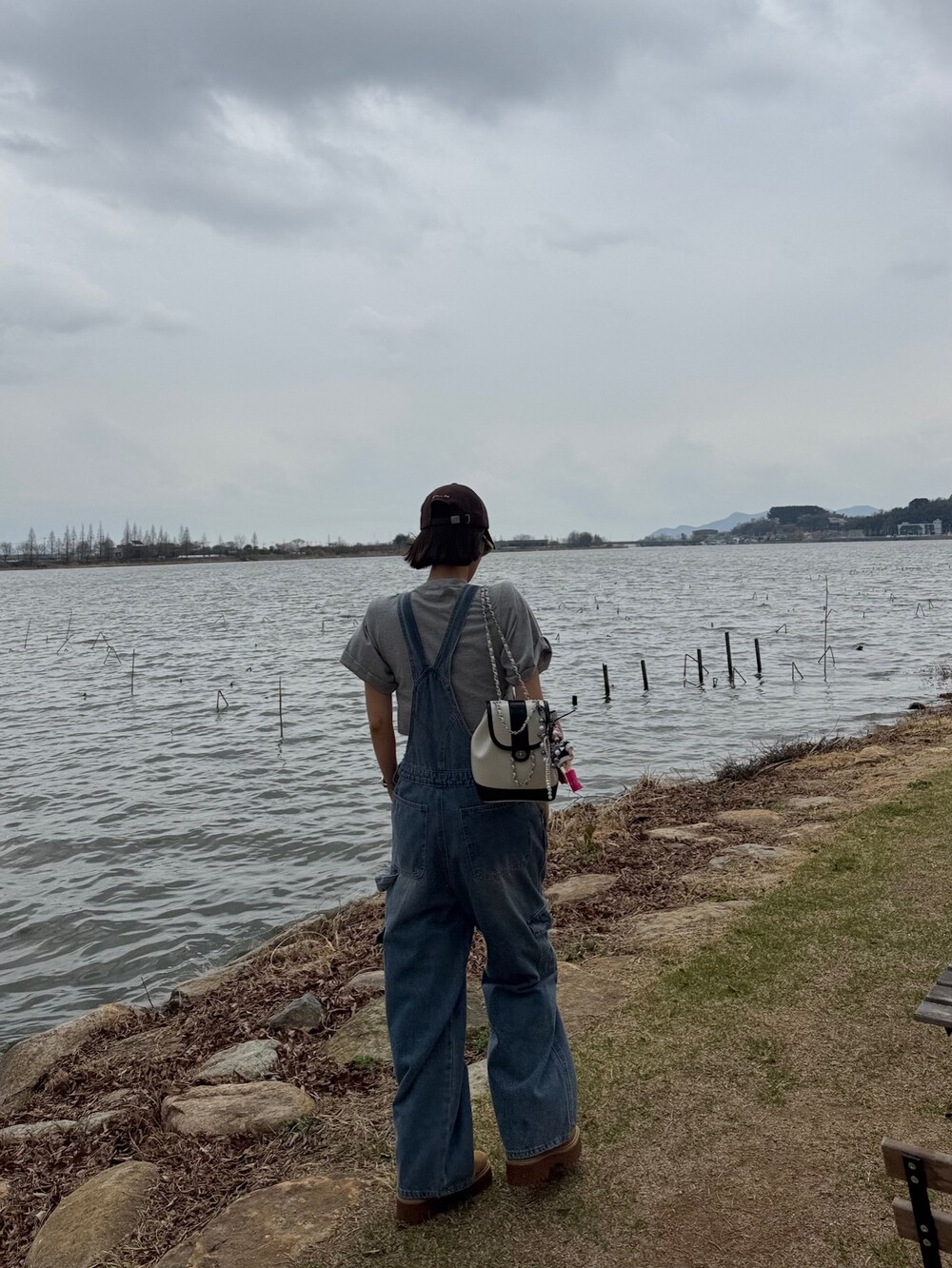 카고 포켓 오버롤 청 팬츠