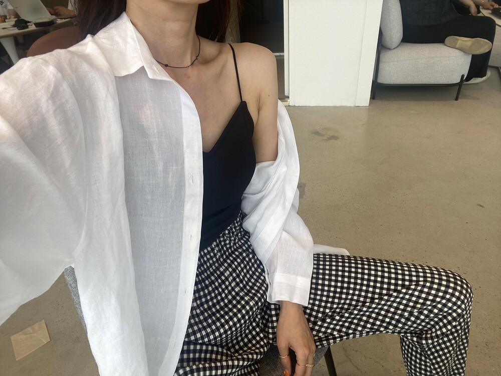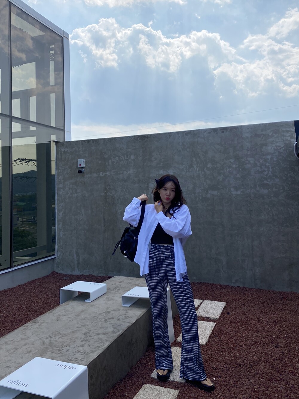 특징: 신축성 O , 비침 X , 안감 X , 두께감 보통, 무게감 가벼움