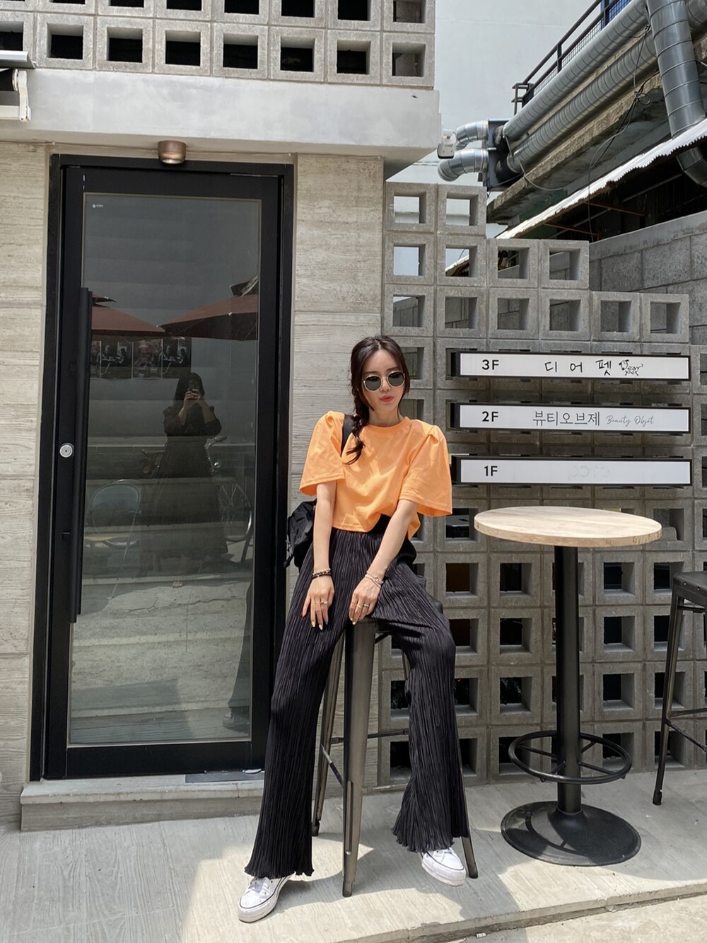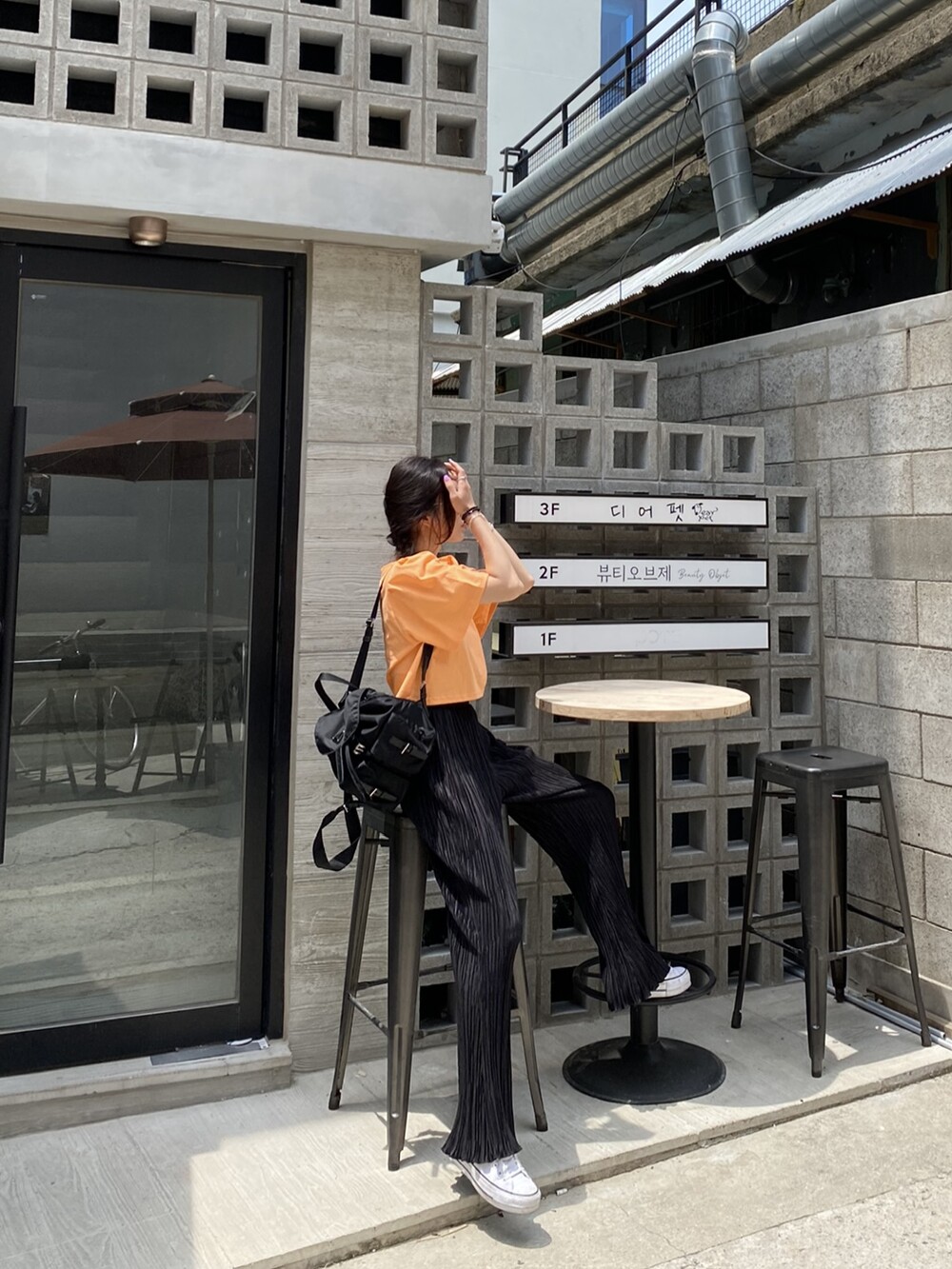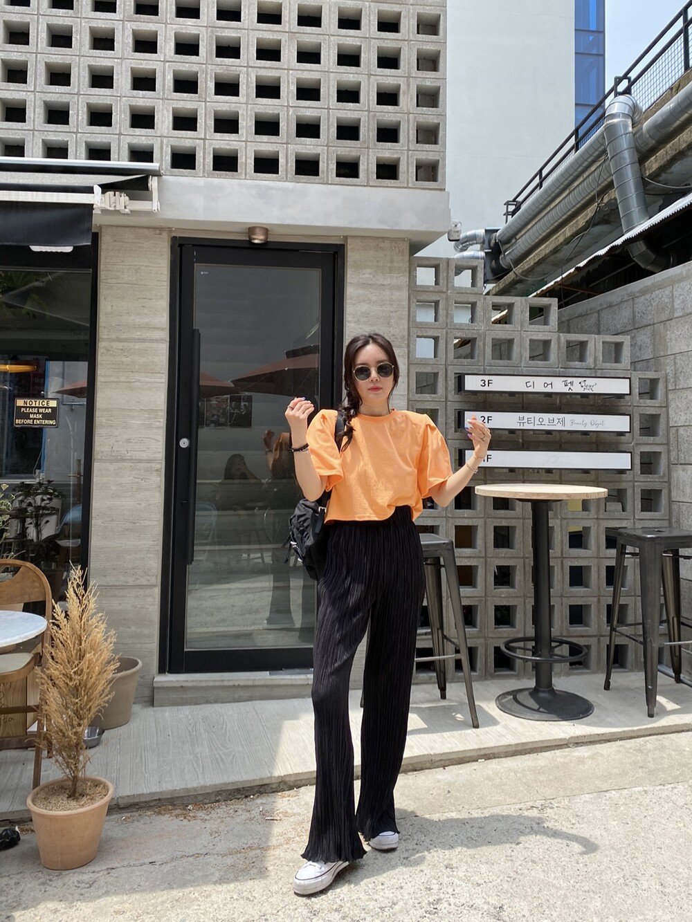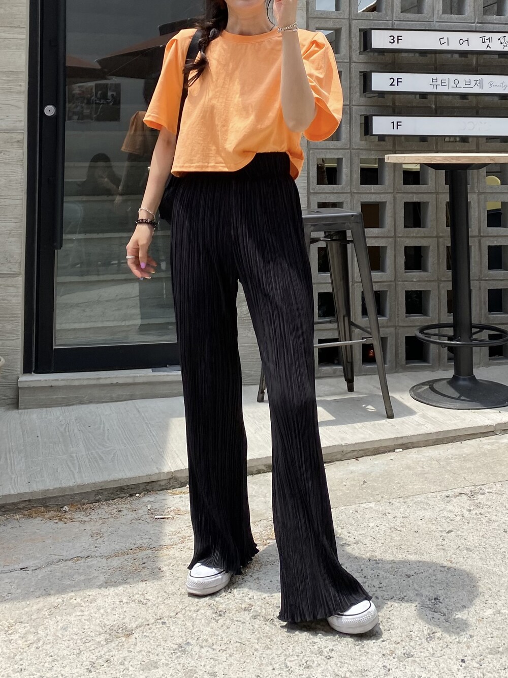 플리츠 원단의 데일리 밴딩 팬츠예요