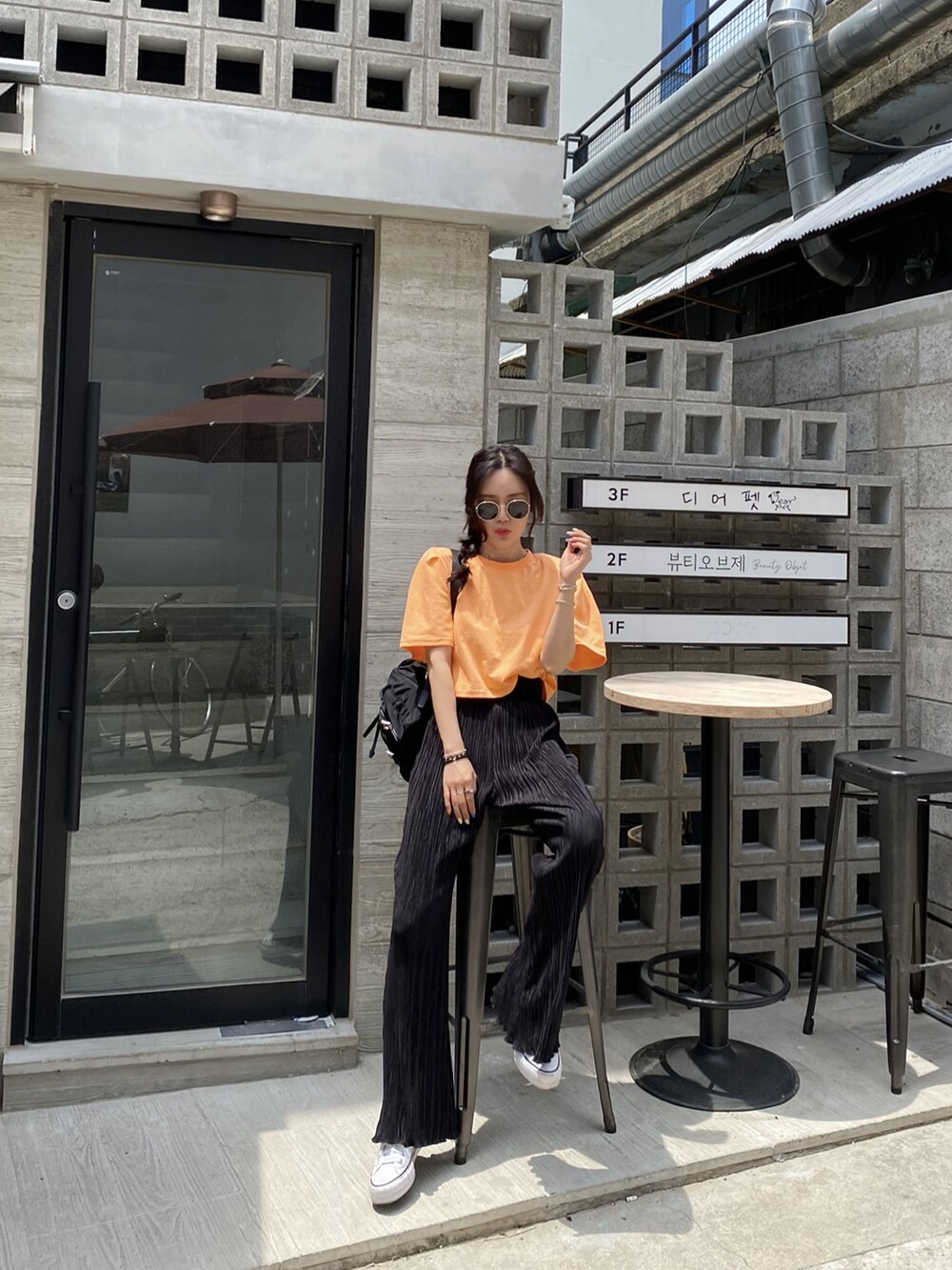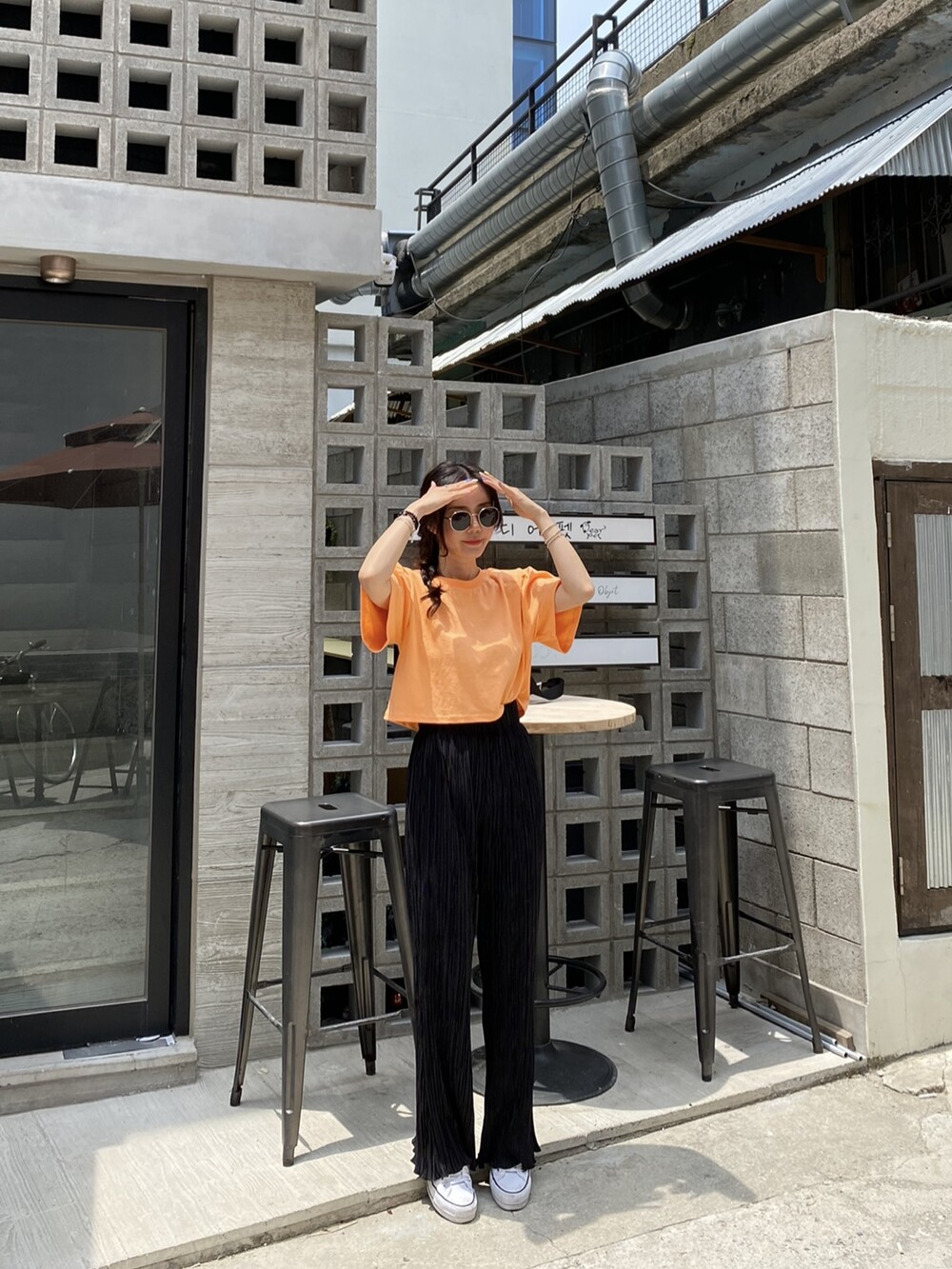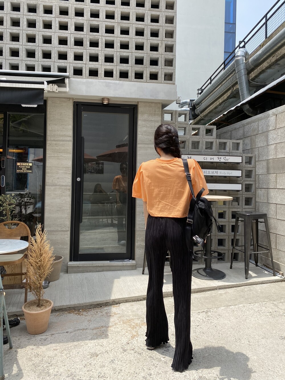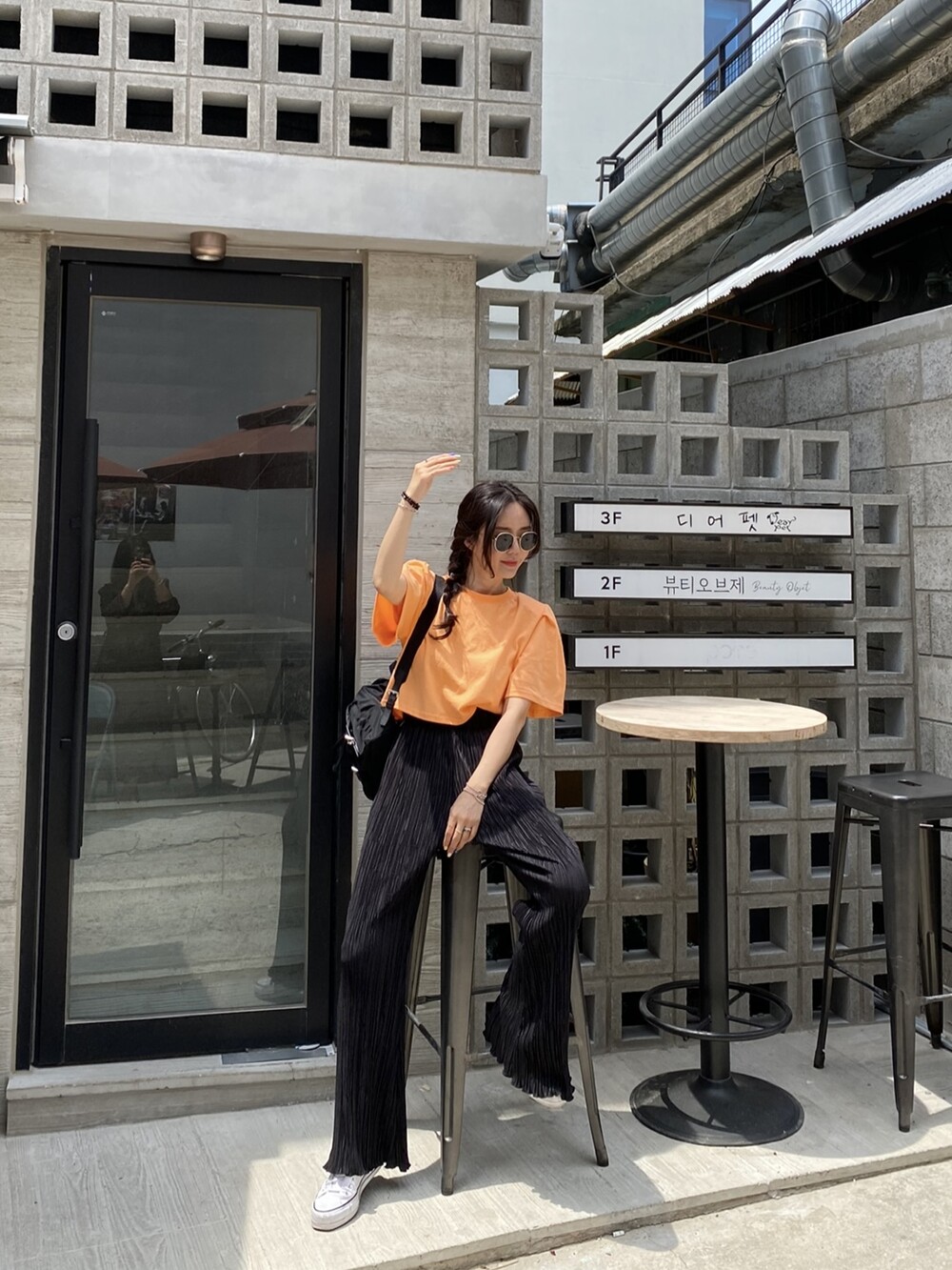 플리츠 원단의 데일리 밴딩 팬츠예요