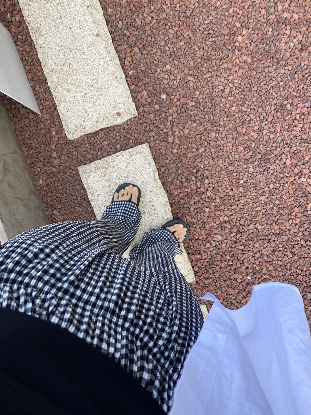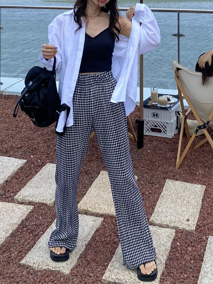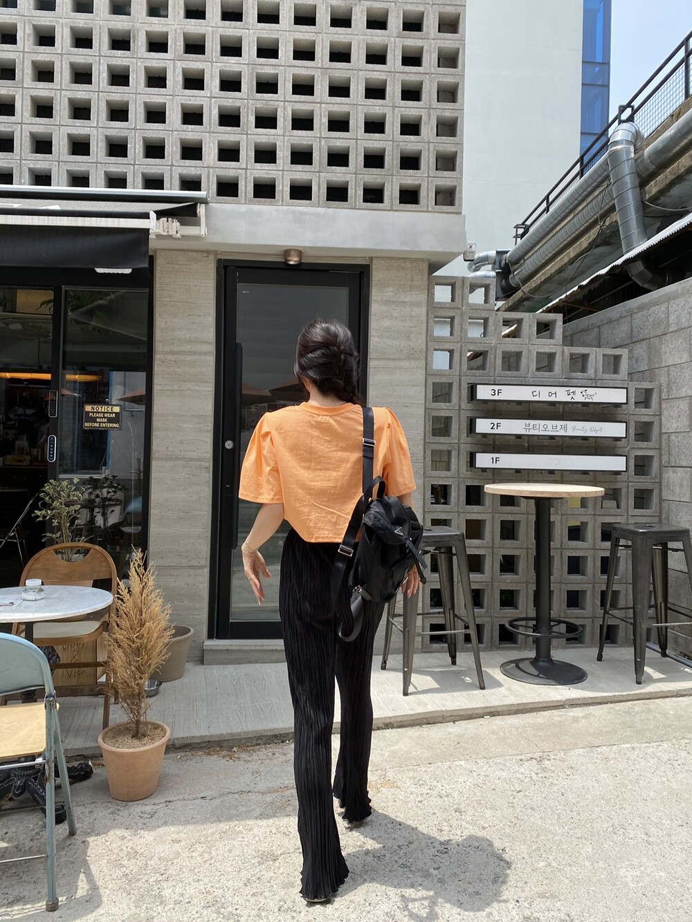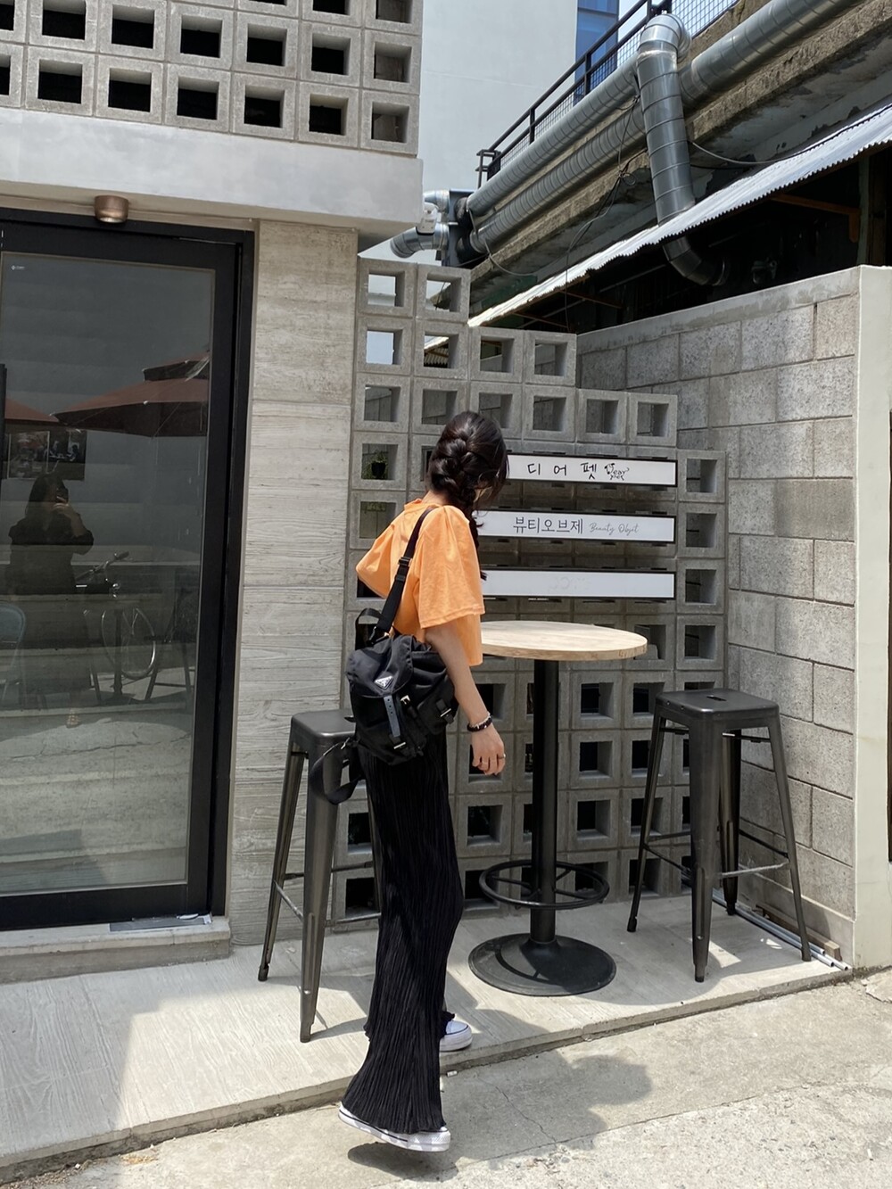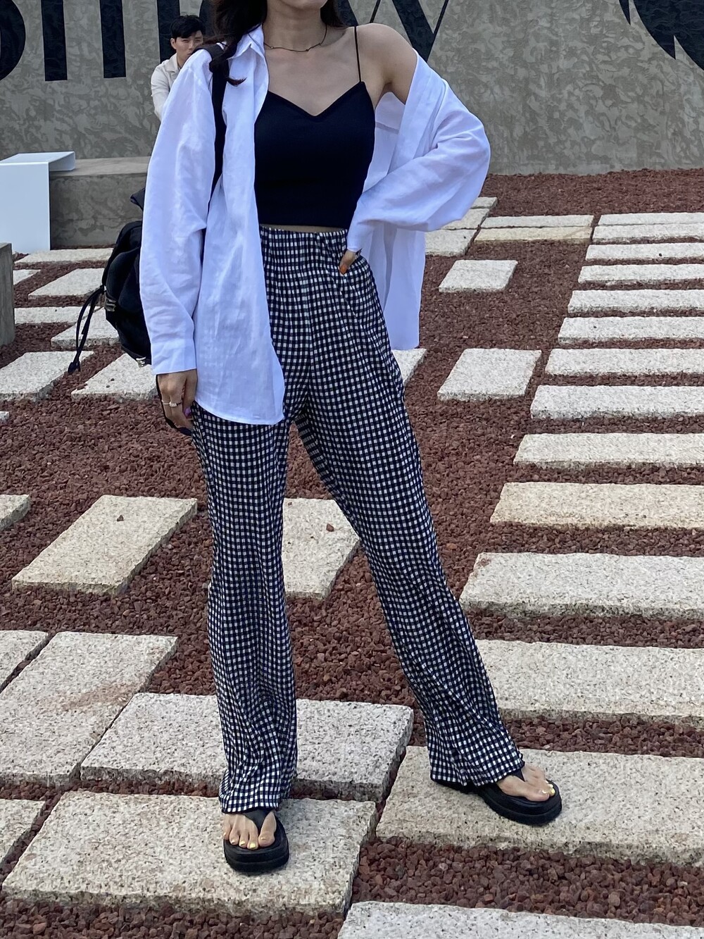 플리츠 원단의 데일리 밴딩 팬츠예요