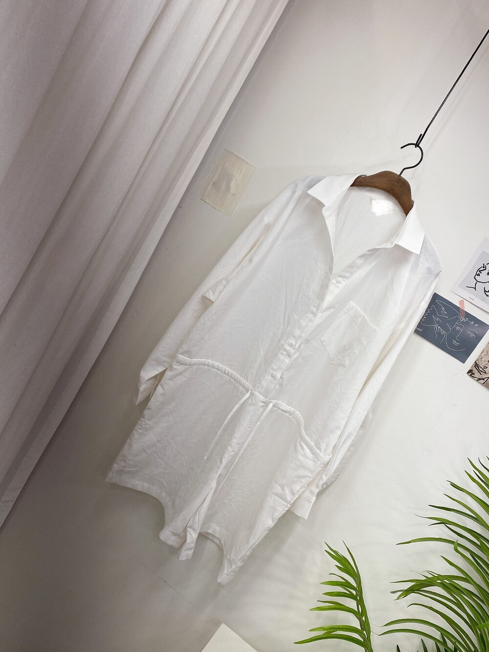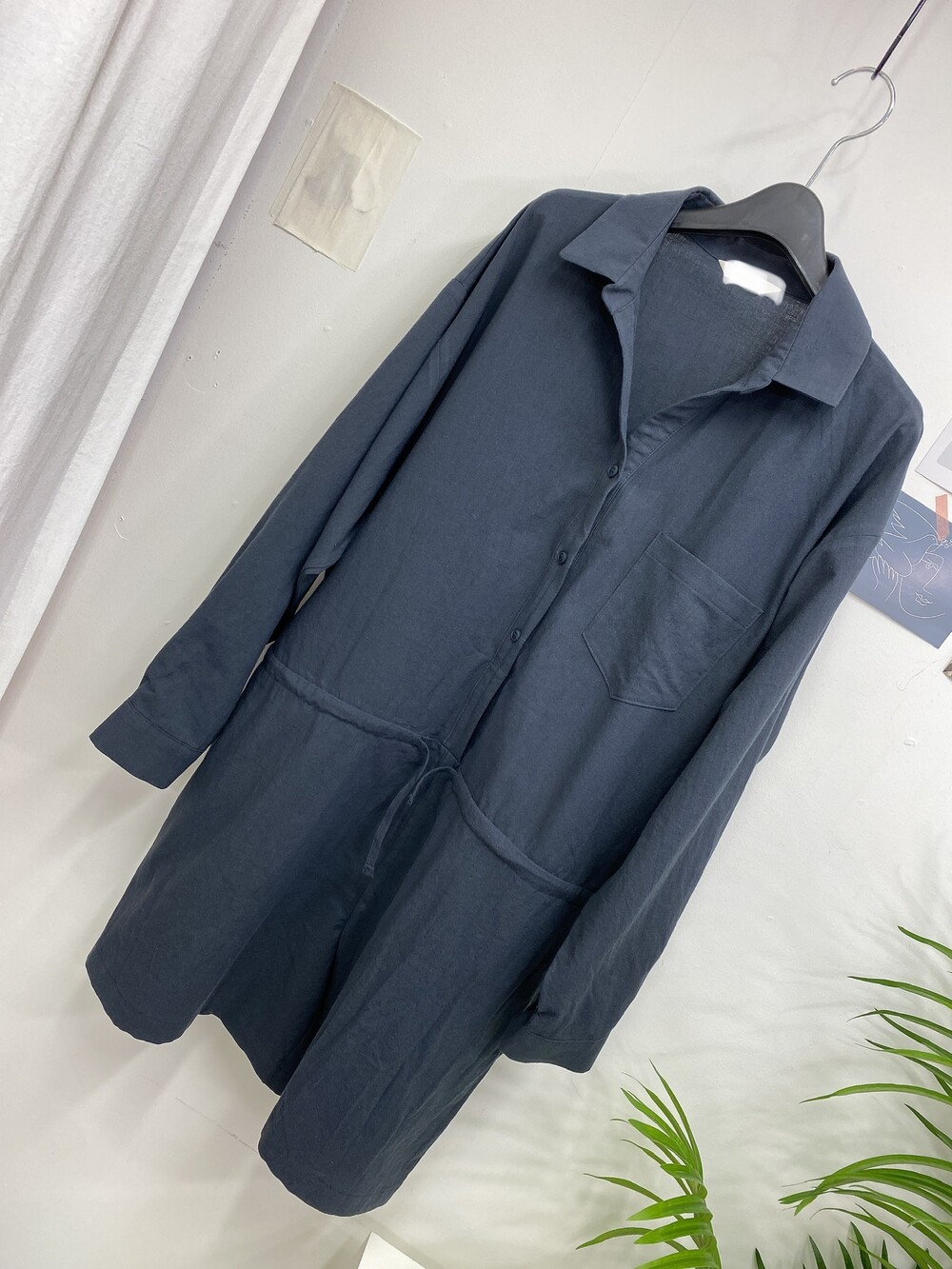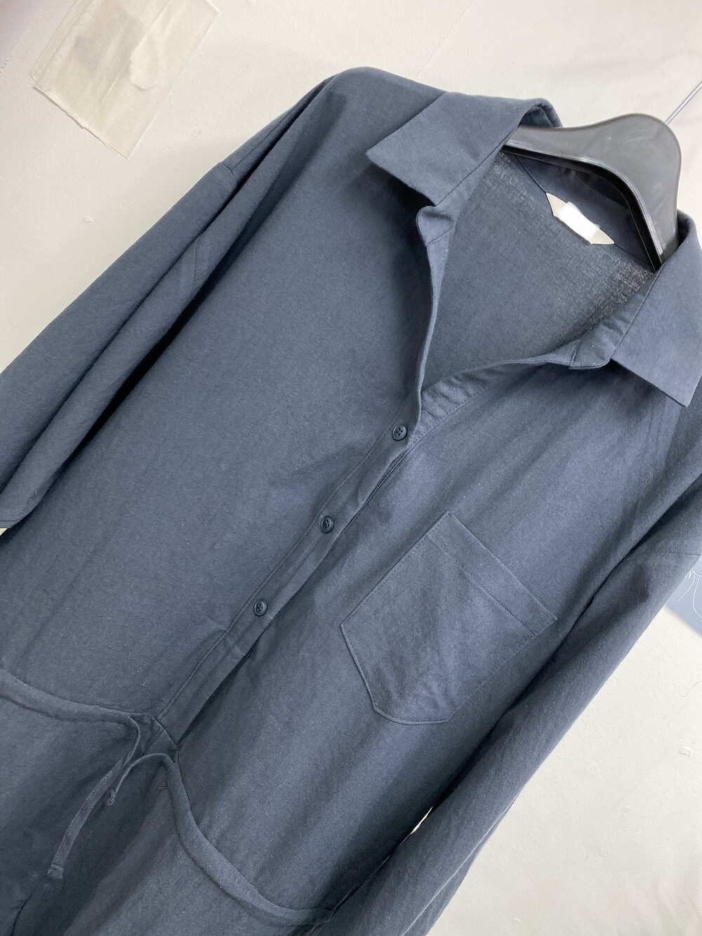 부드러운 린넨 원단의 셔츠 형식의 점프수트예요