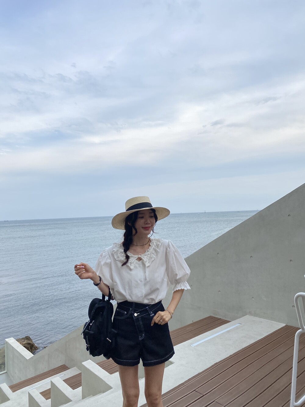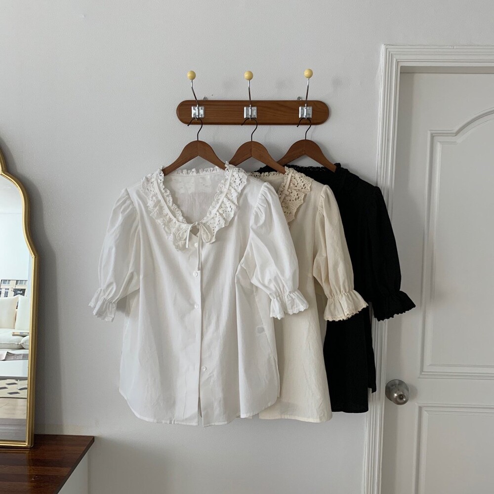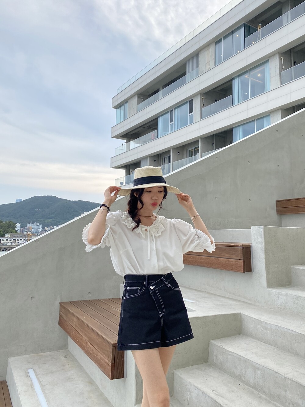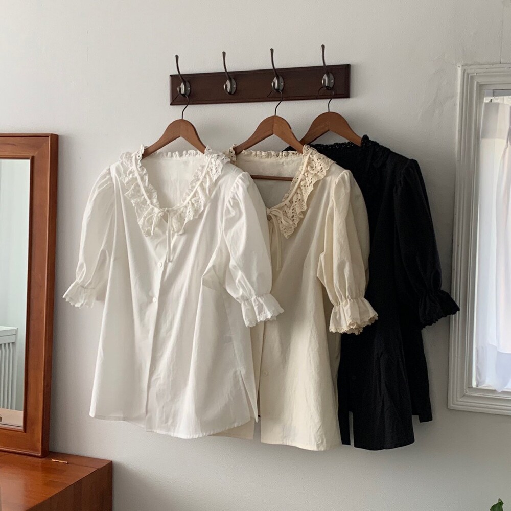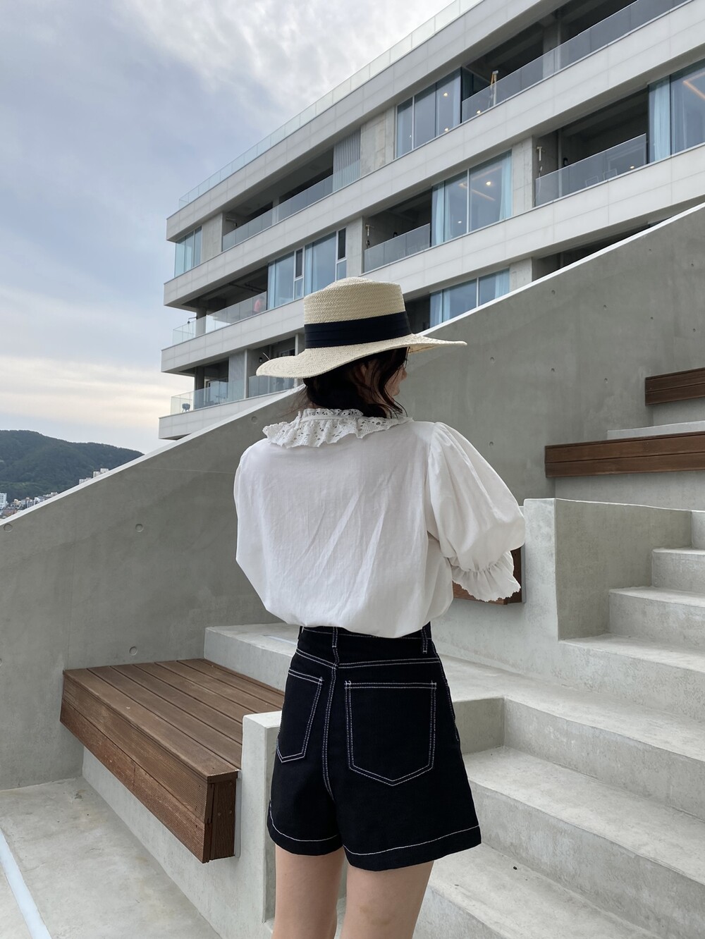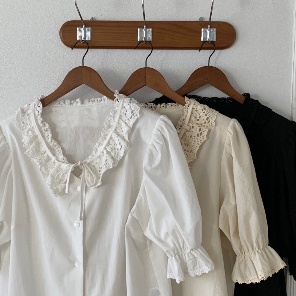 러블리한 레이스 펀칭 카라 디테일로 사랑스러운 무드가