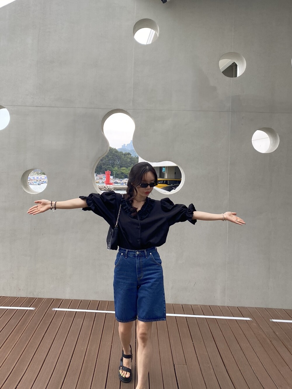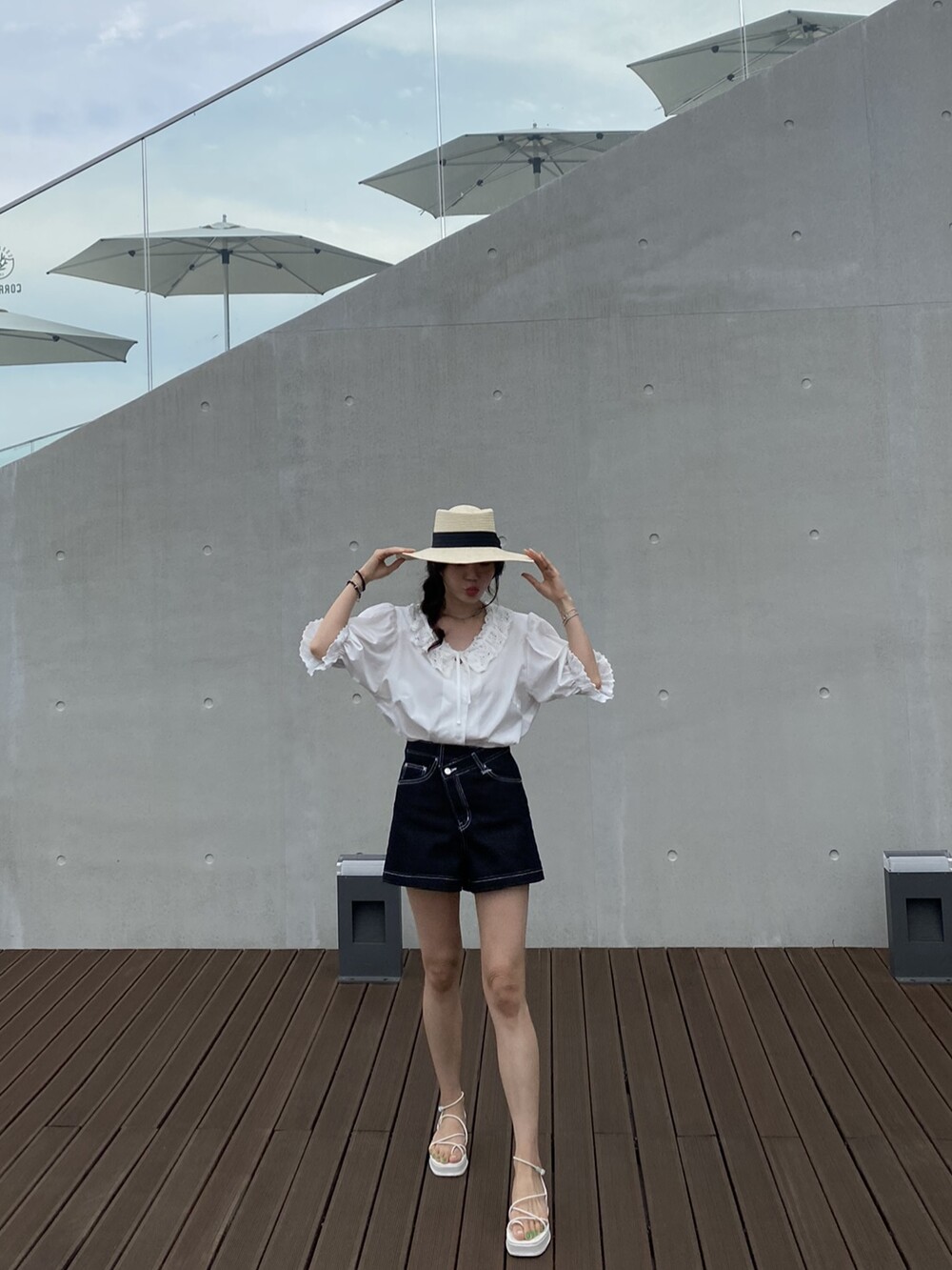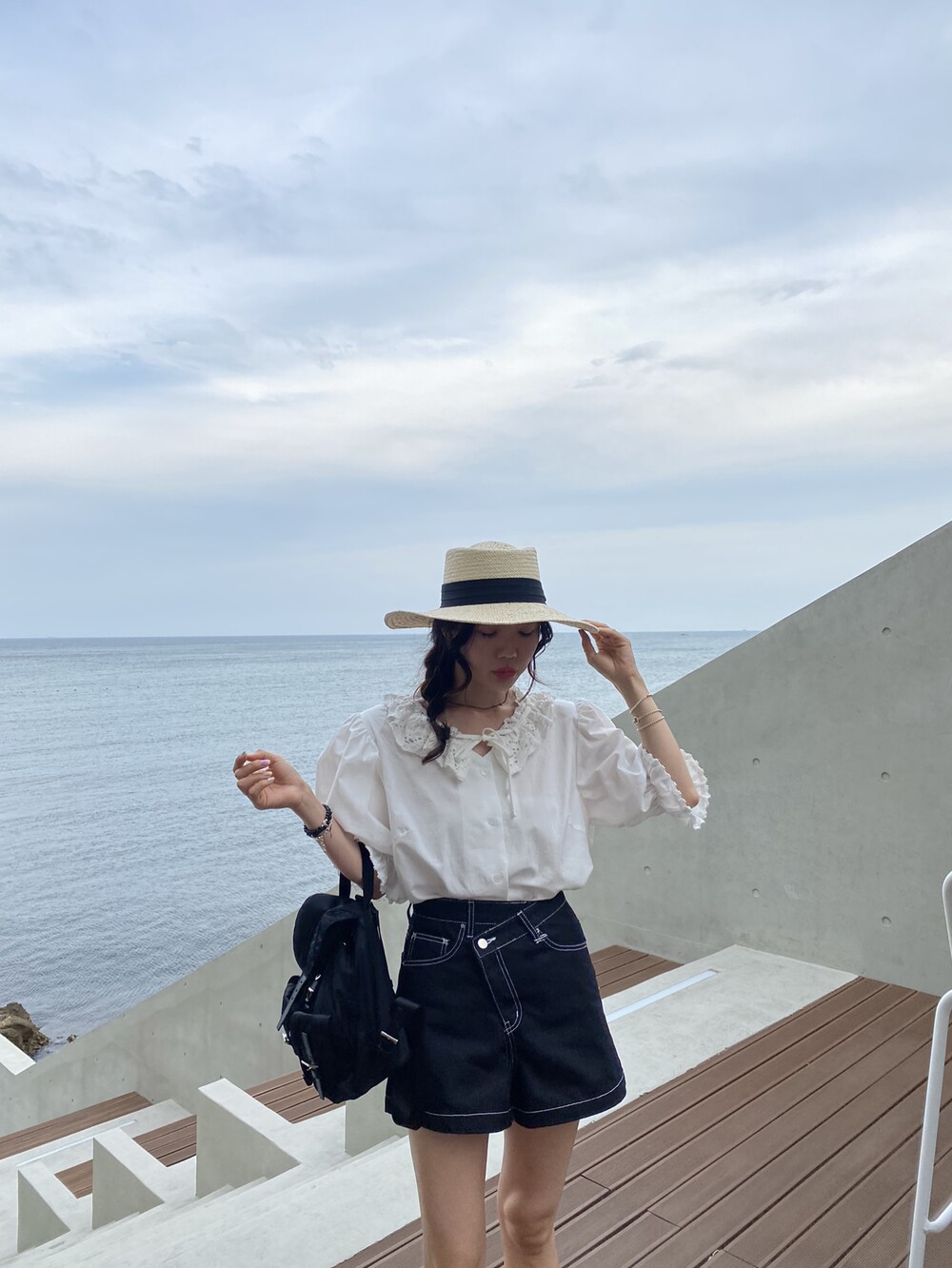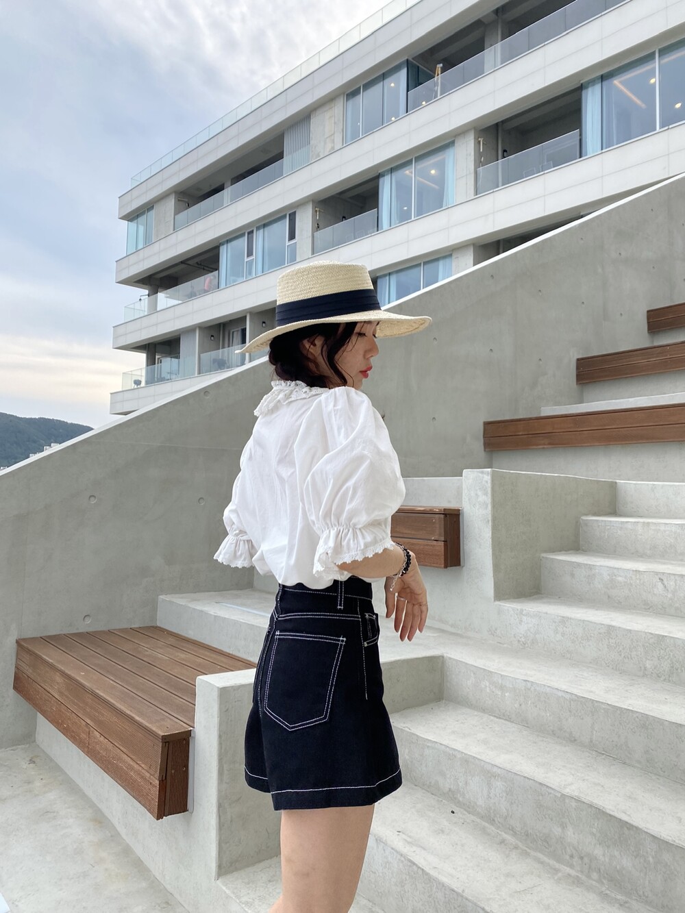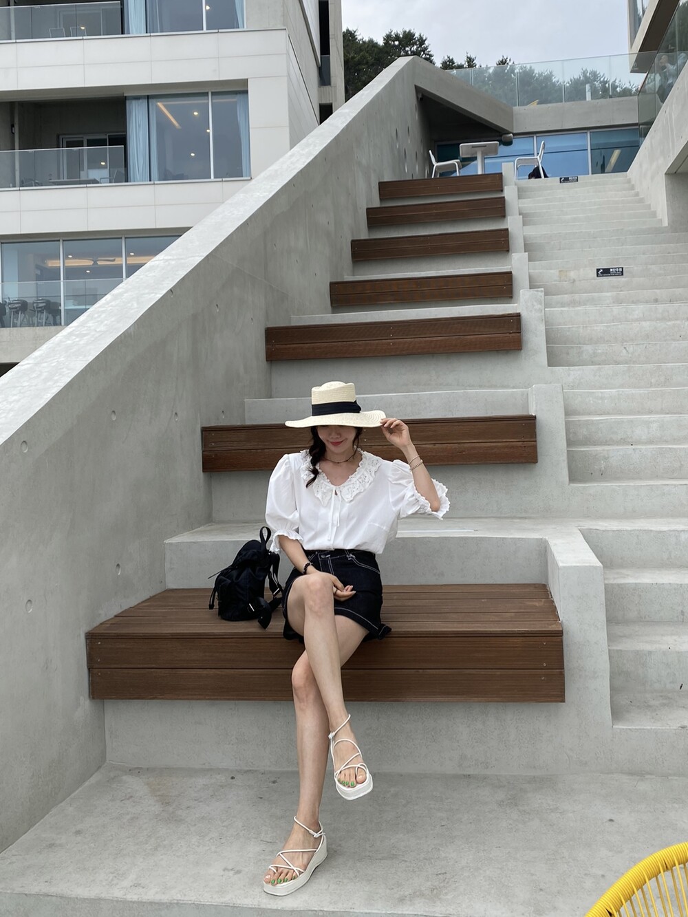 러블리한 레이스 펀칭 카라 디테일로 사랑스러운 무드가
