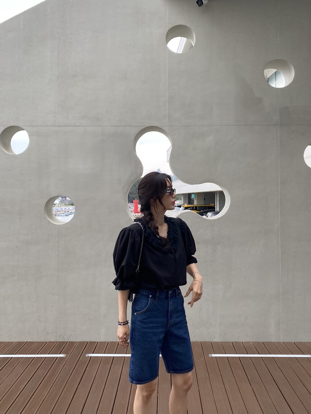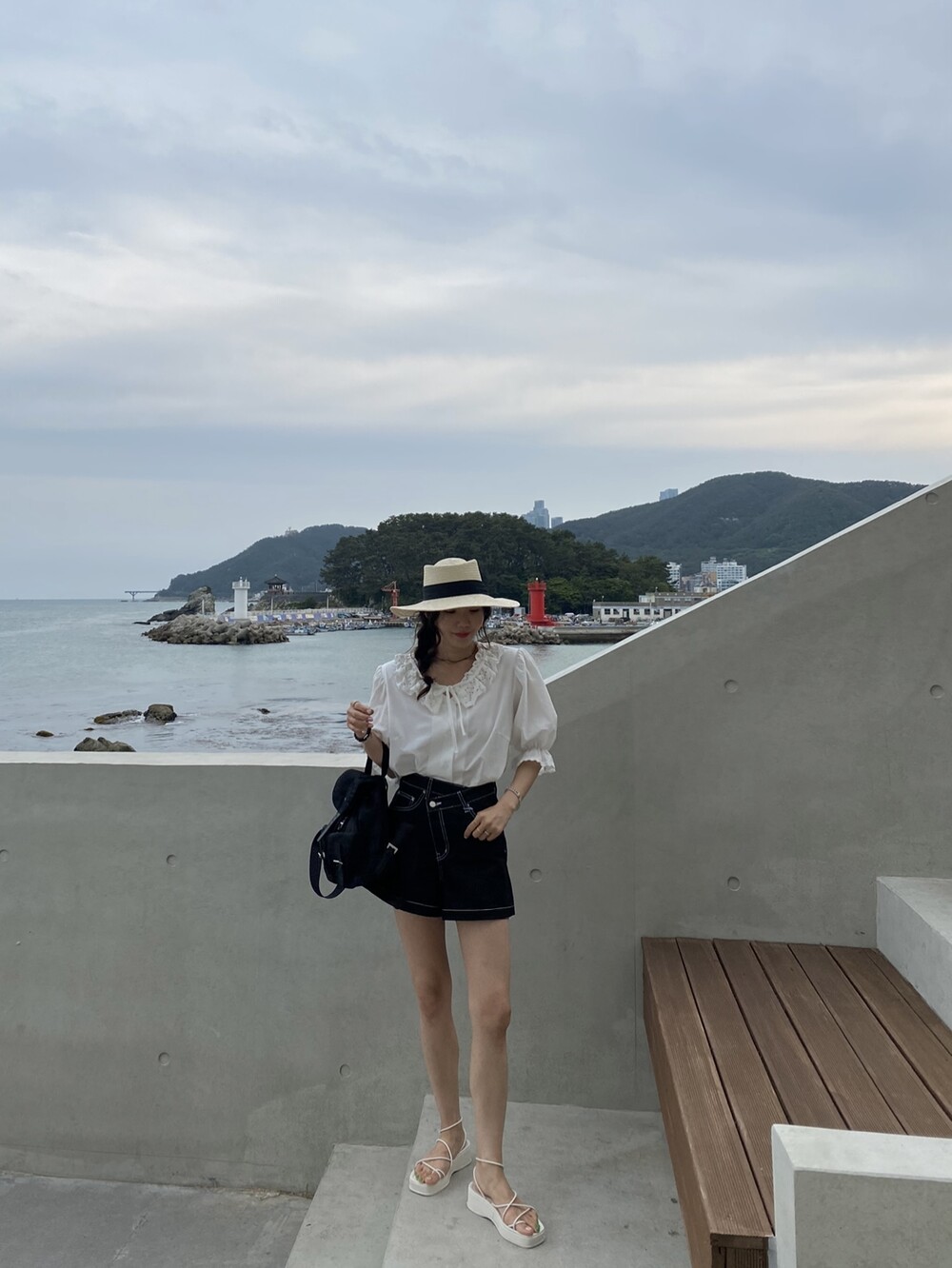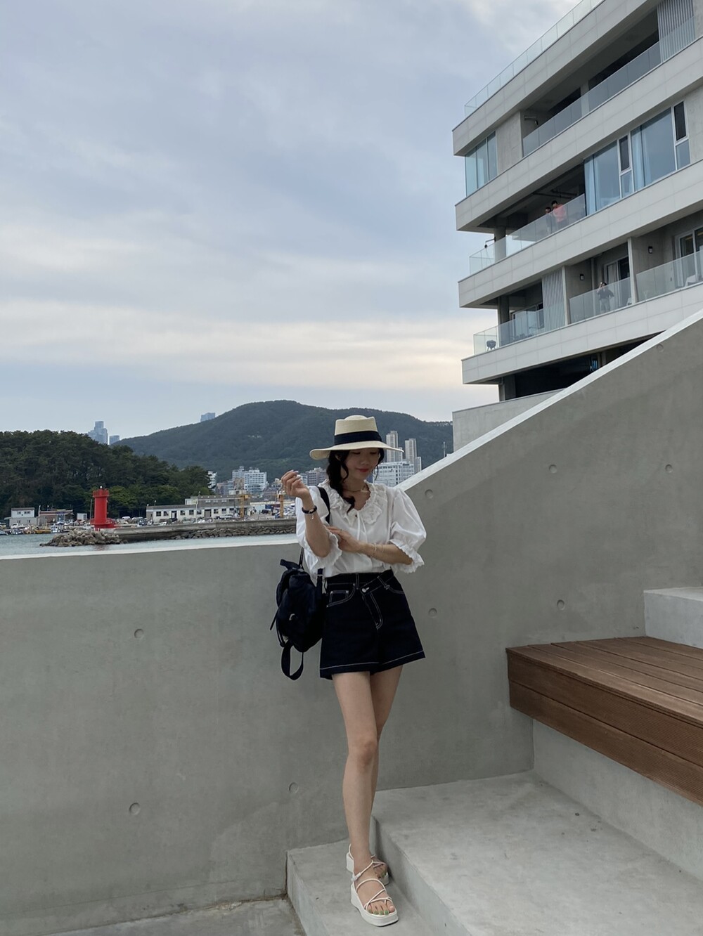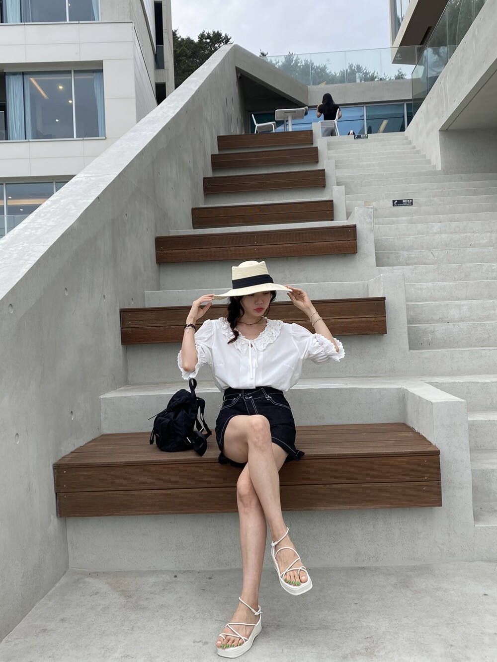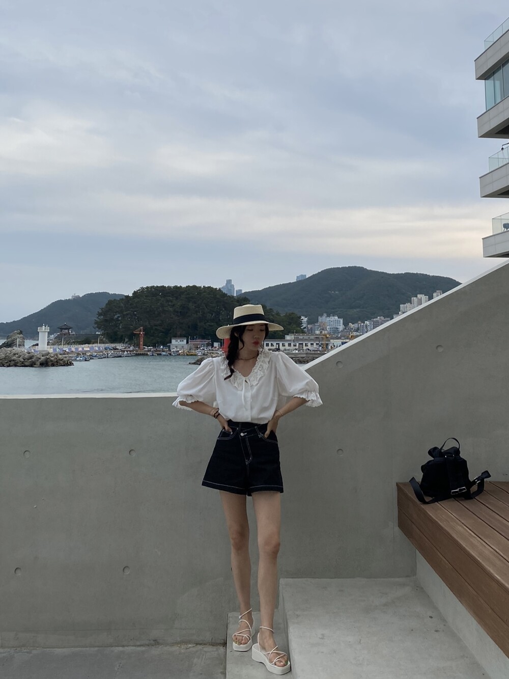 러블리한 레이스 펀칭 카라 디테일로 사랑스러운 무드가