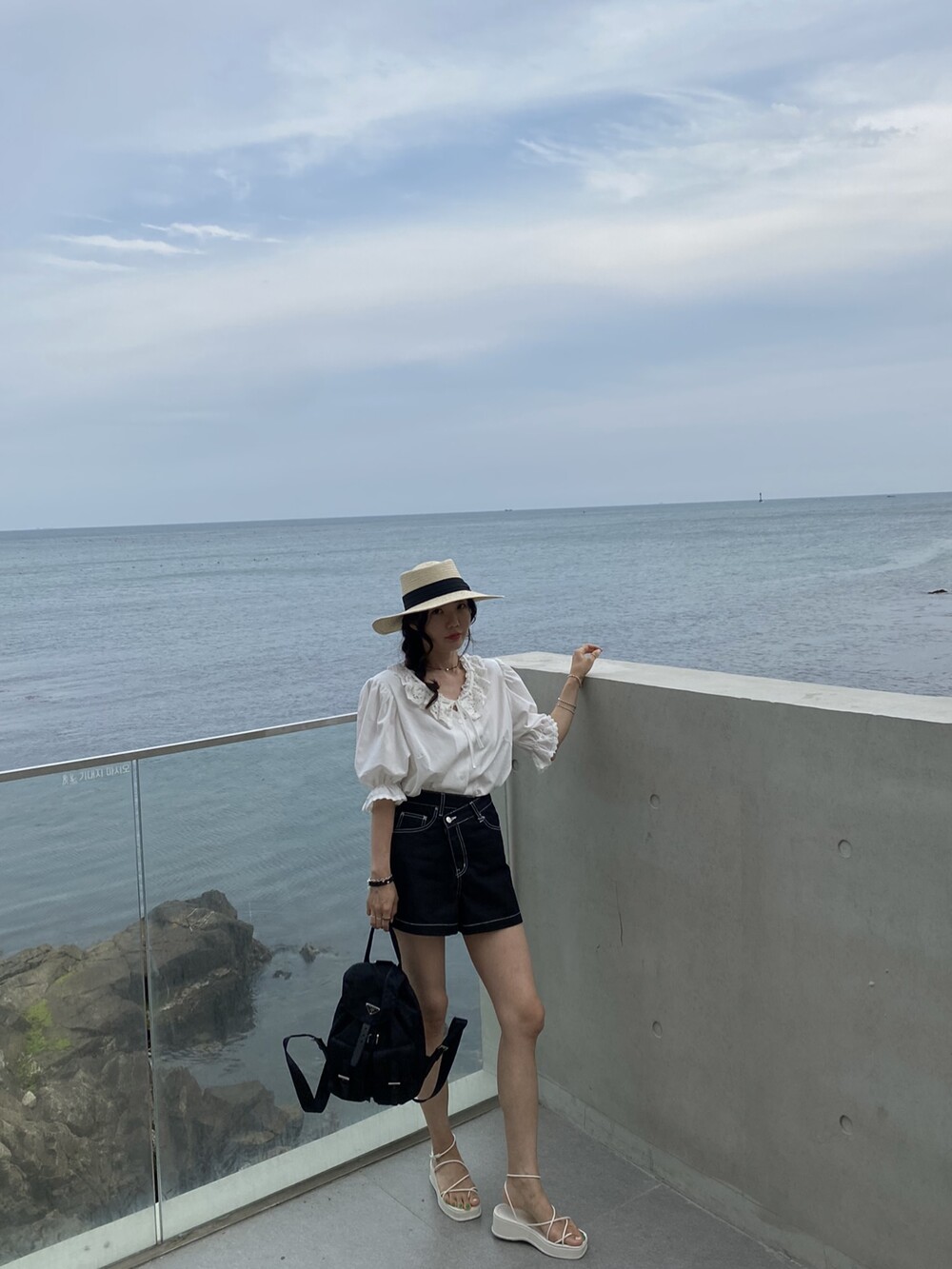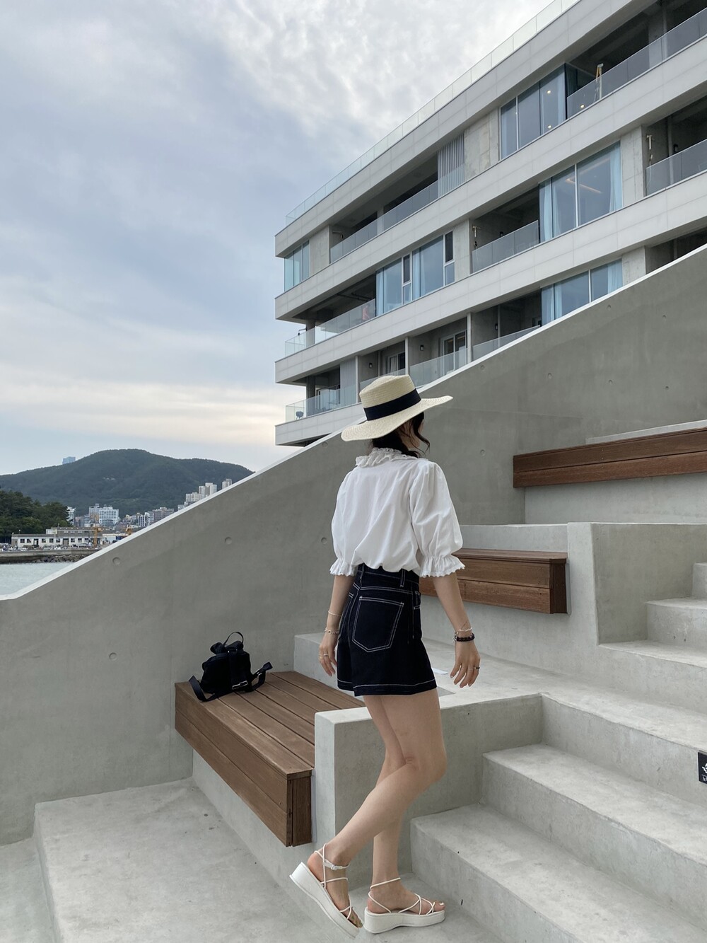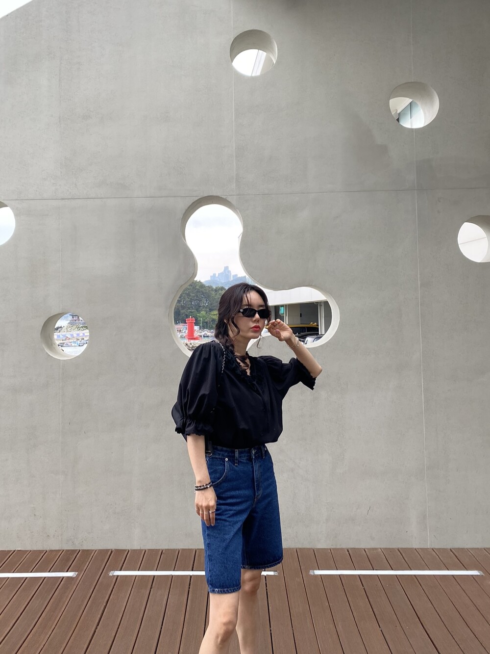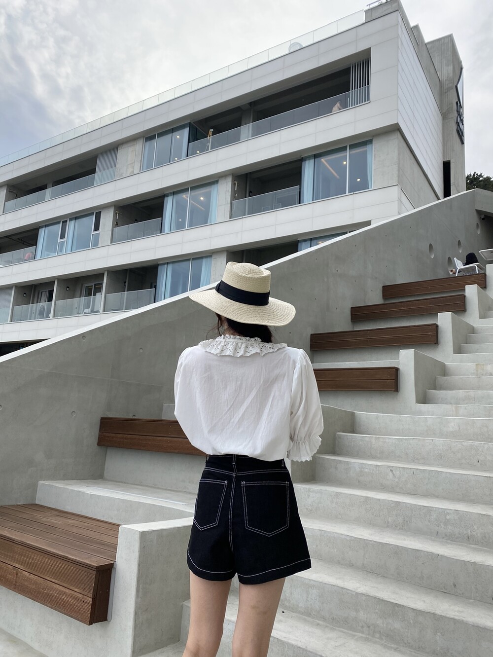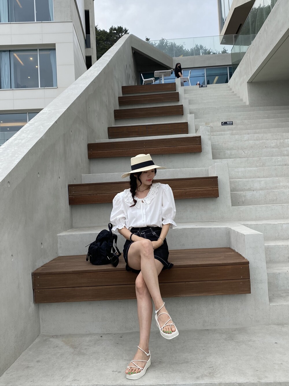 러블리한 레이스 펀칭 카라 디테일로 사랑스러운 무드가