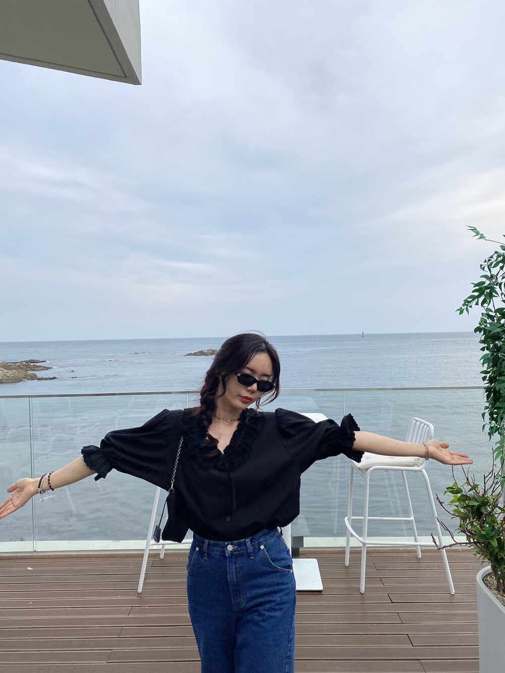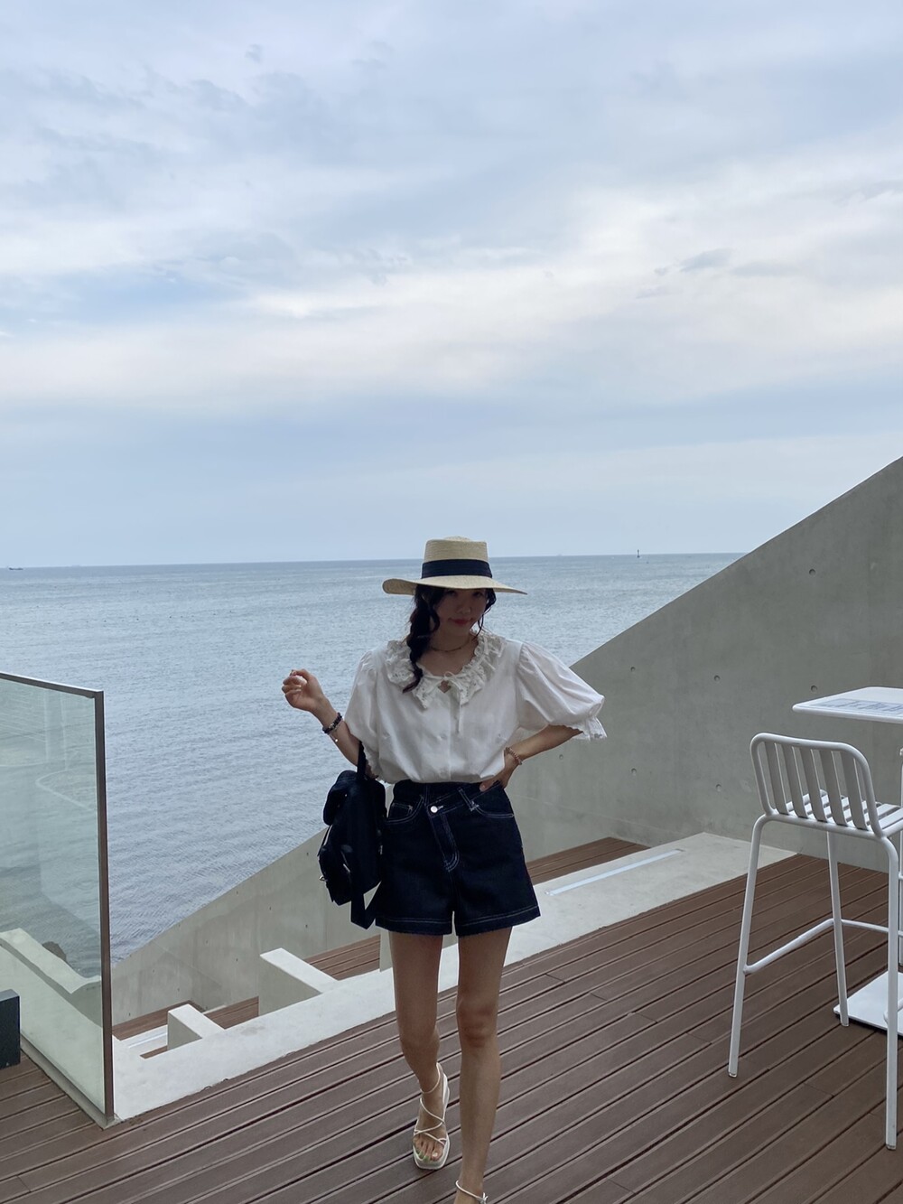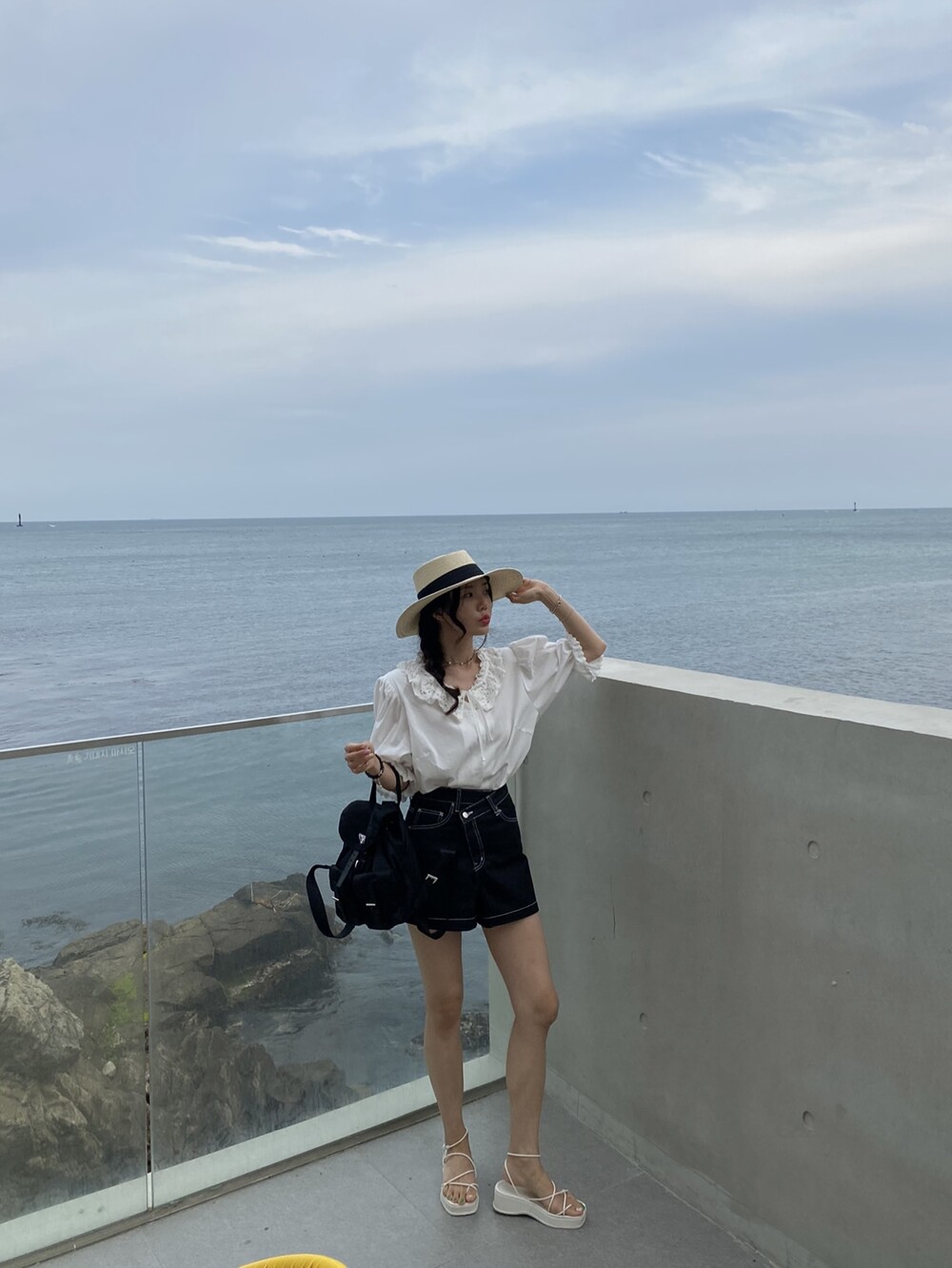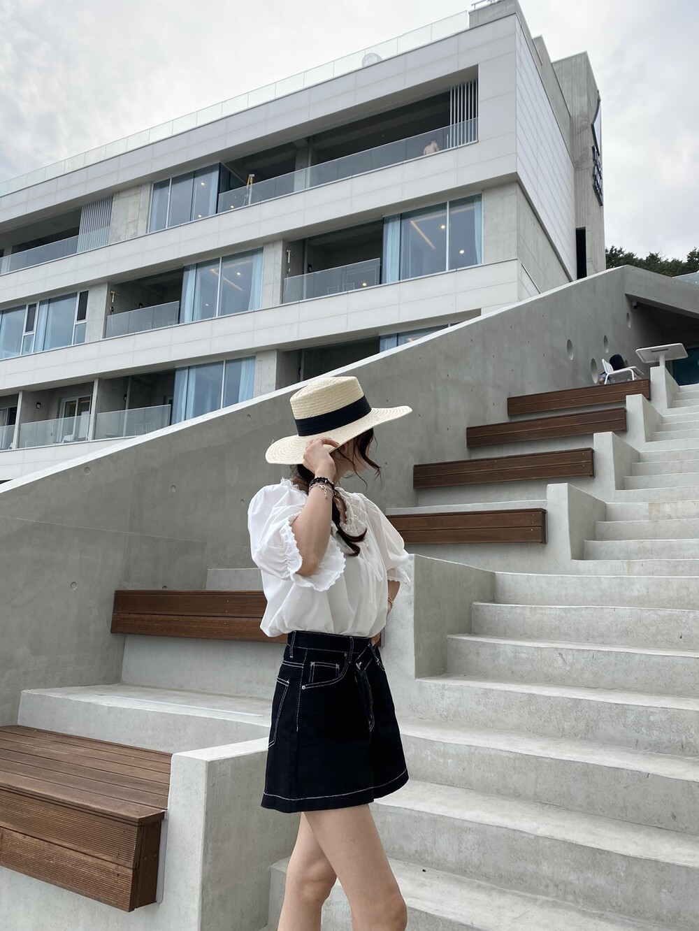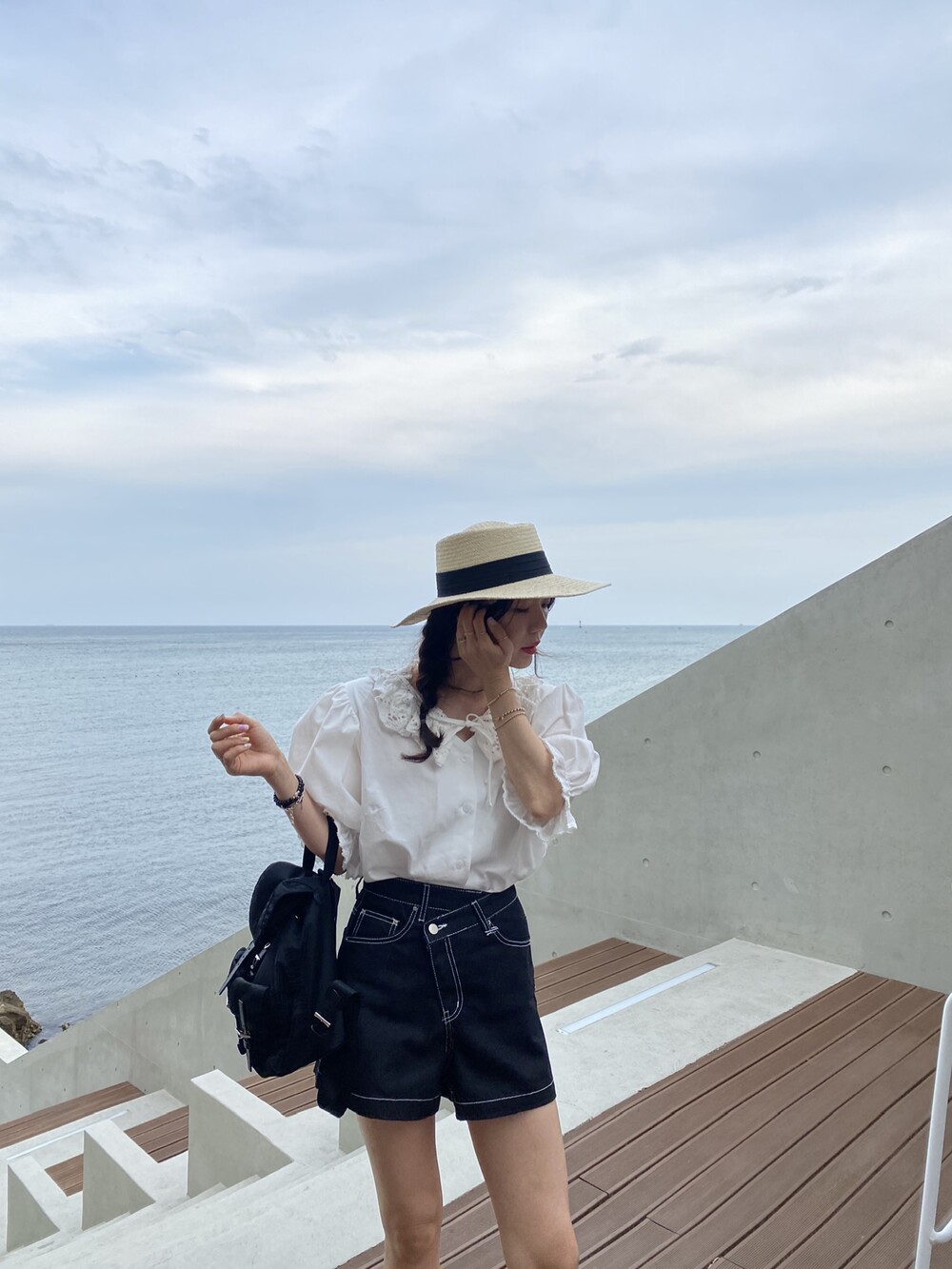 러블리한 레이스 펀칭 카라 디테일로 사랑스러운 무드가