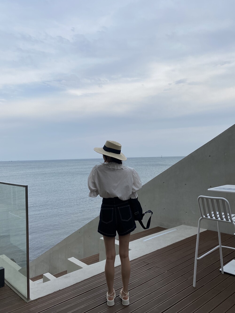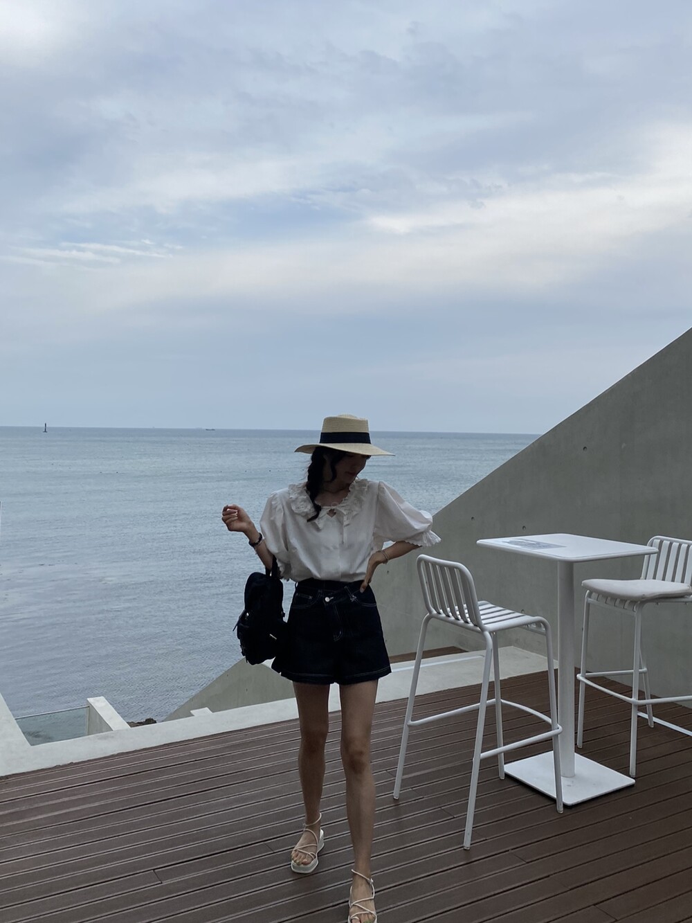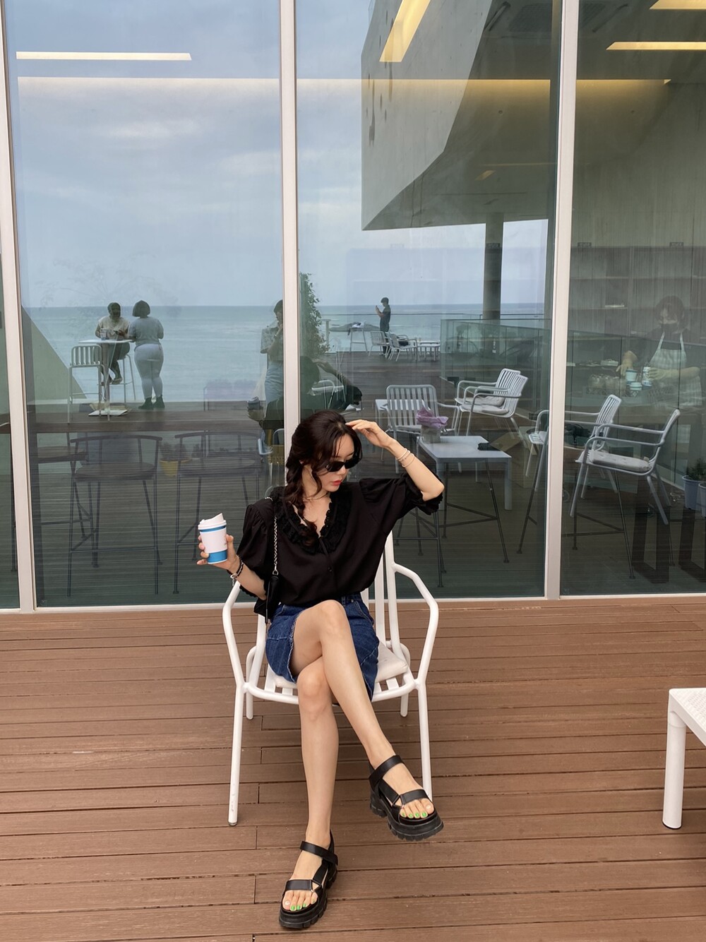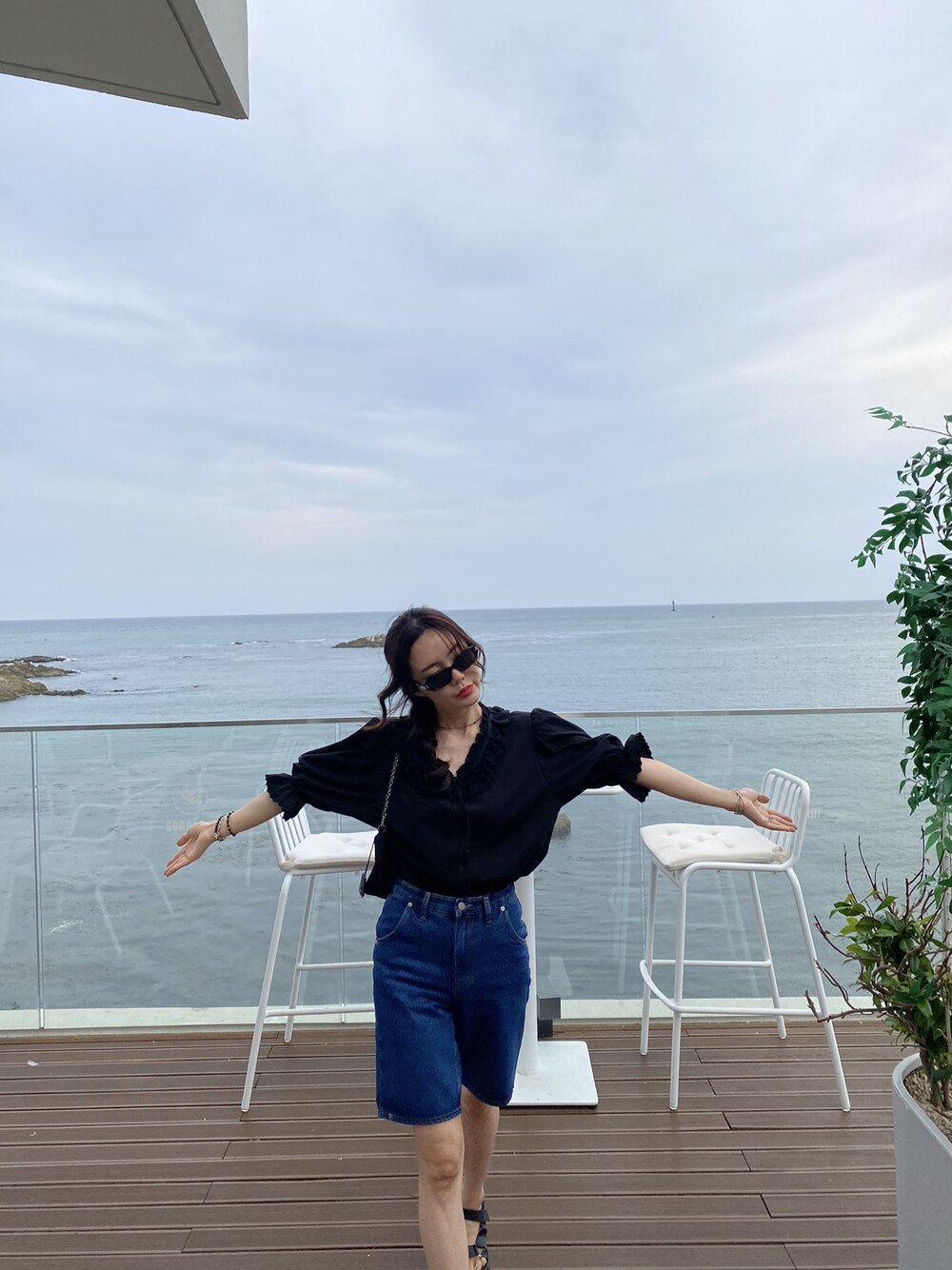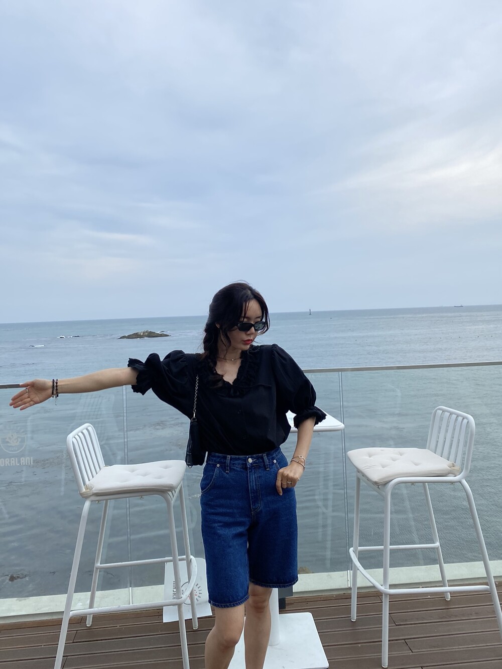 러블리한 레이스 펀칭 카라 디테일로 사랑스러운 무드가
