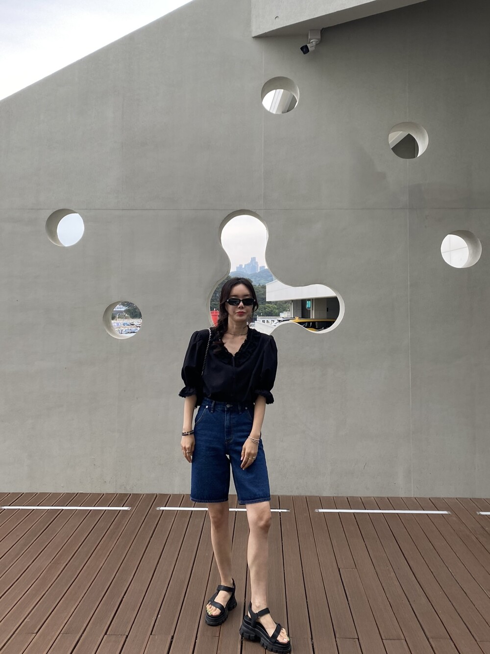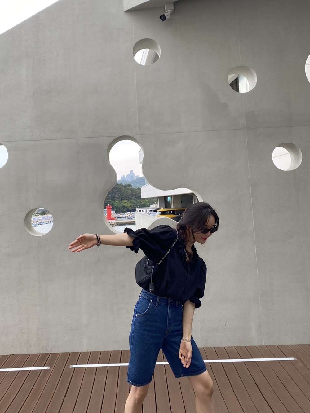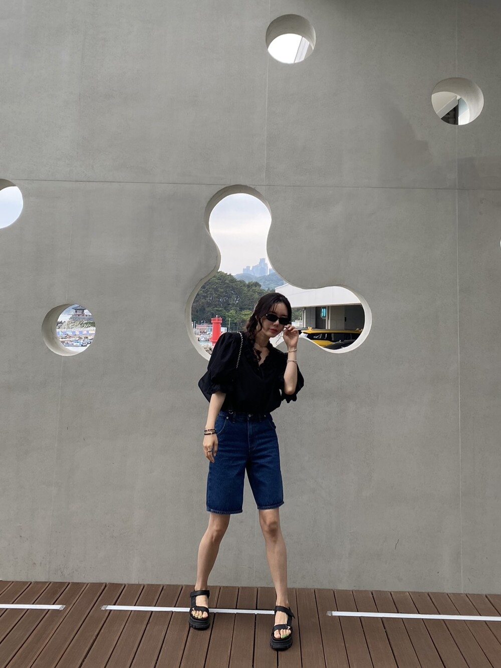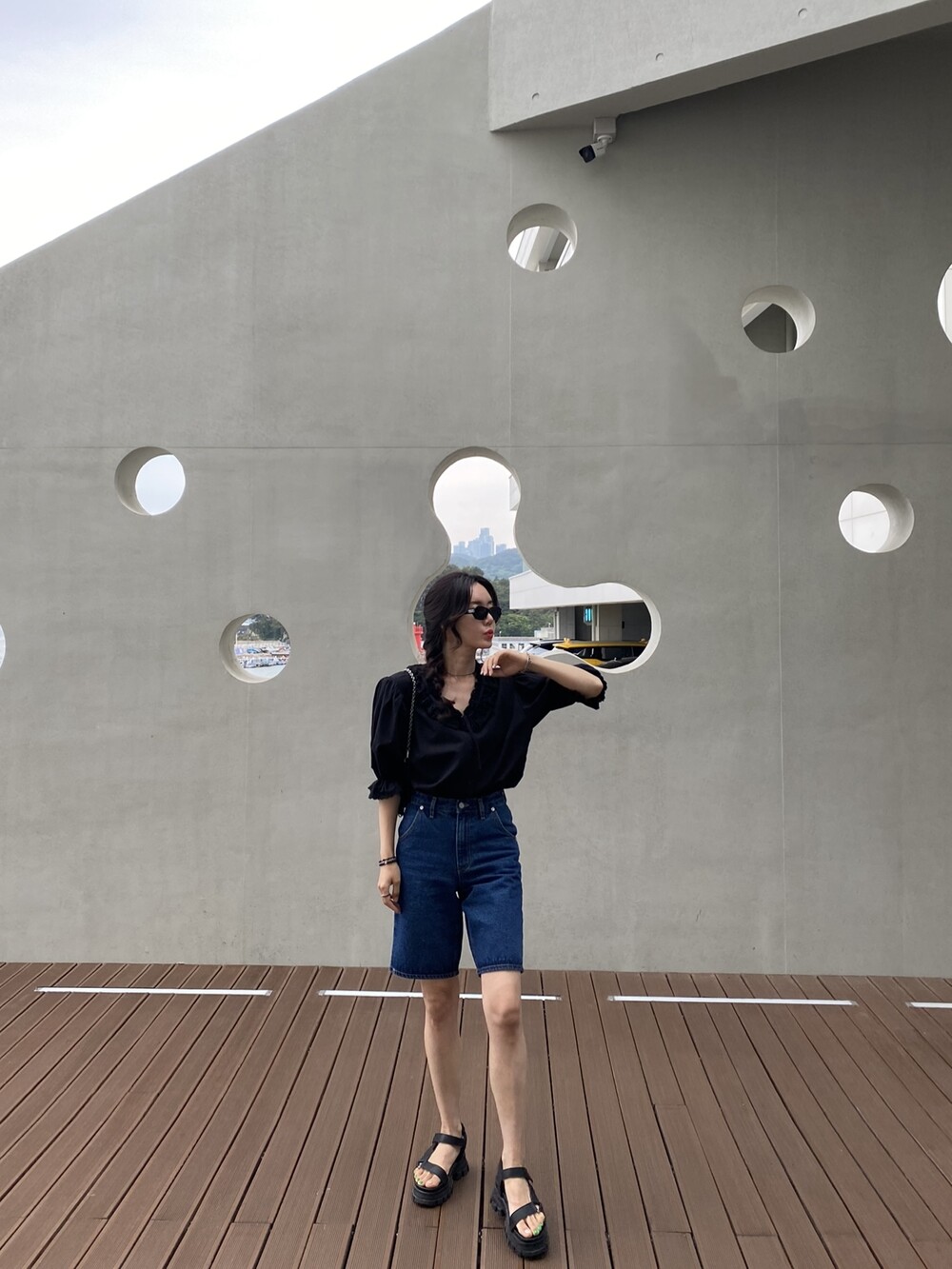 반팔라인으로 미운 팔뚝살을 가려주며 기장감이