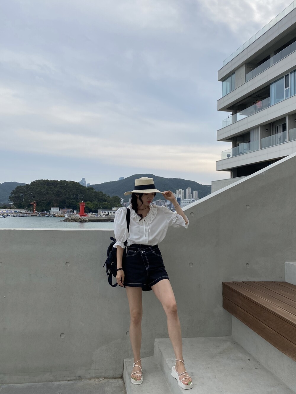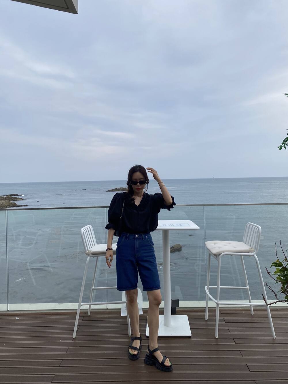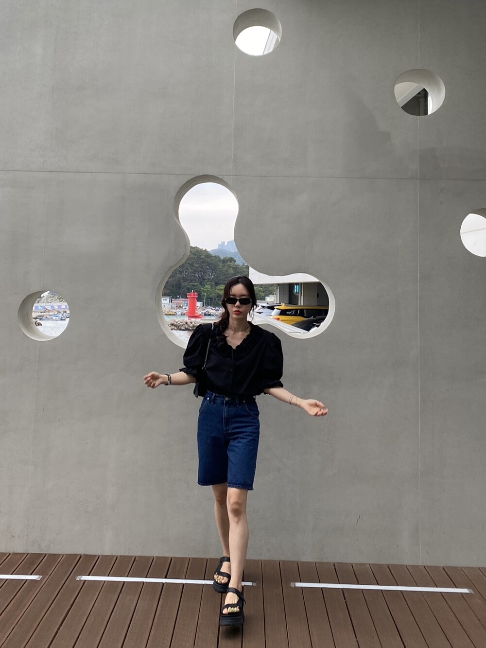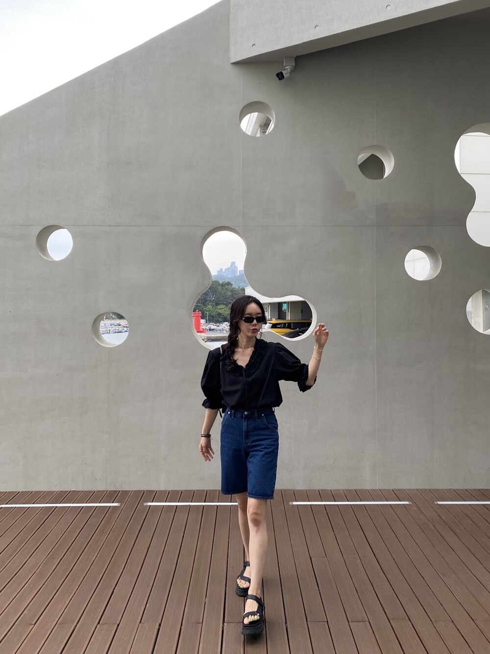 반팔라인으로 미운 팔뚝살을 가려주며 기장감이