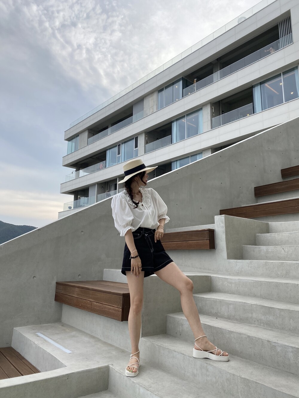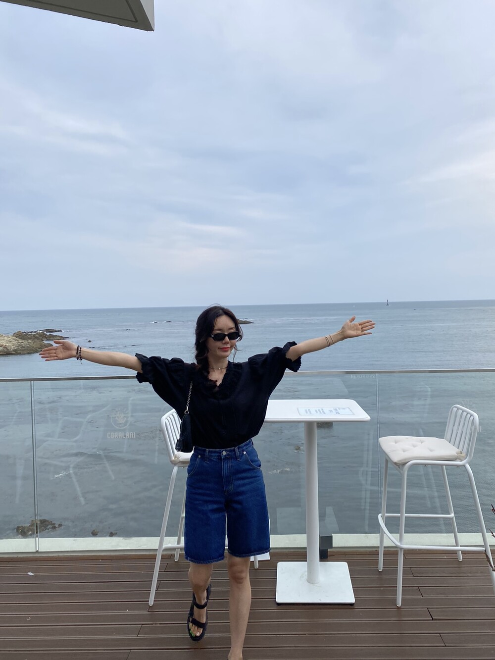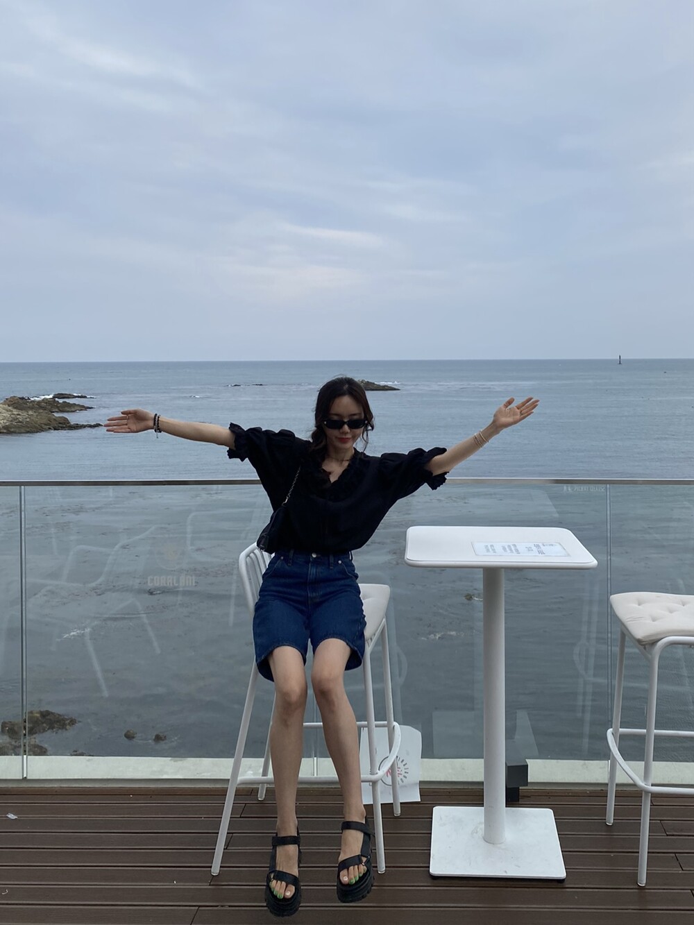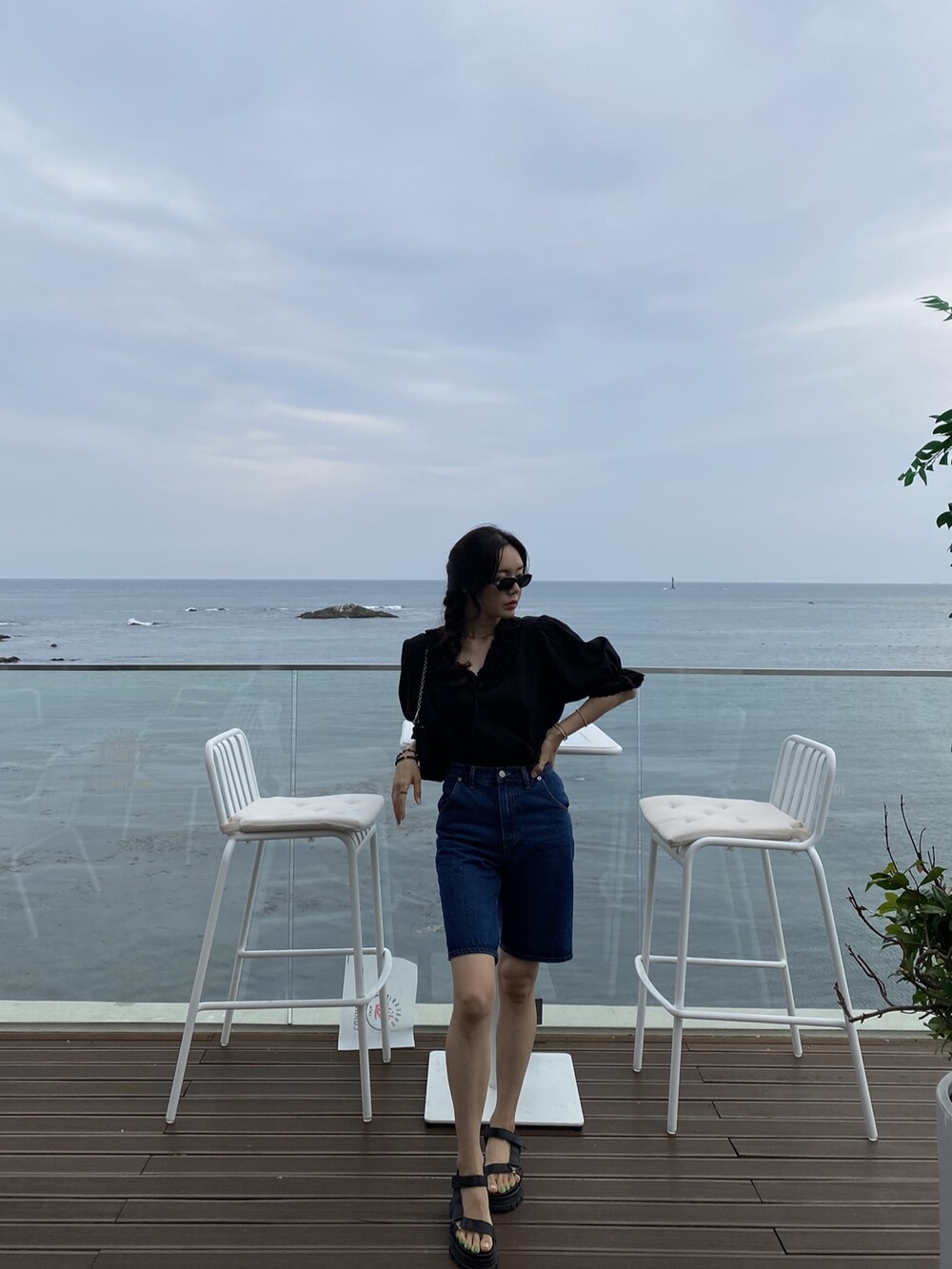 반팔라인으로 미운 팔뚝살을 가려주며 기장감이