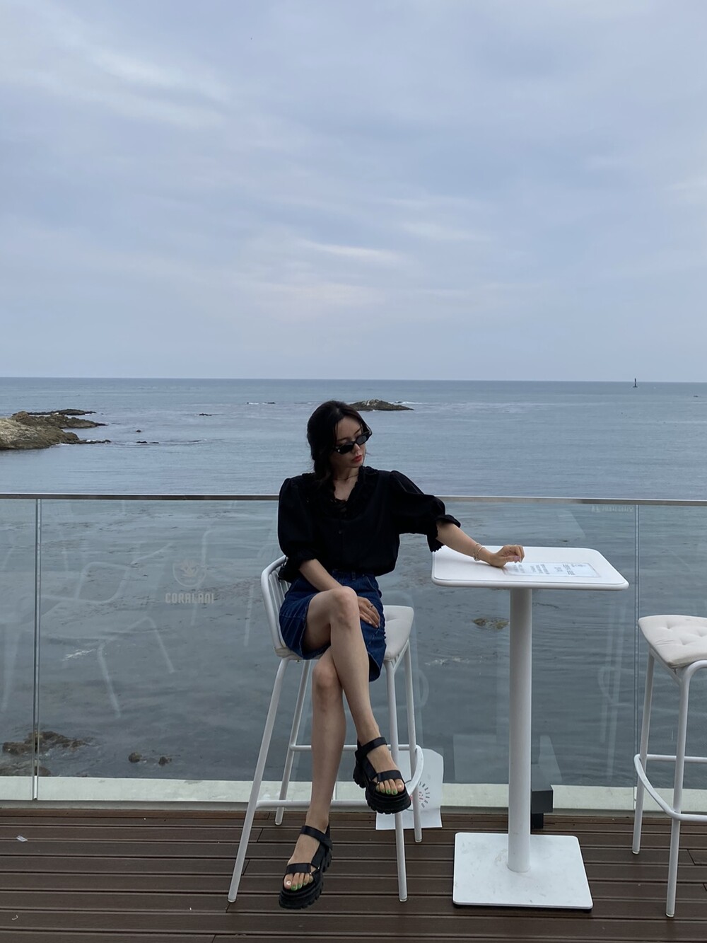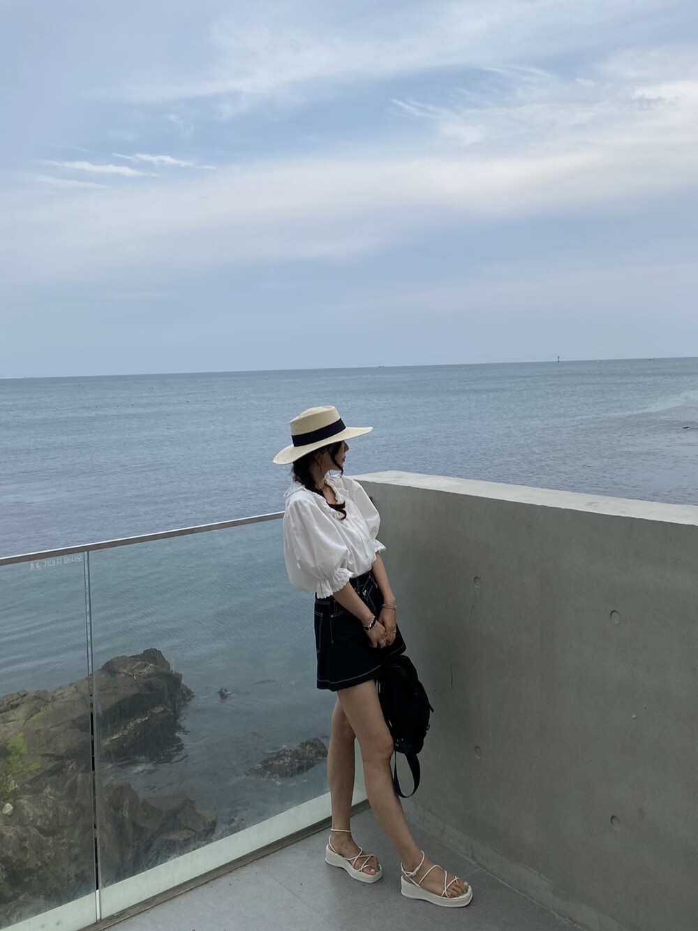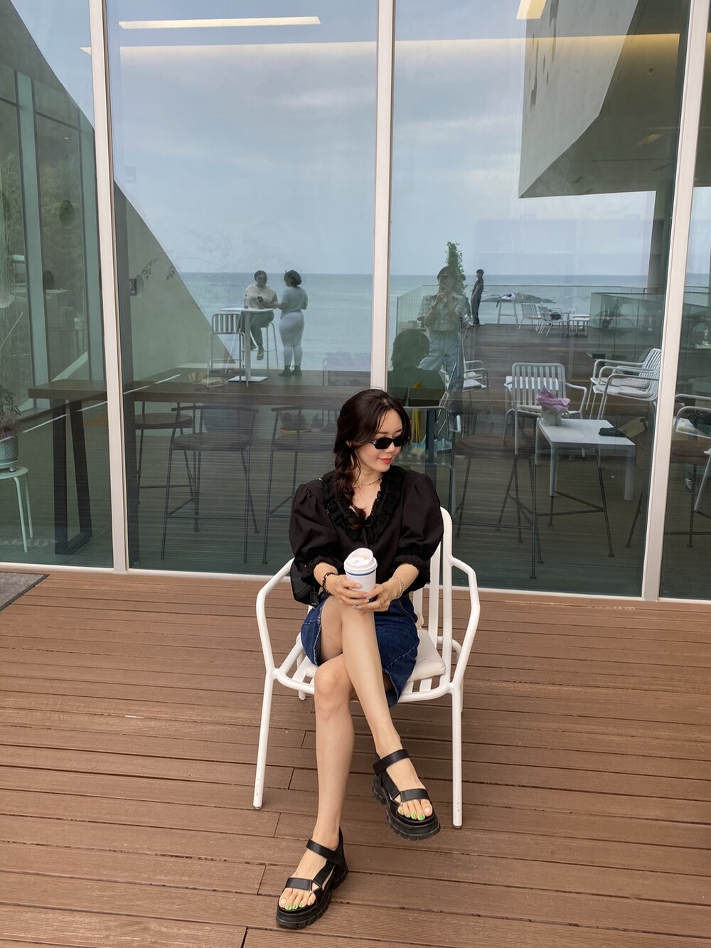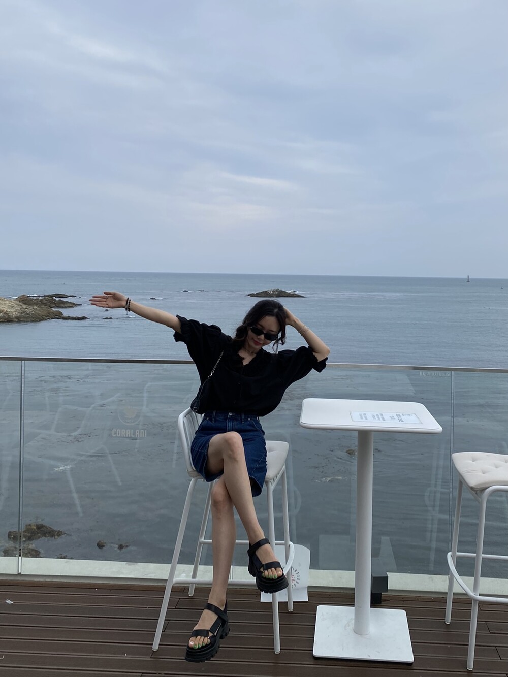 반팔라인으로 미운 팔뚝살을 가려주며 기장감이