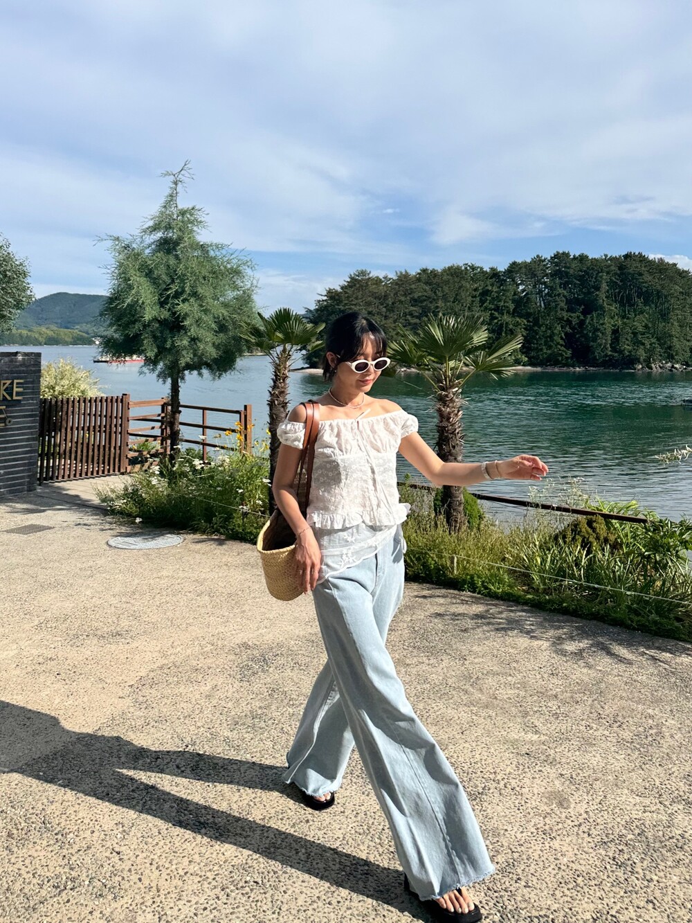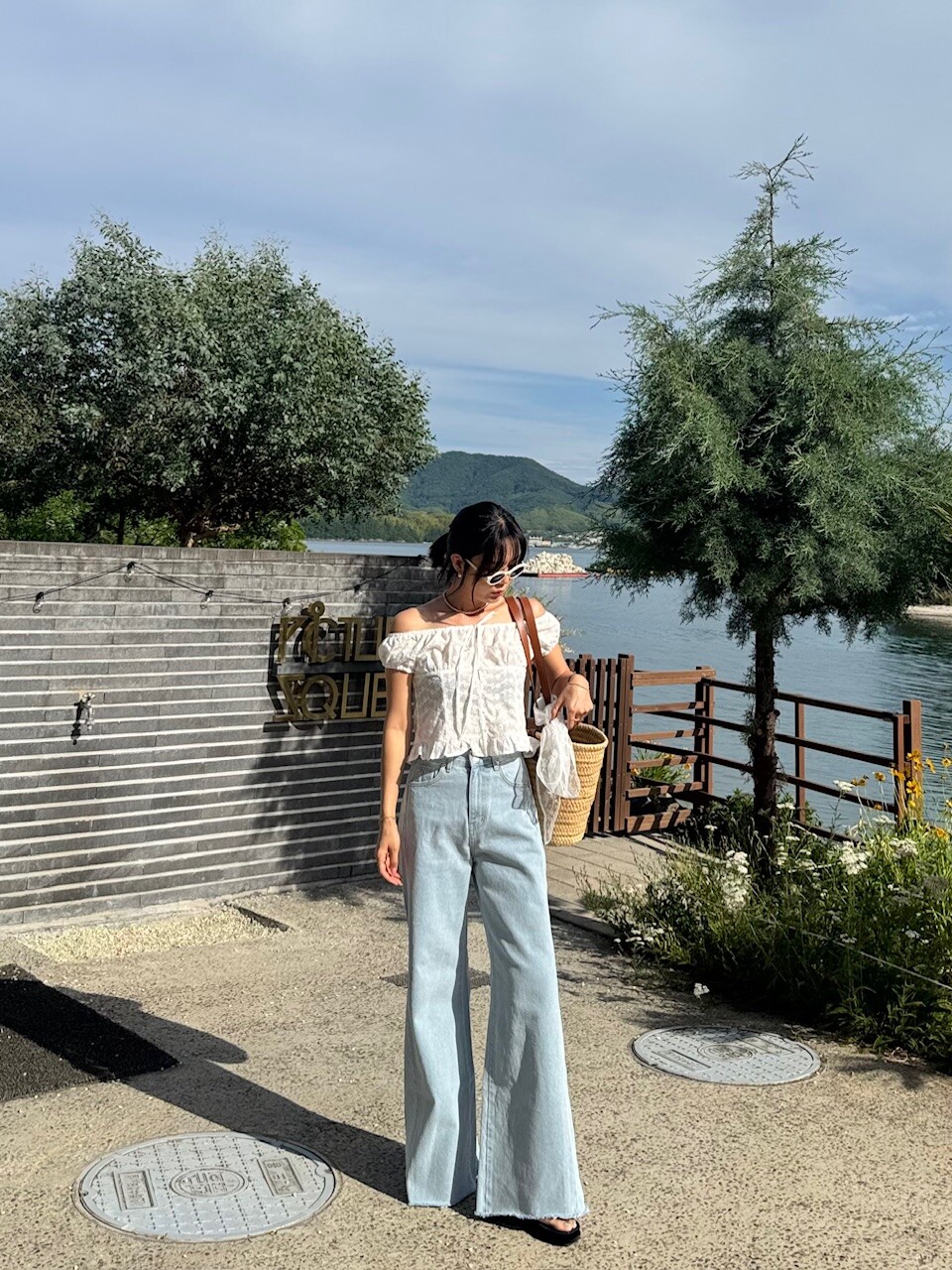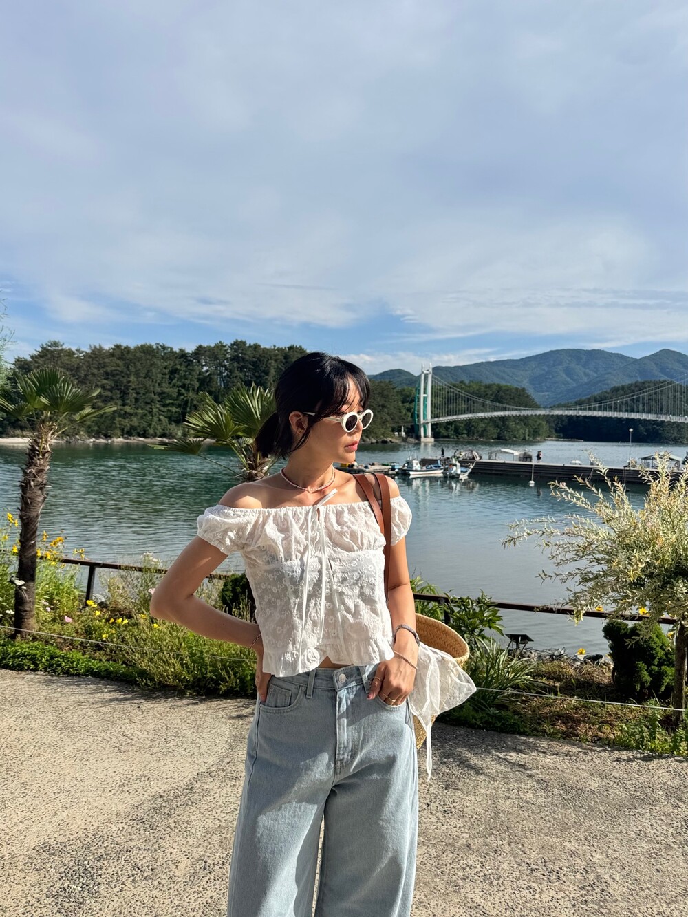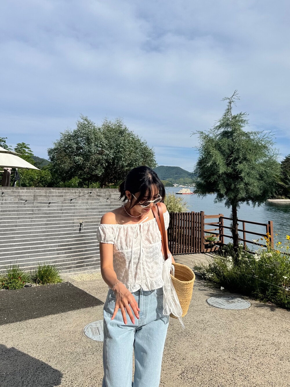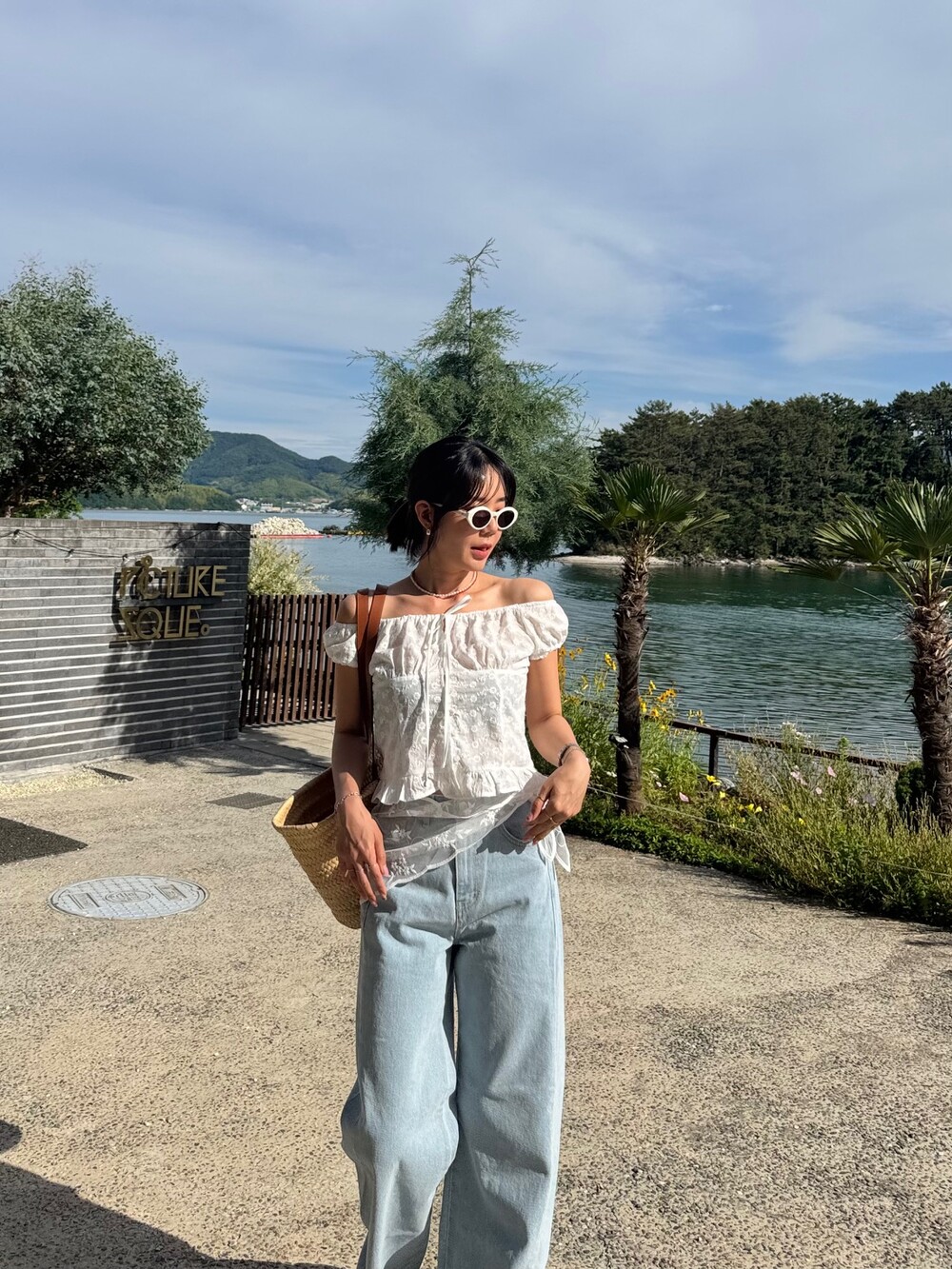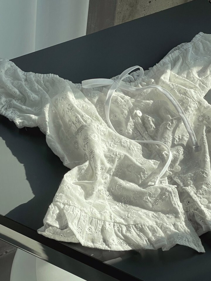 플라워 패턴의 펀칭디테일의 블라우스예요
