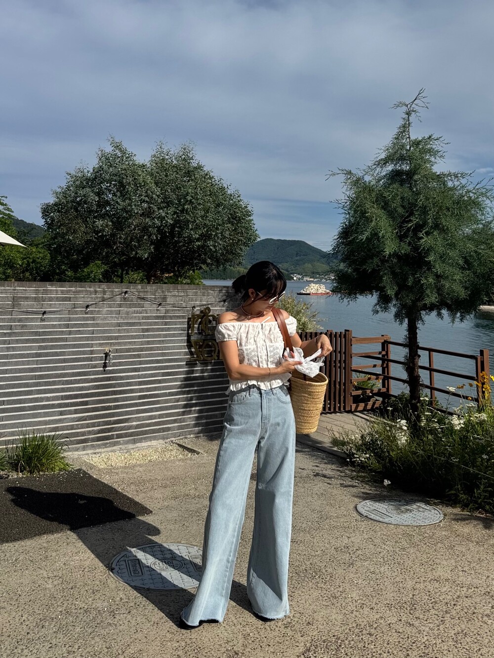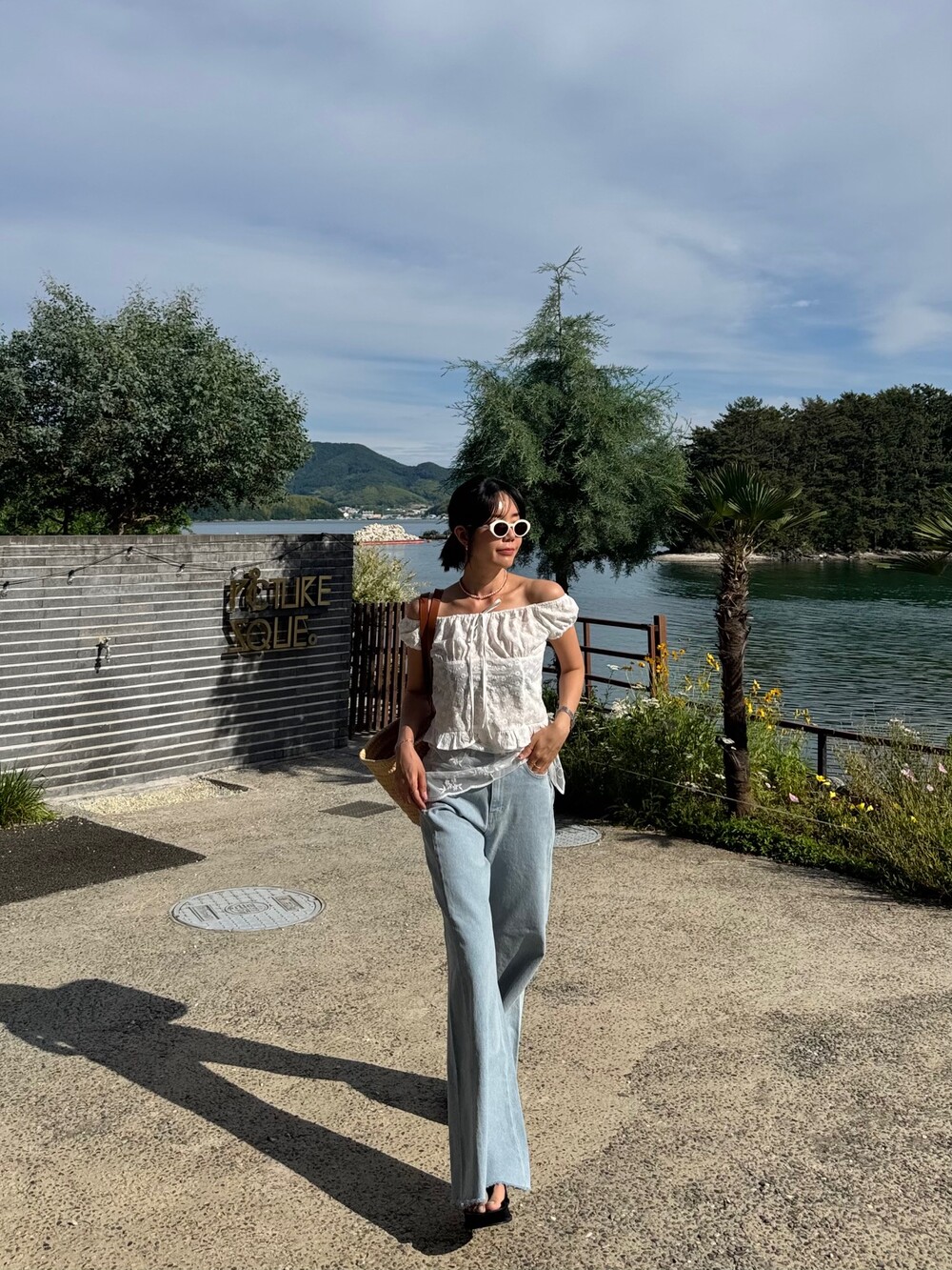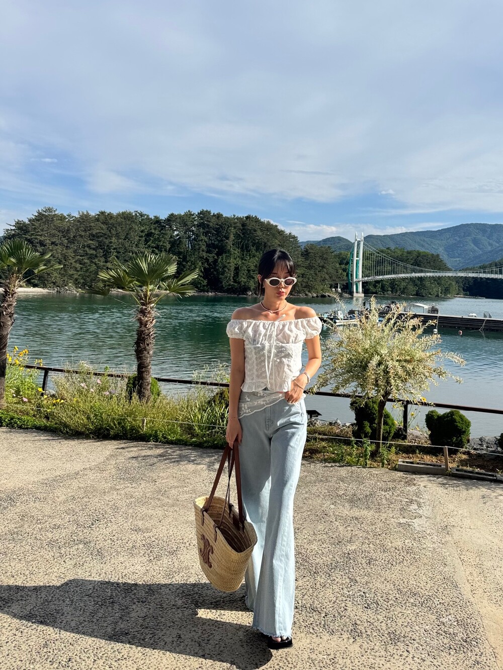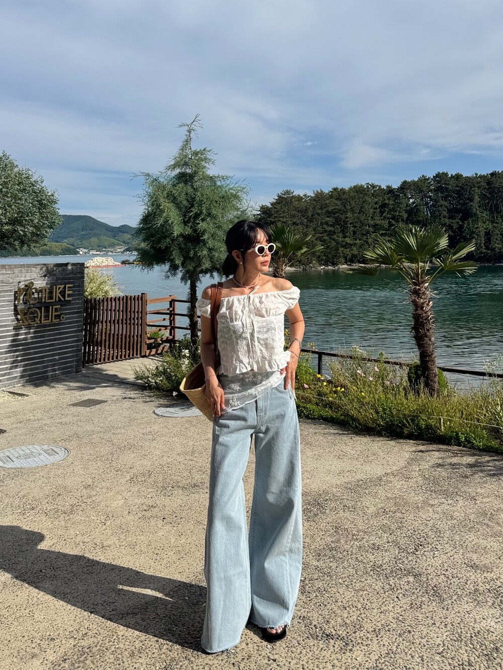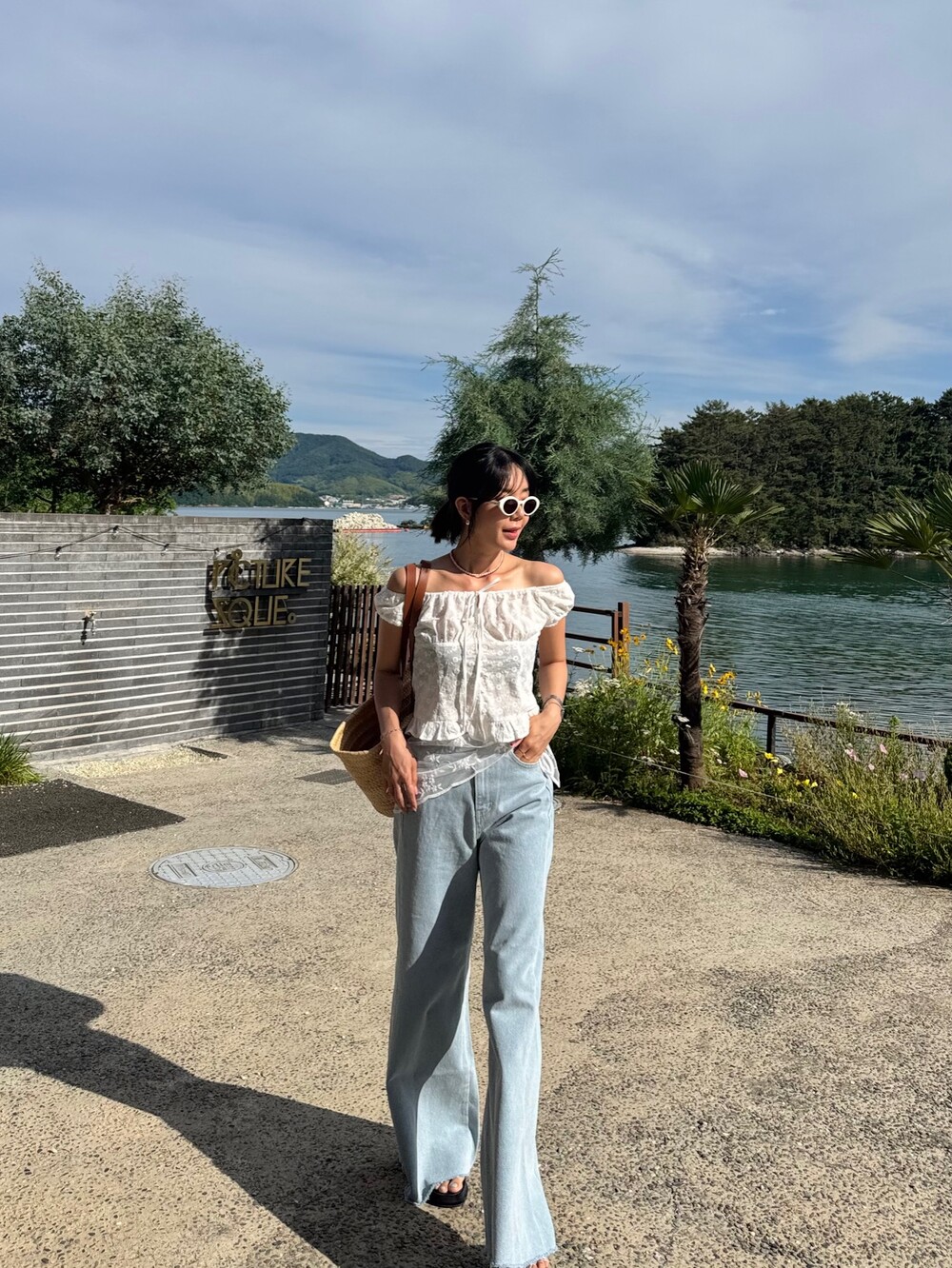 플라워 패턴의 펀칭디테일의 블라우스예요