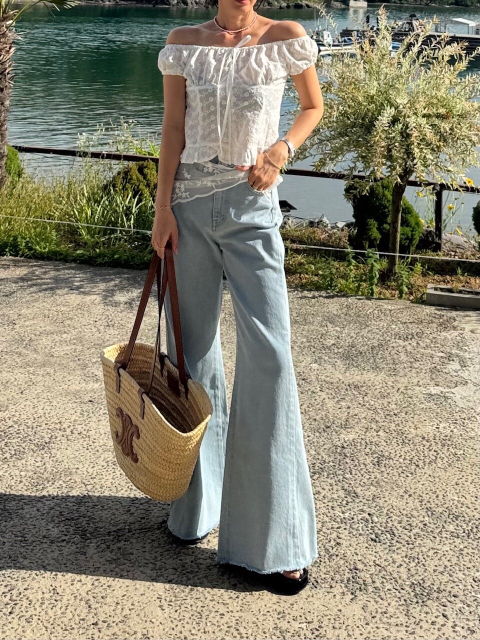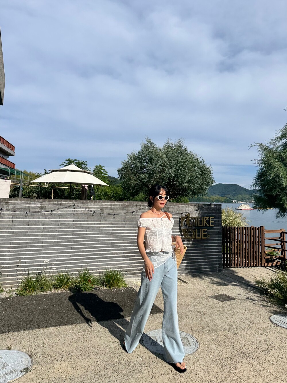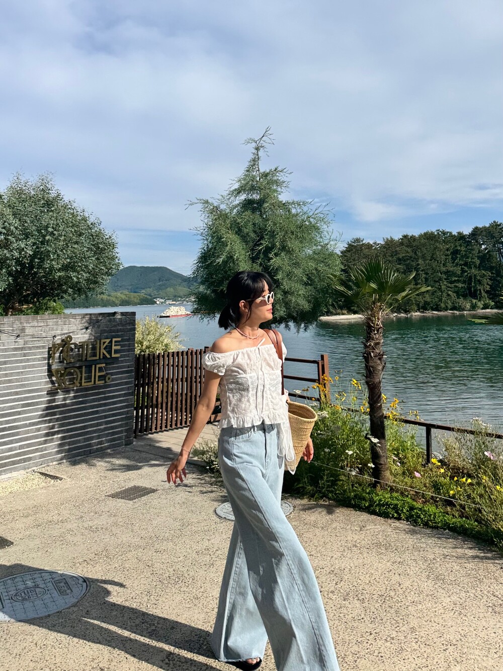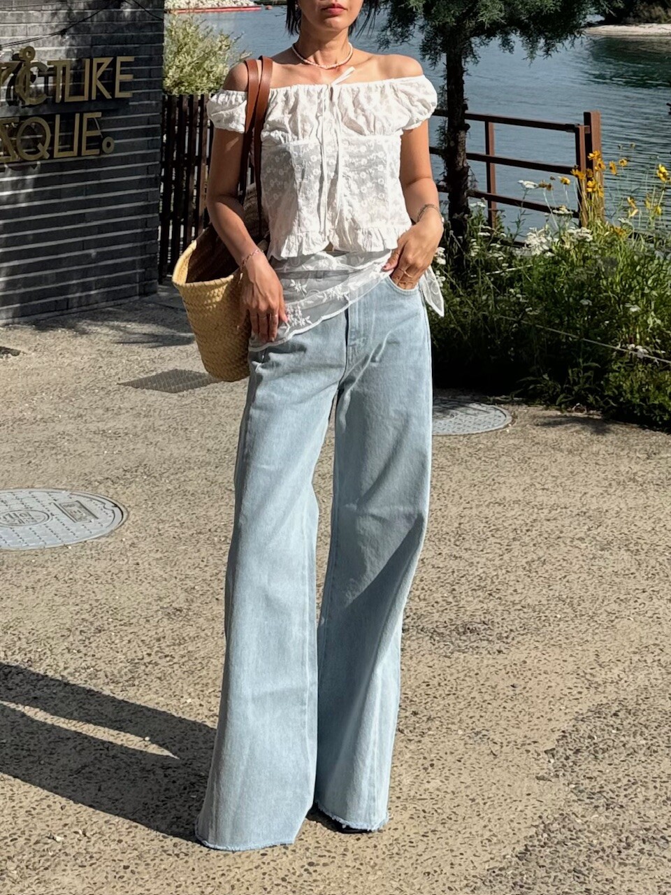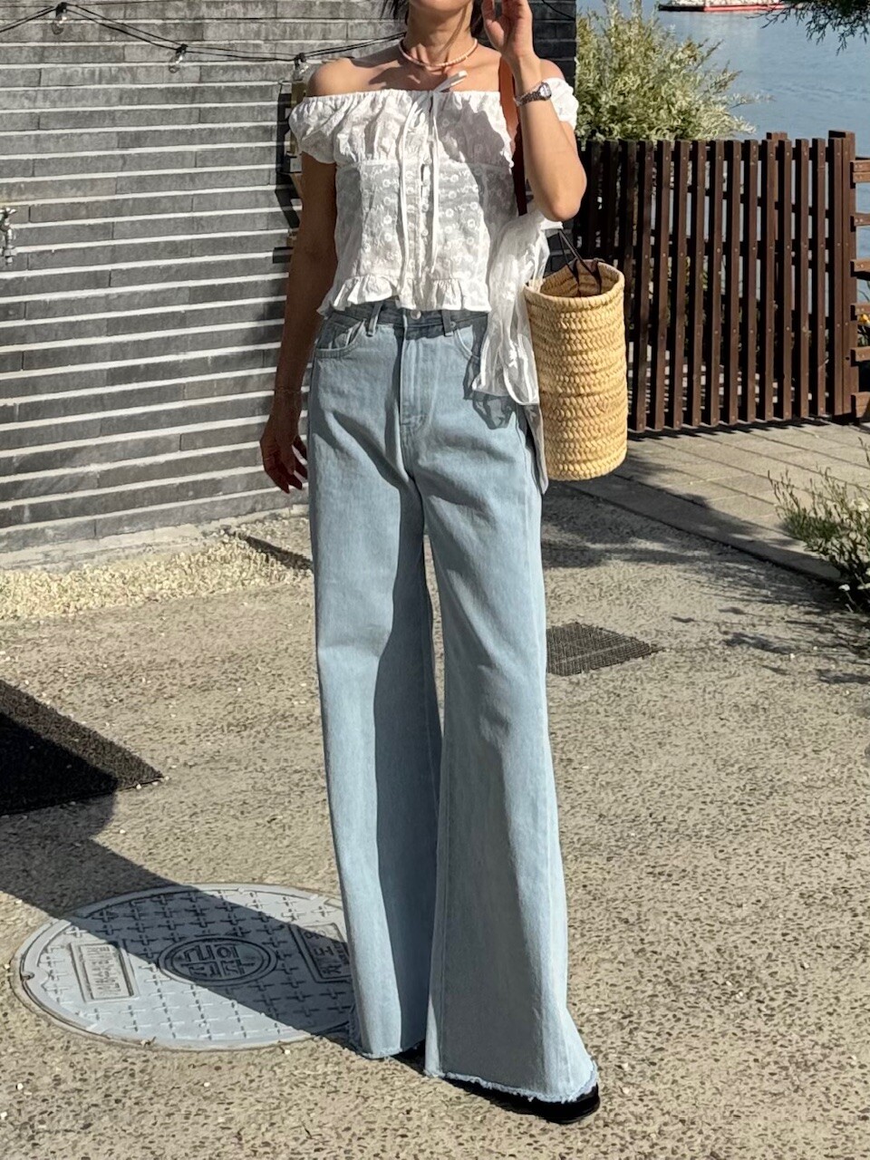 플라워 패턴의 펀칭디테일의 블라우스예요