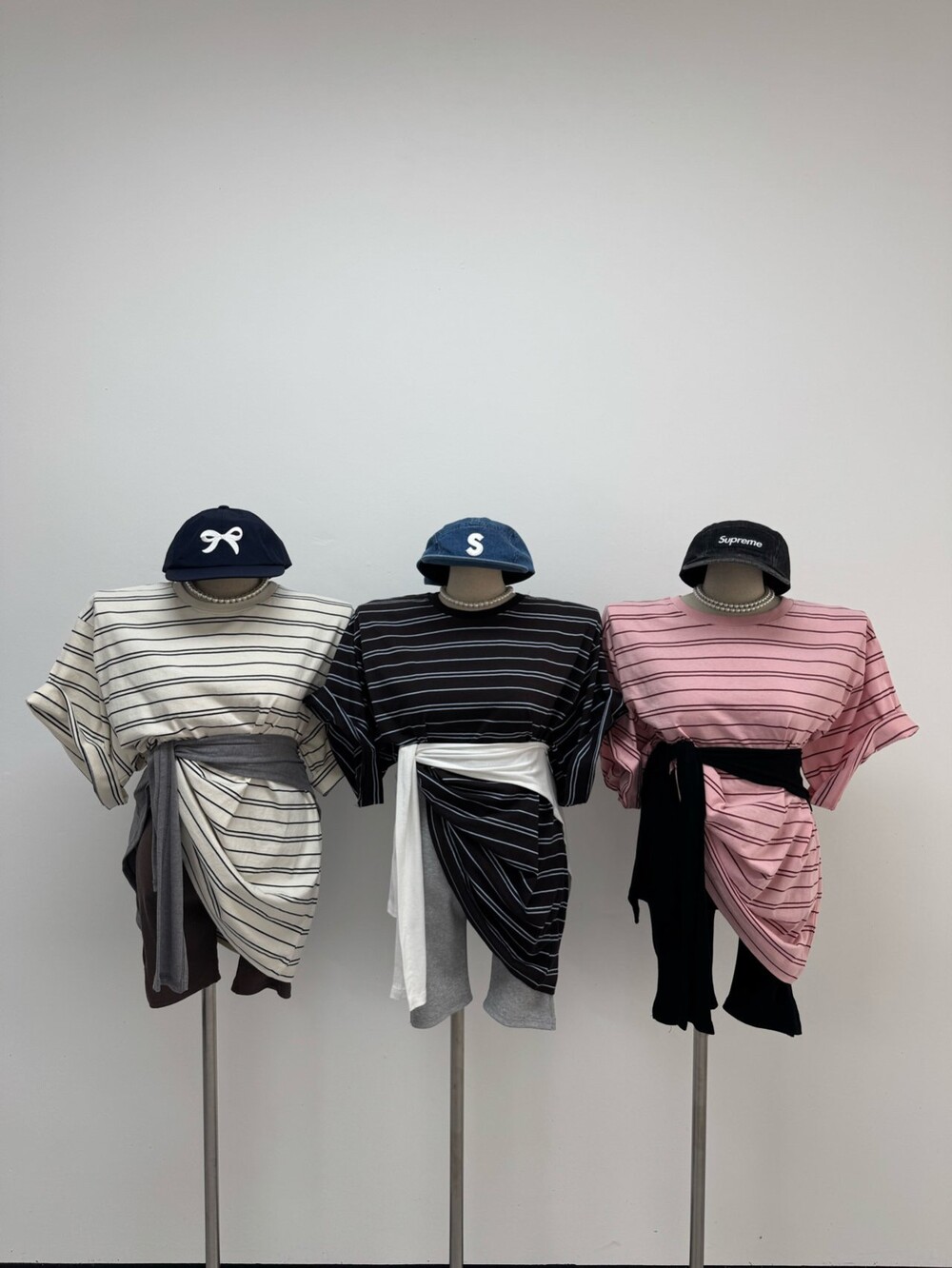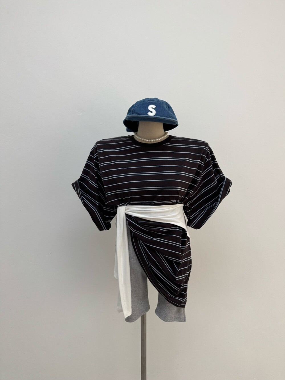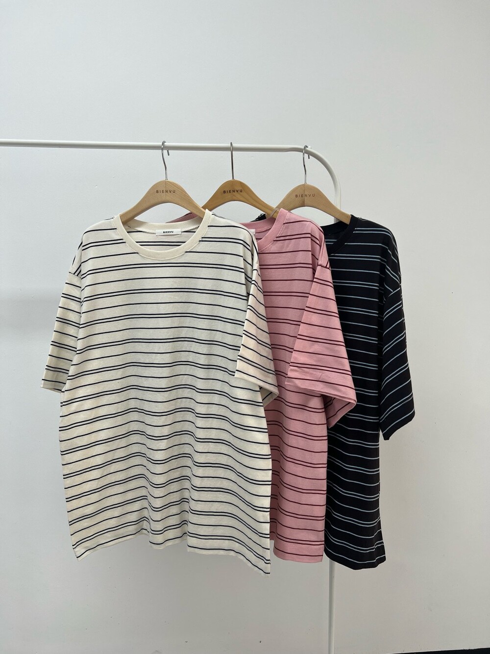 박시핏 토퍼 단가라 티셔츠 3col