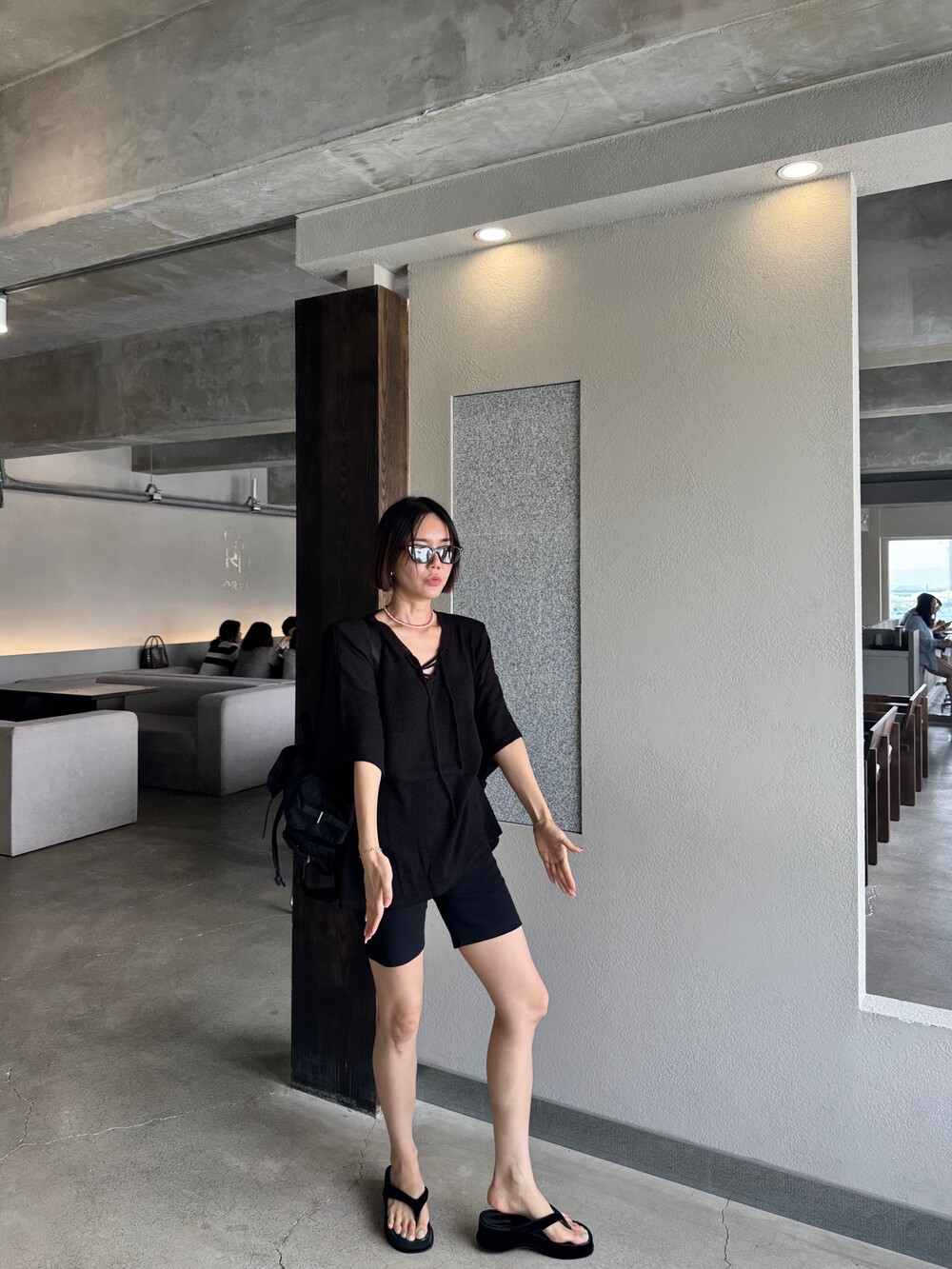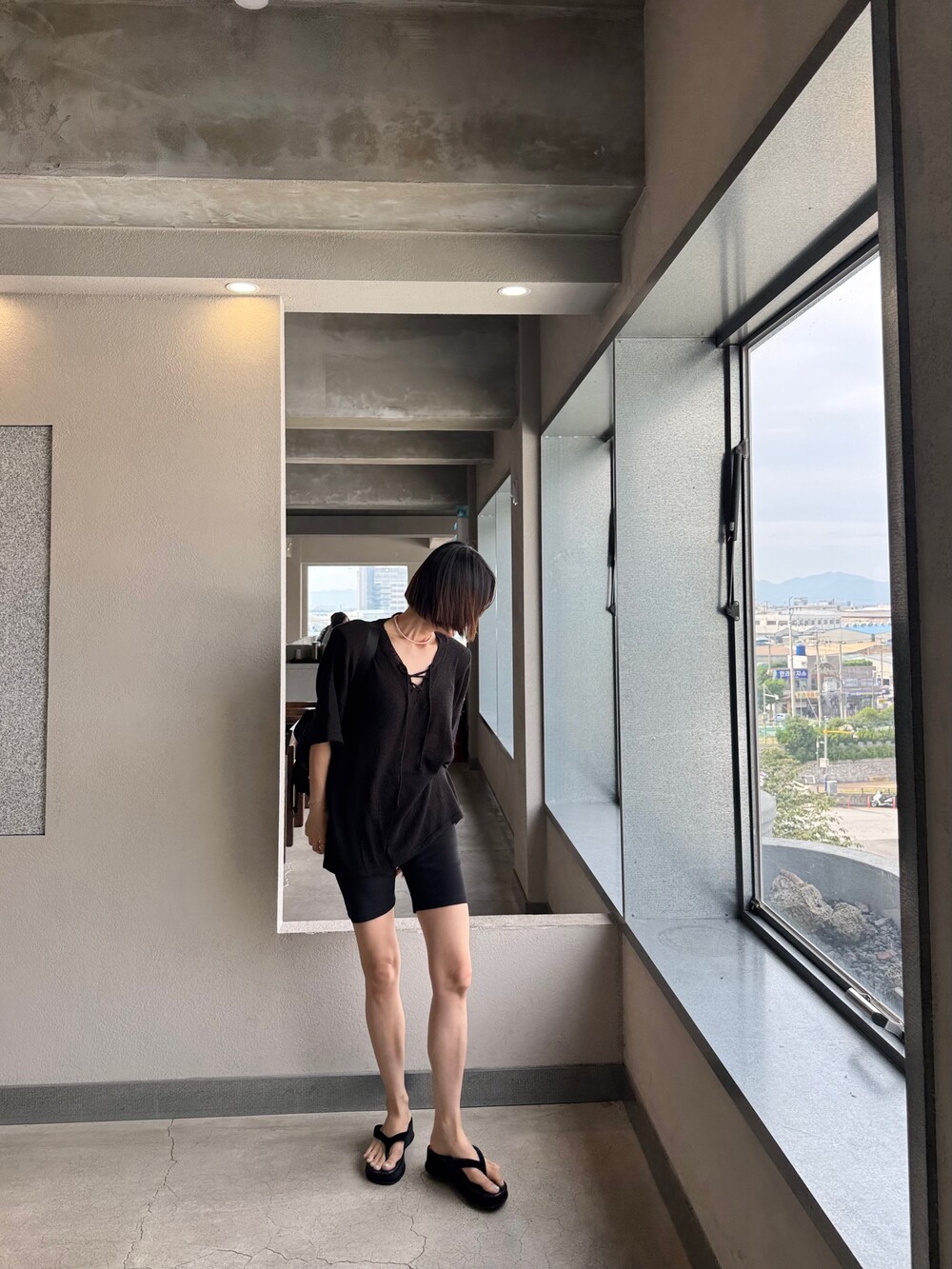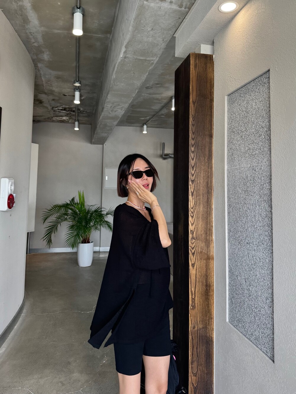 특징: 신축성 O, 비침 O, 안감 X , 두께감 보통, 무게감 보통