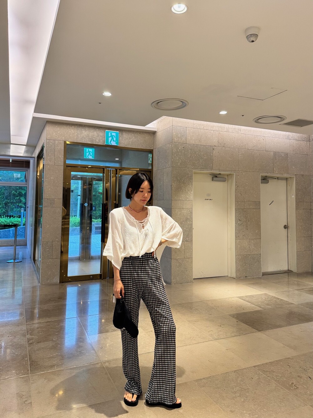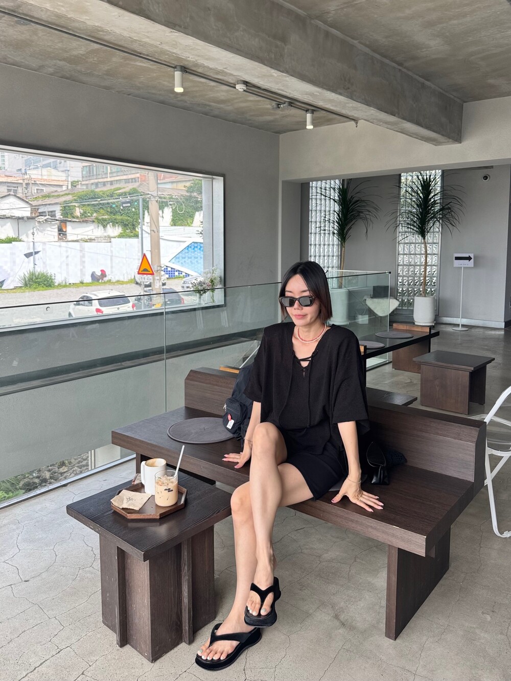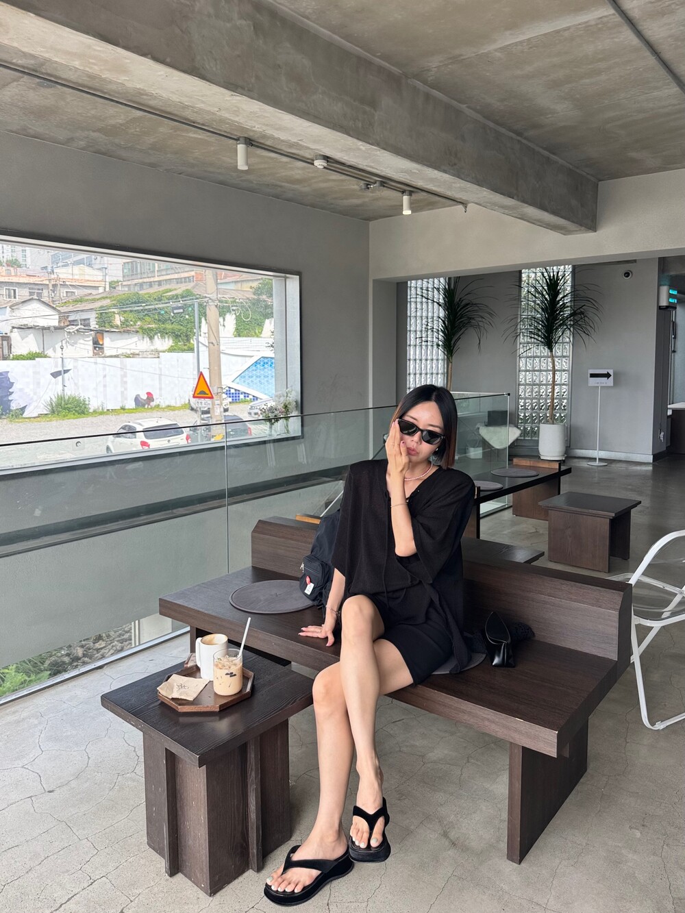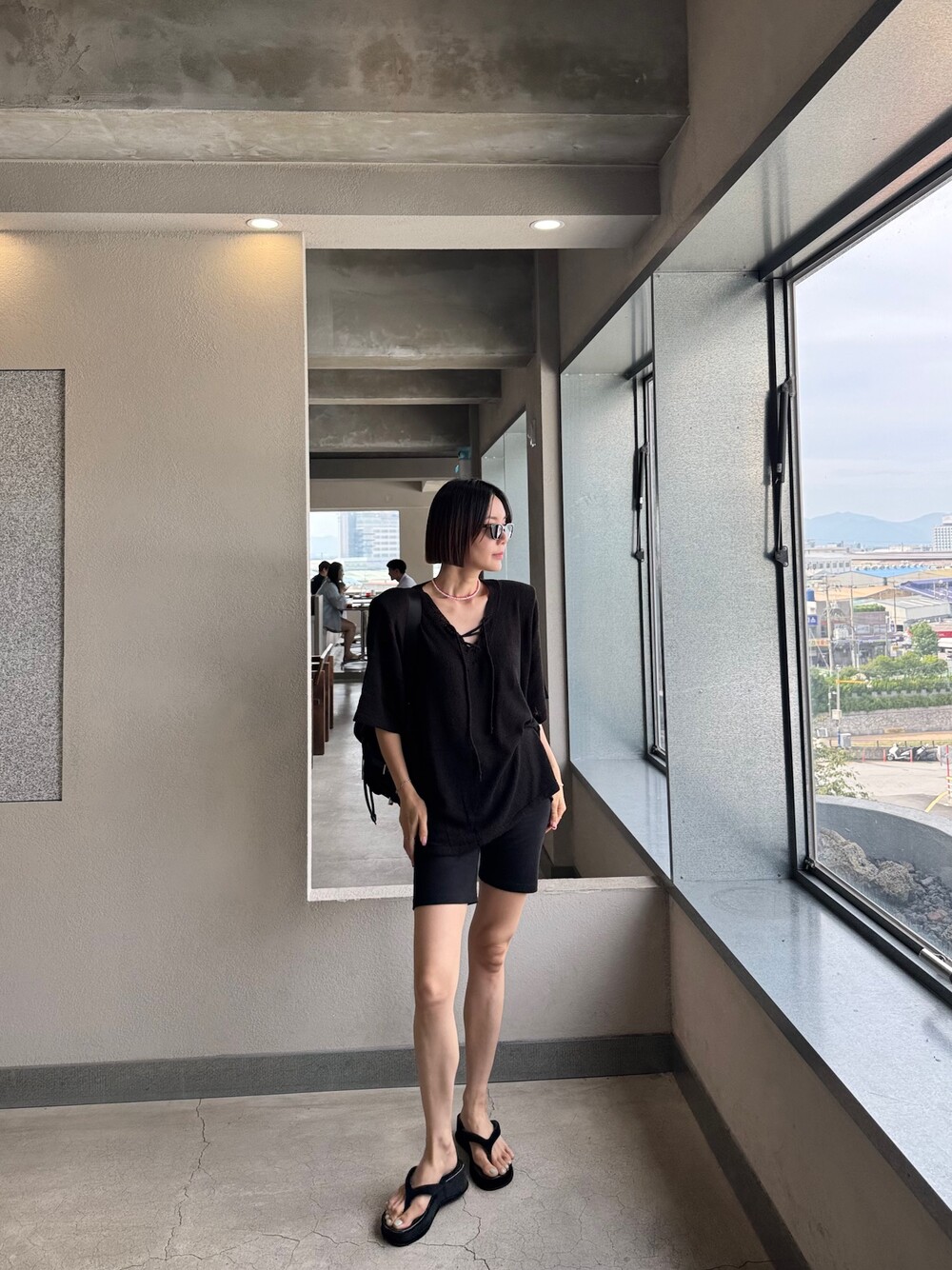 특징: 신축성 O, 비침 O, 안감 X , 두께감 보통, 무게감 보통