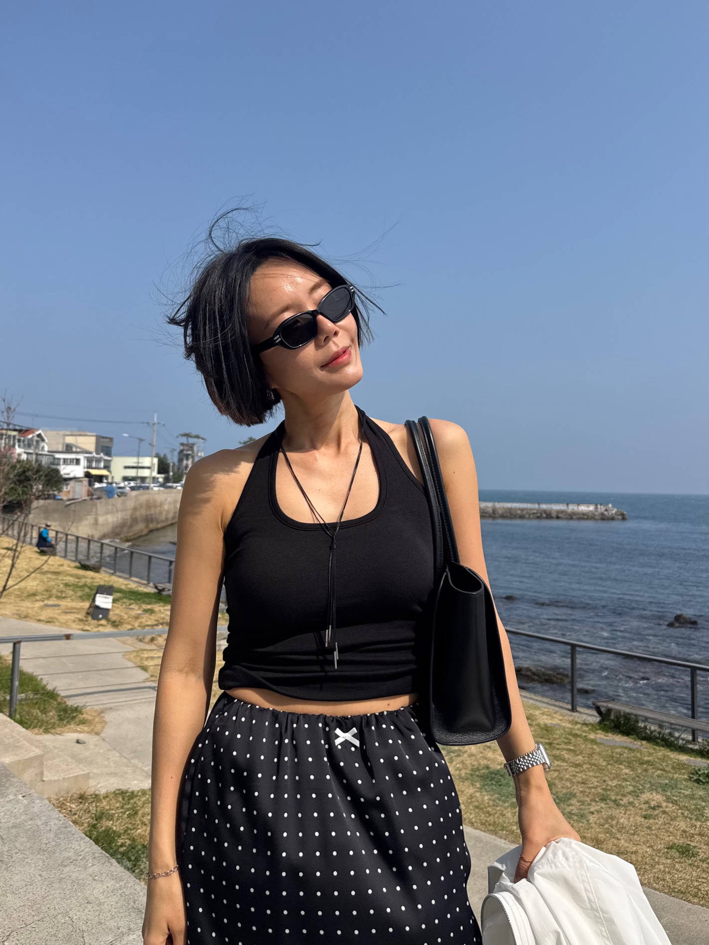 단독으로 입기 좋은 브라캡 홀터넥 나시예요