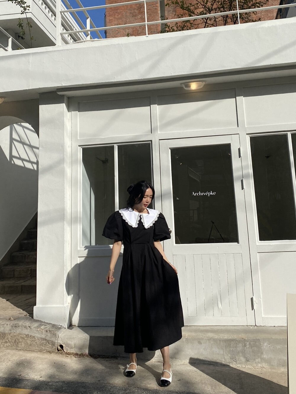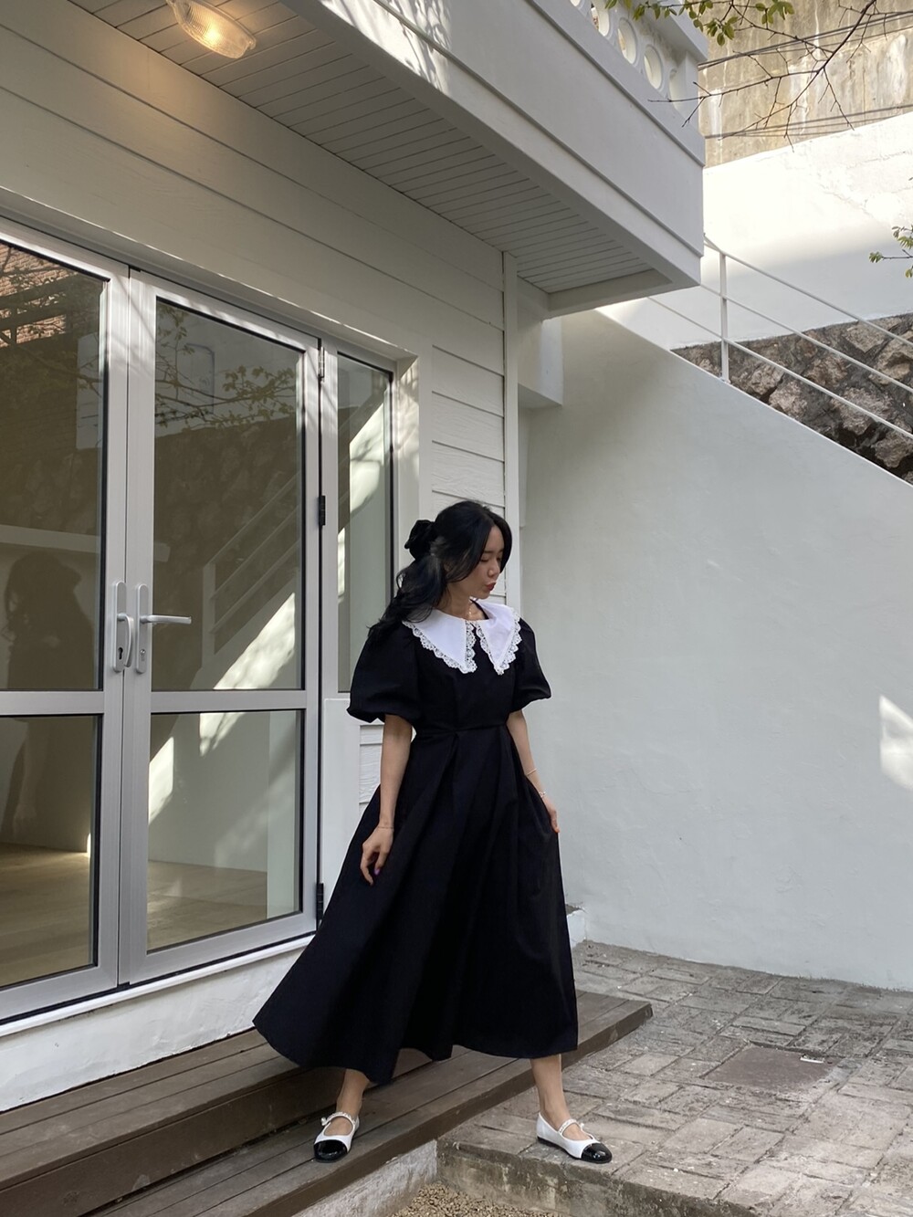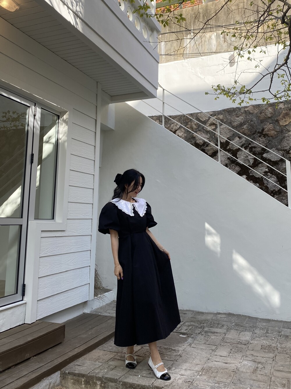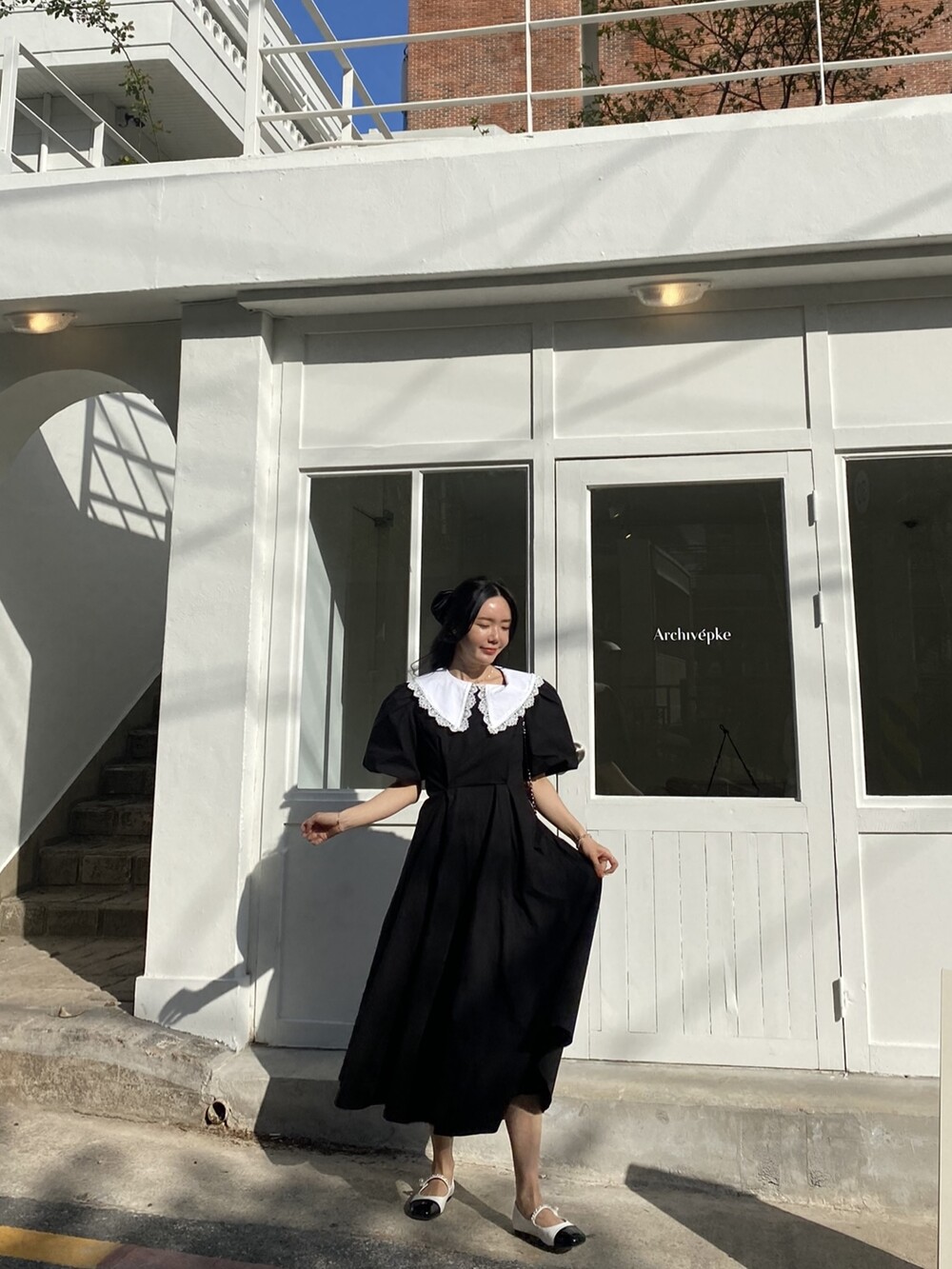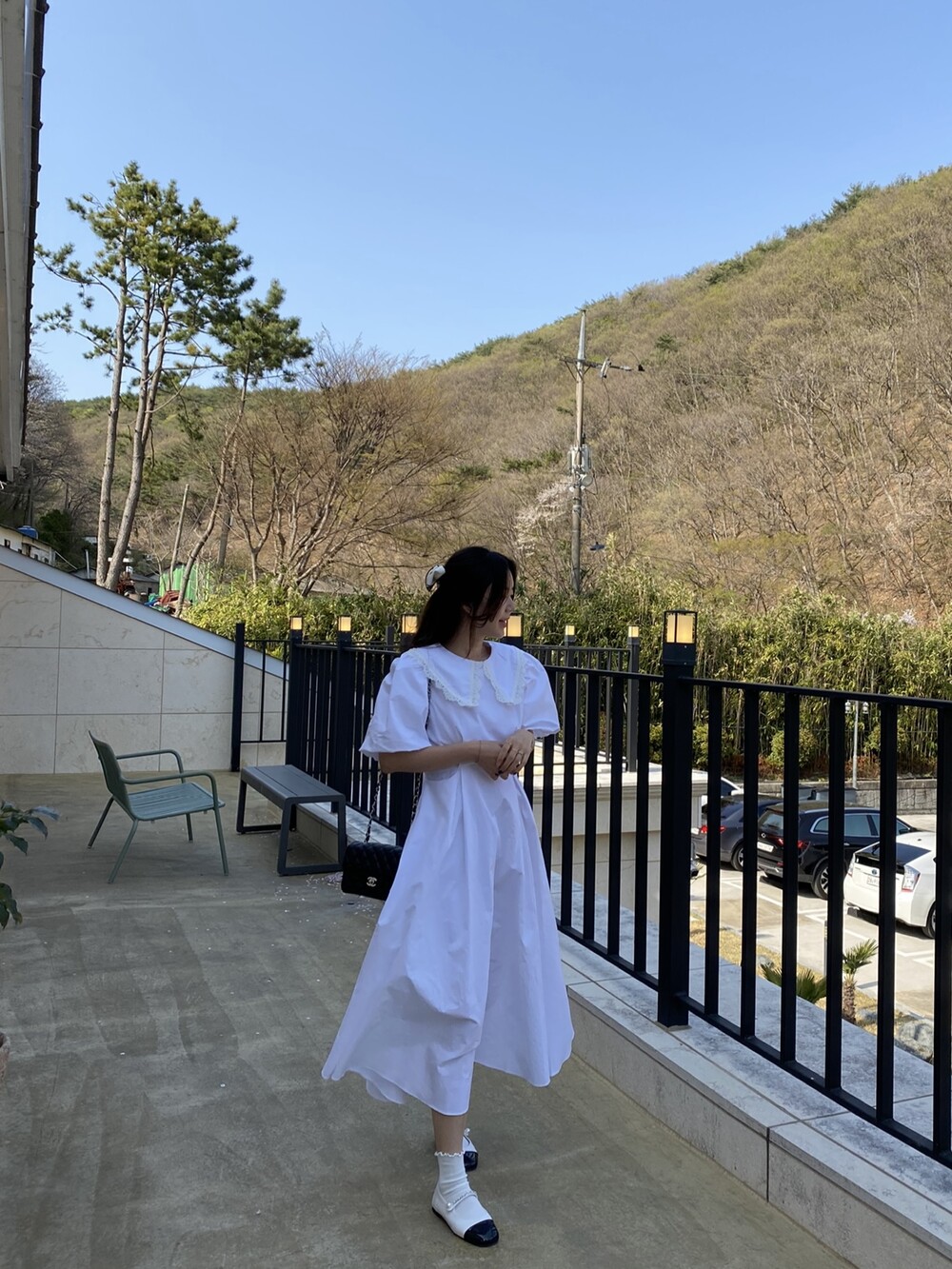큼지막한 카라가 사랑스러운 벌룬 원피스예요