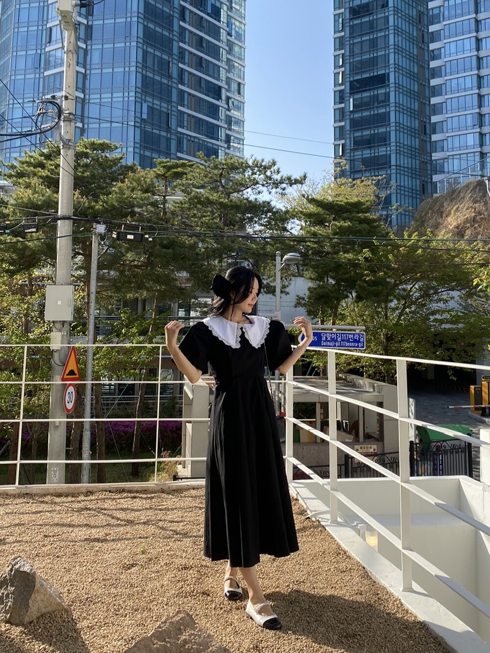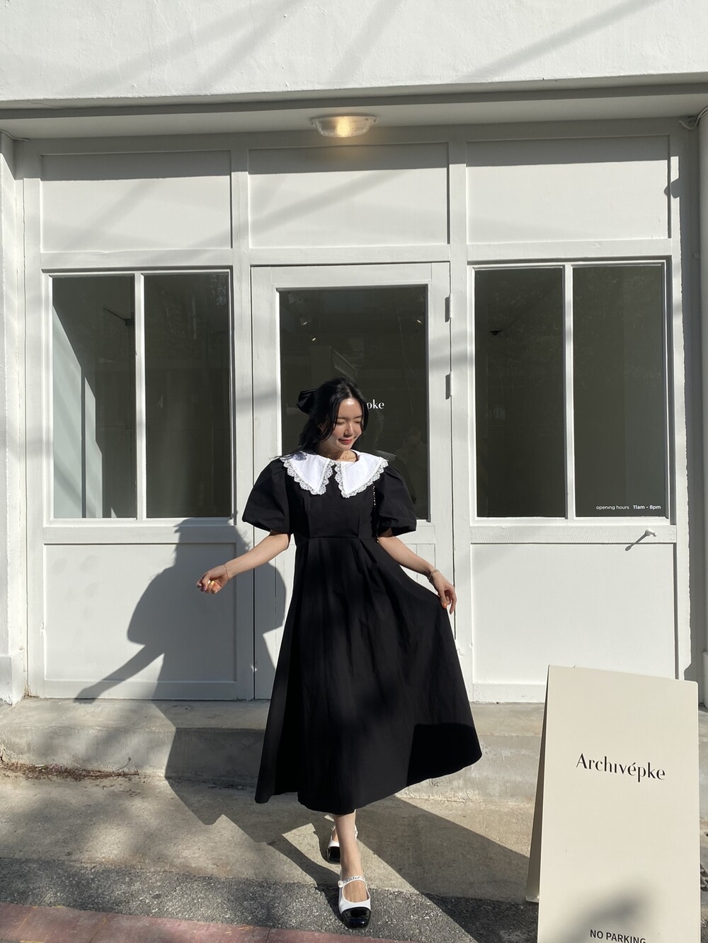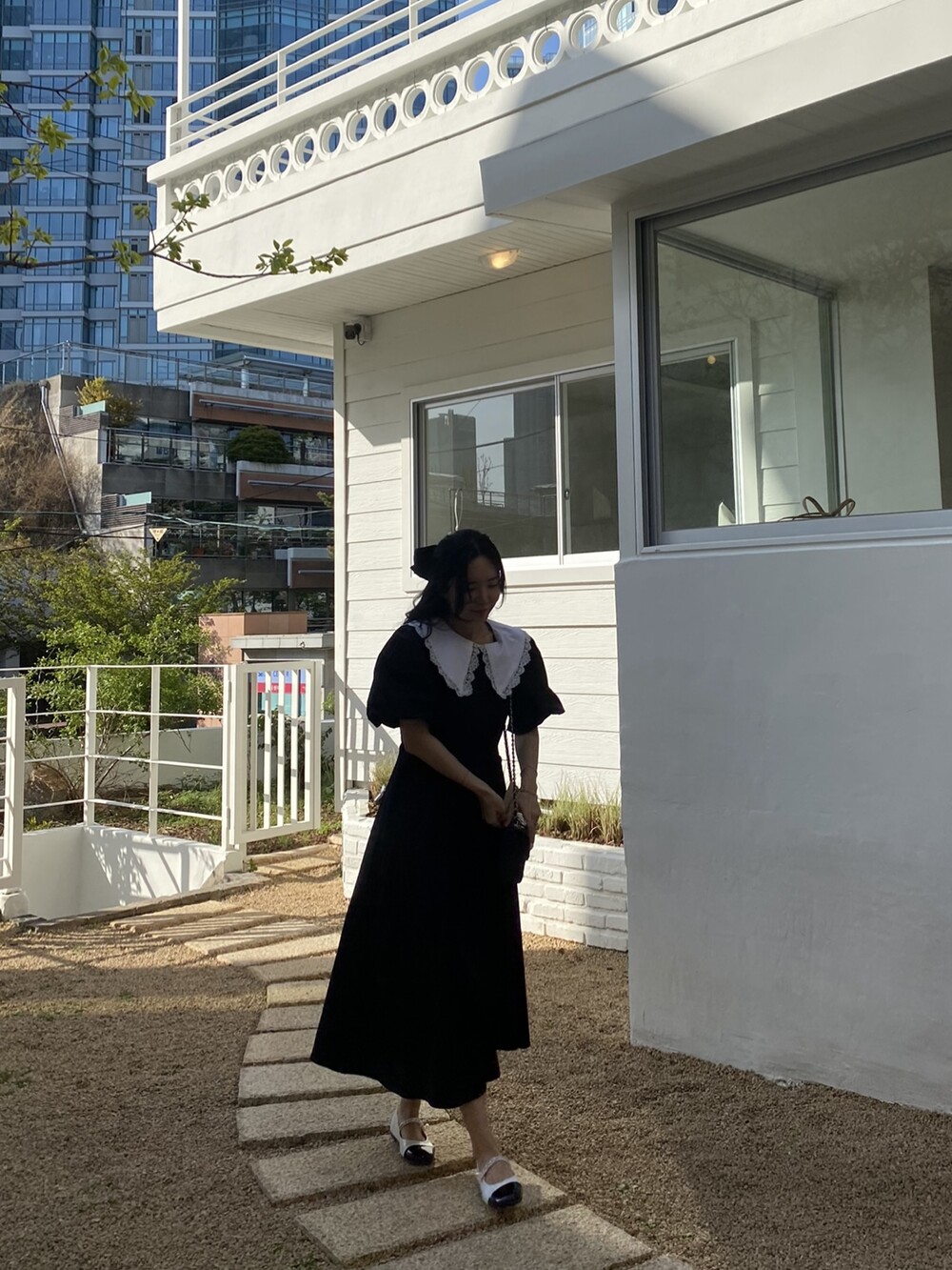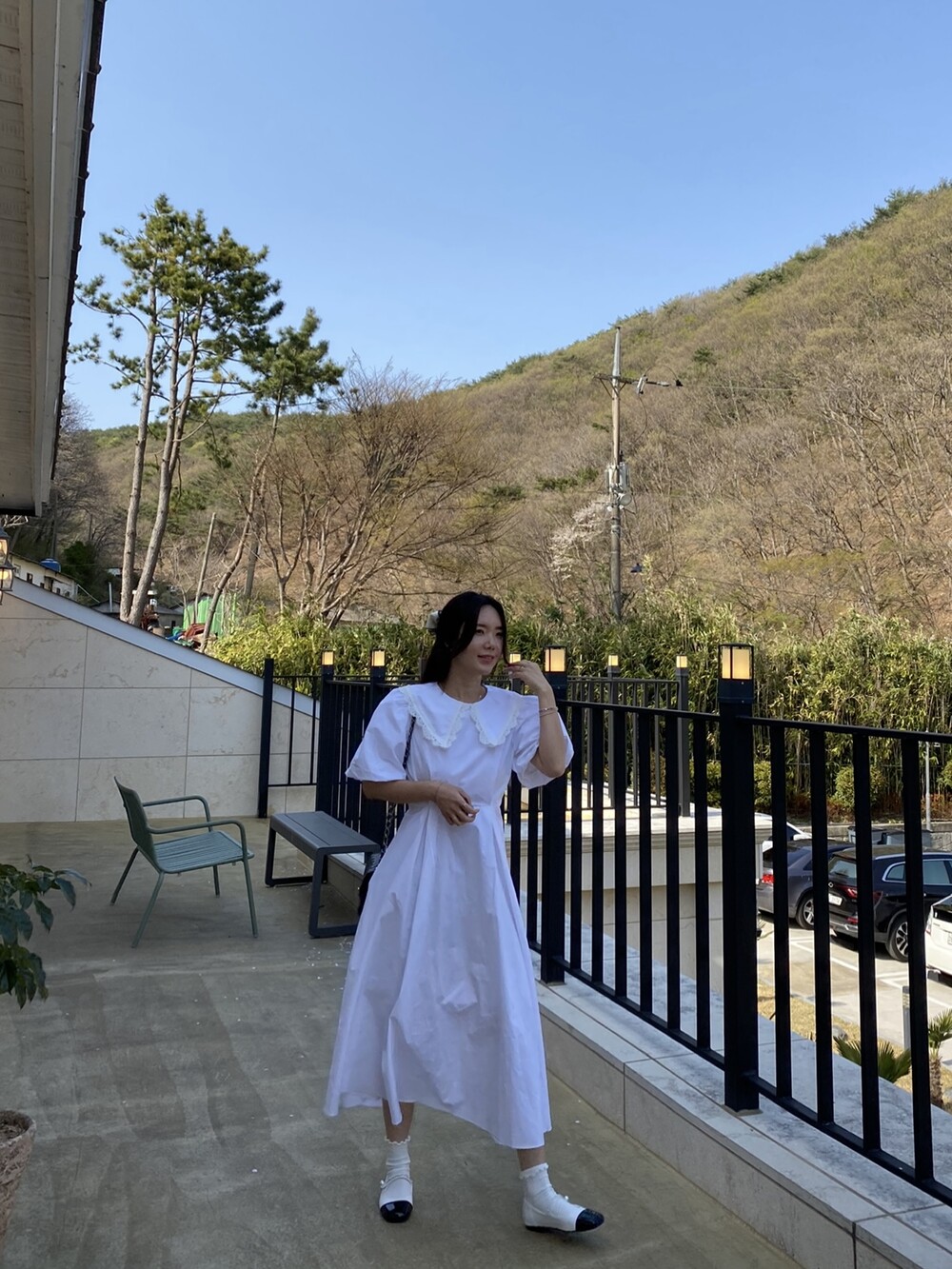큼지막한 카라가 사랑스러운 벌룬 원피스예요