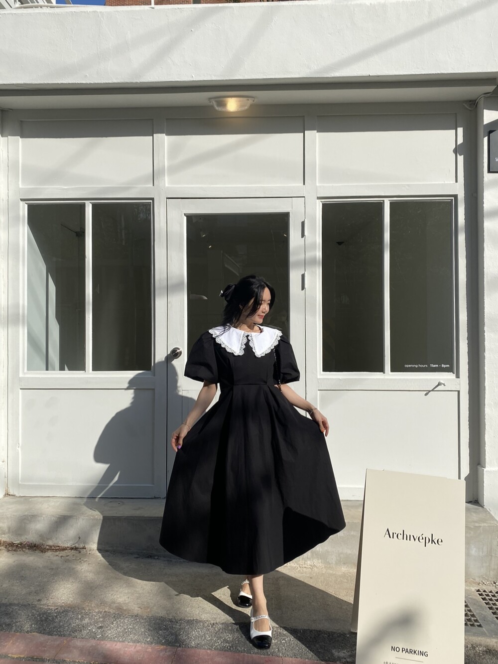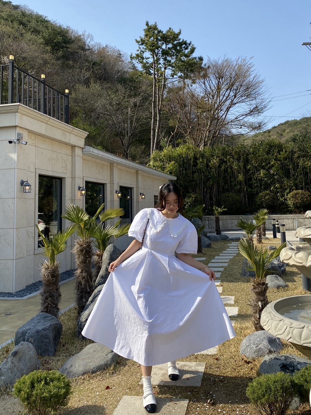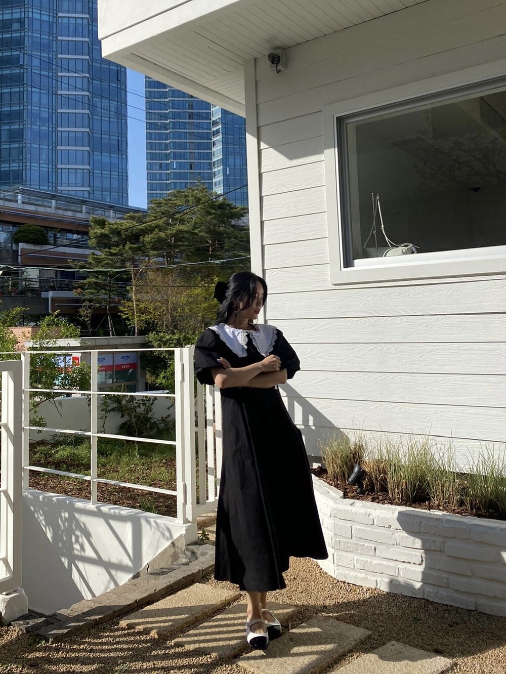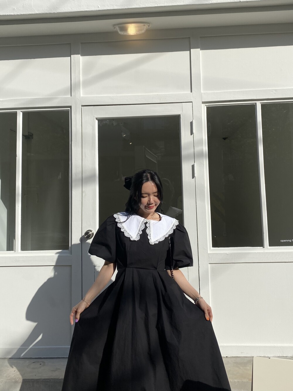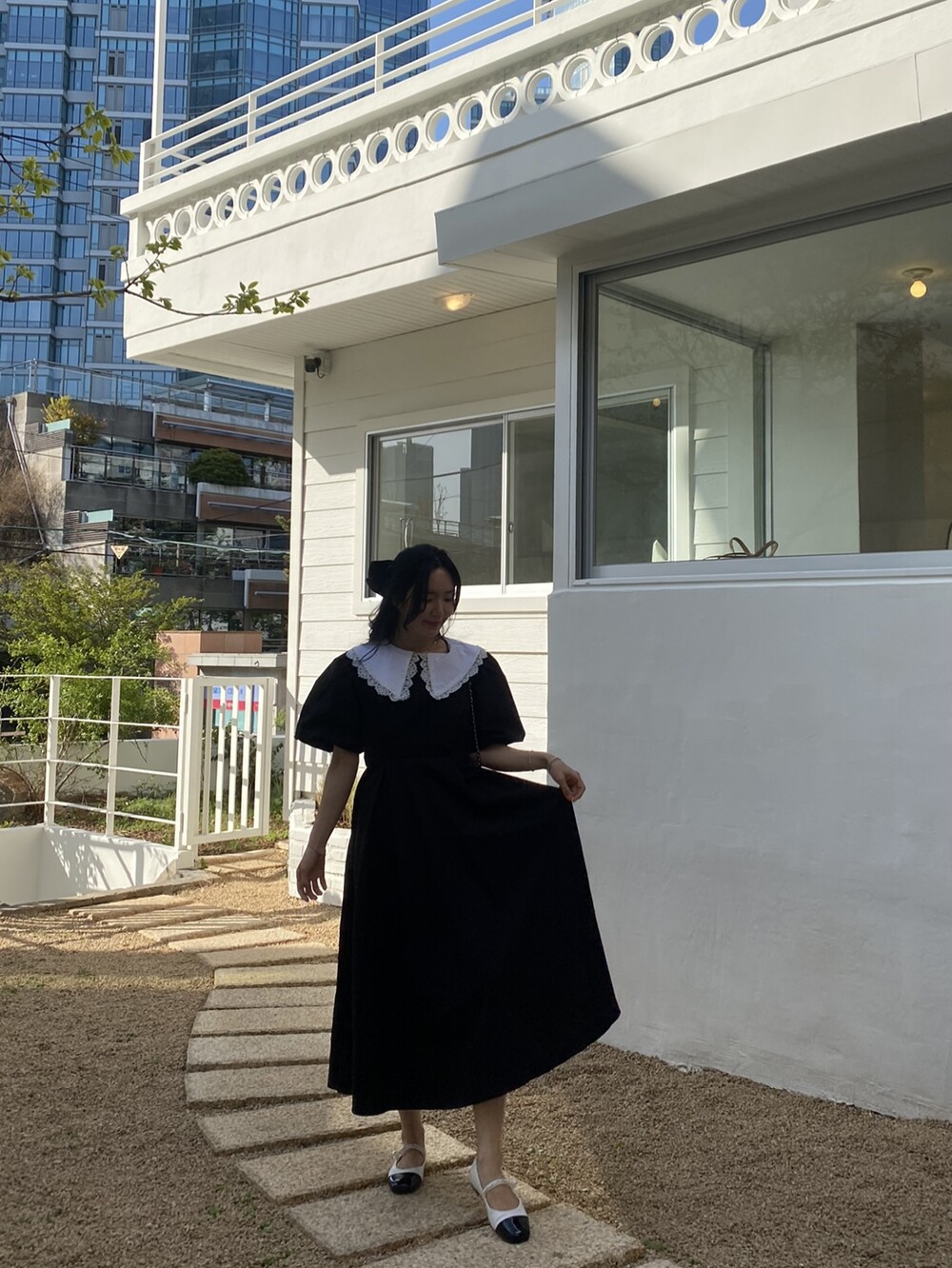 큼지막한 카라가 사랑스러운 벌룬 원피스예요
