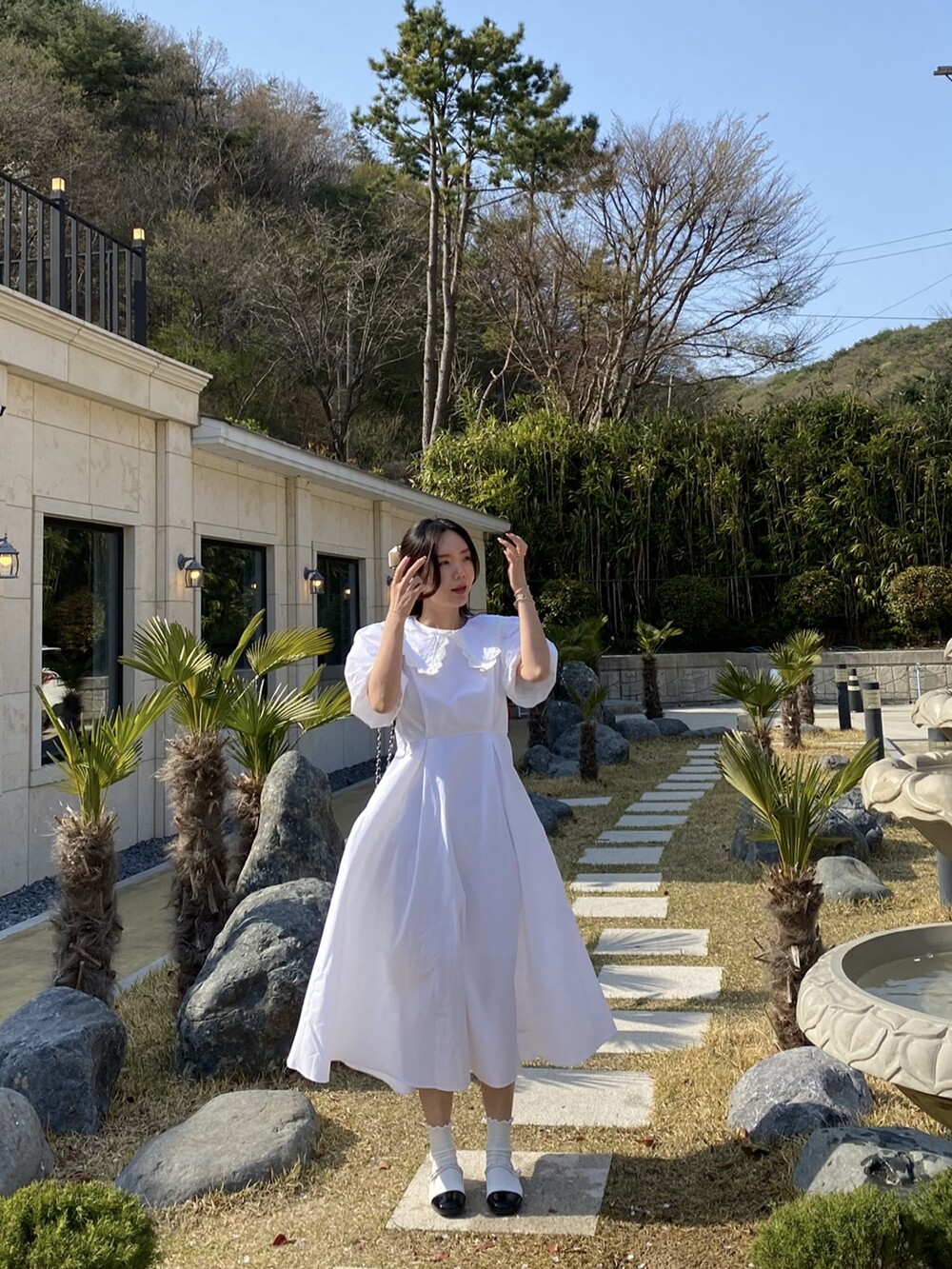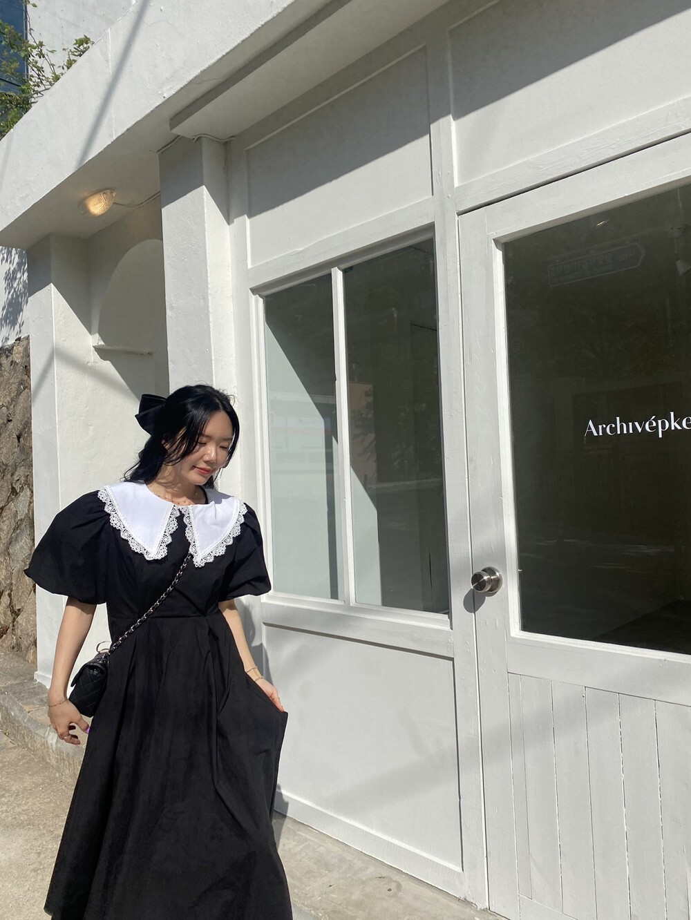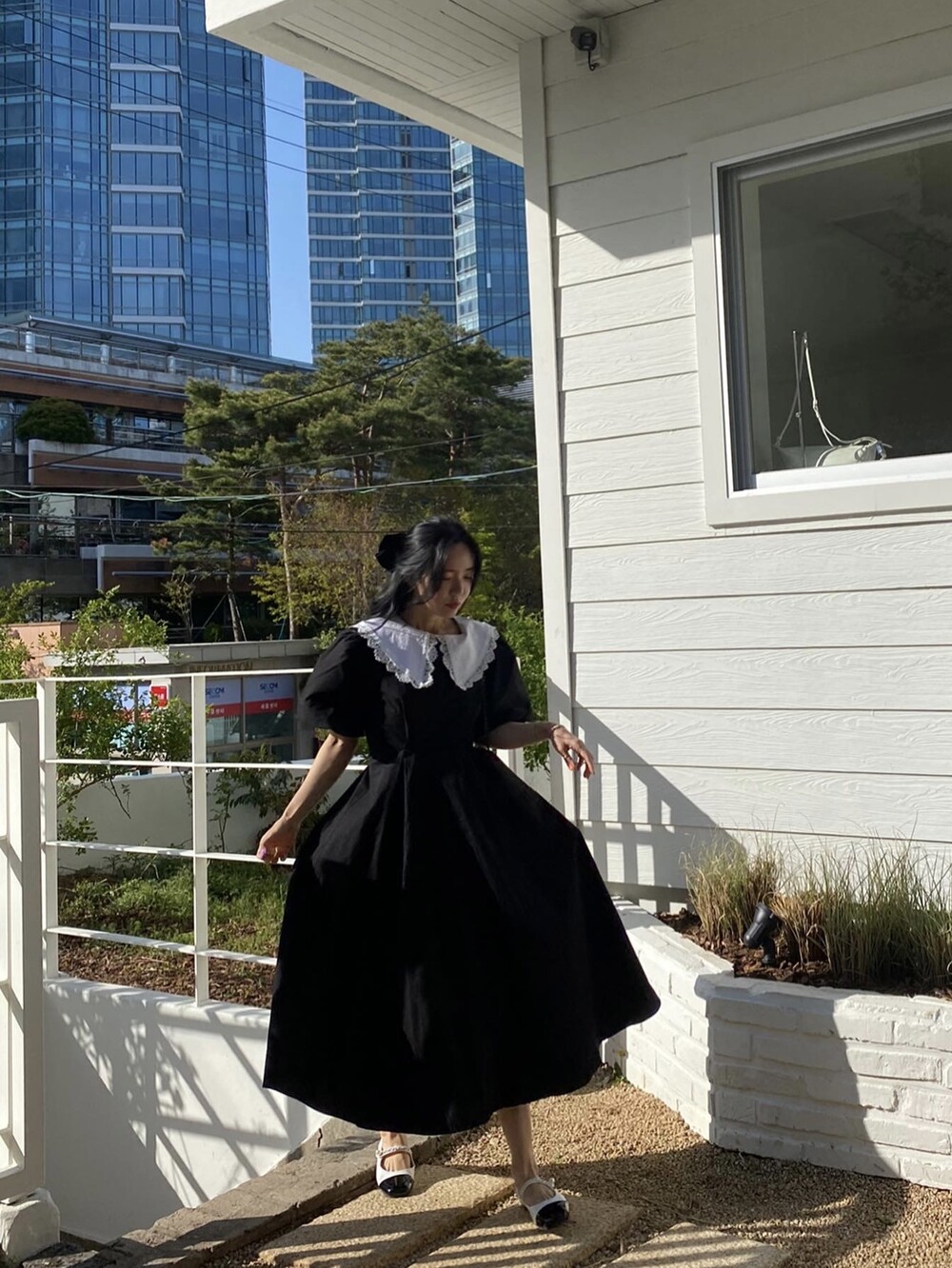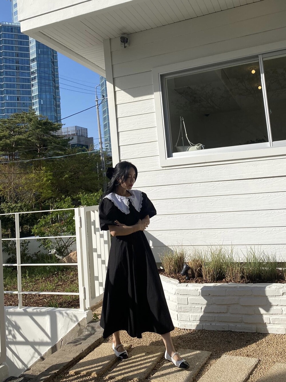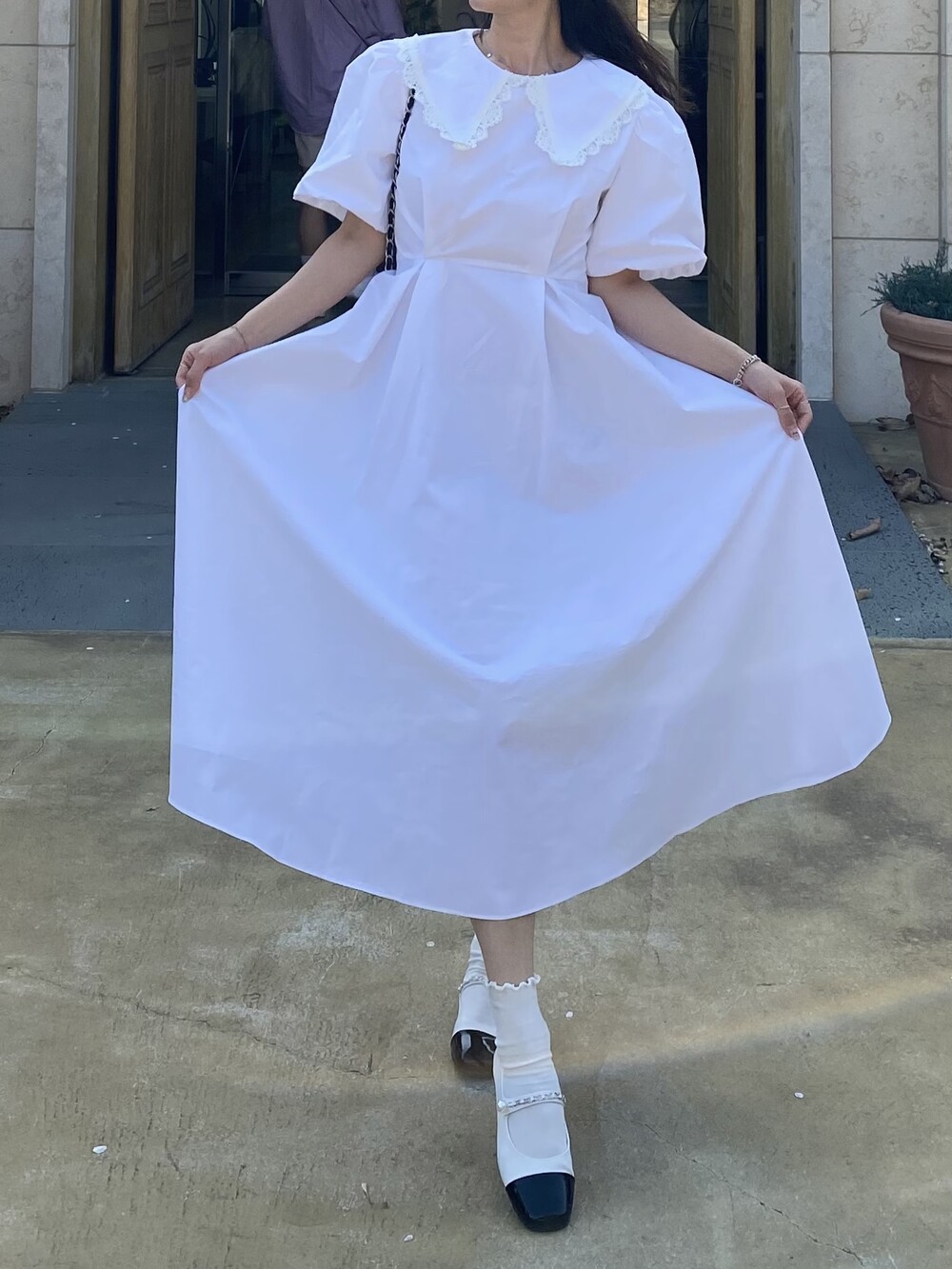 큼지막한 카라가 사랑스러운 벌룬 원피스예요