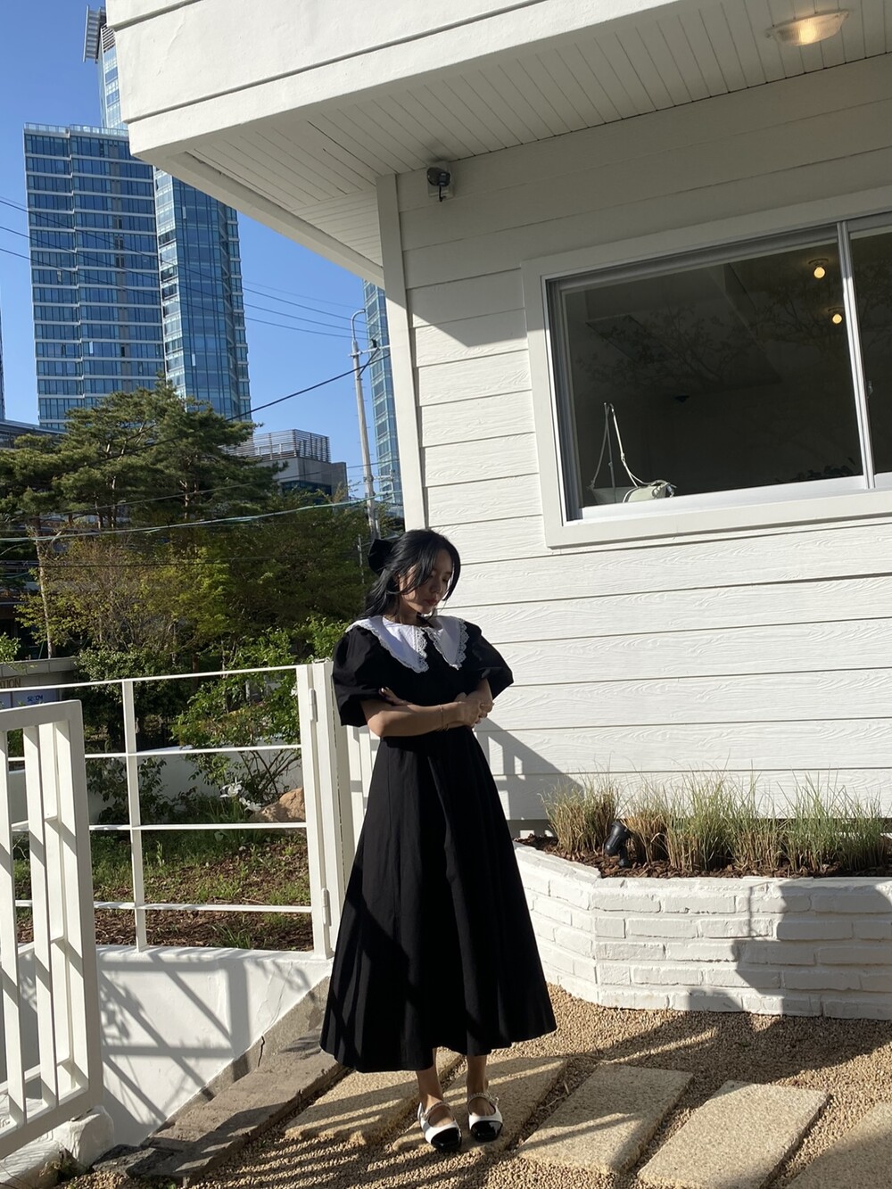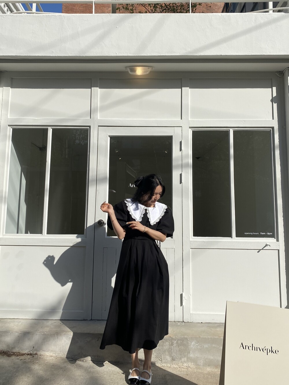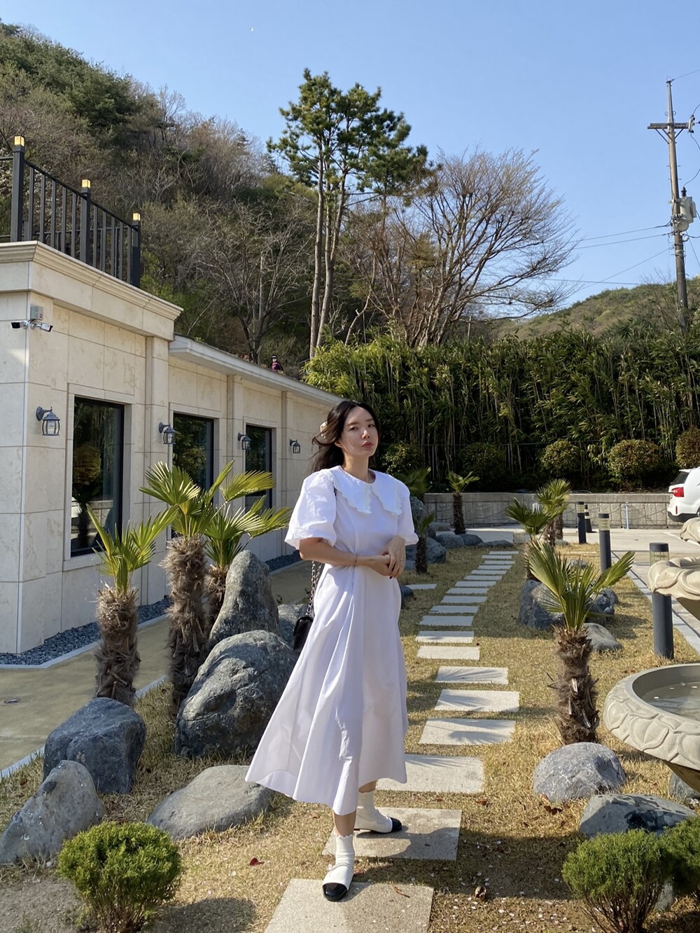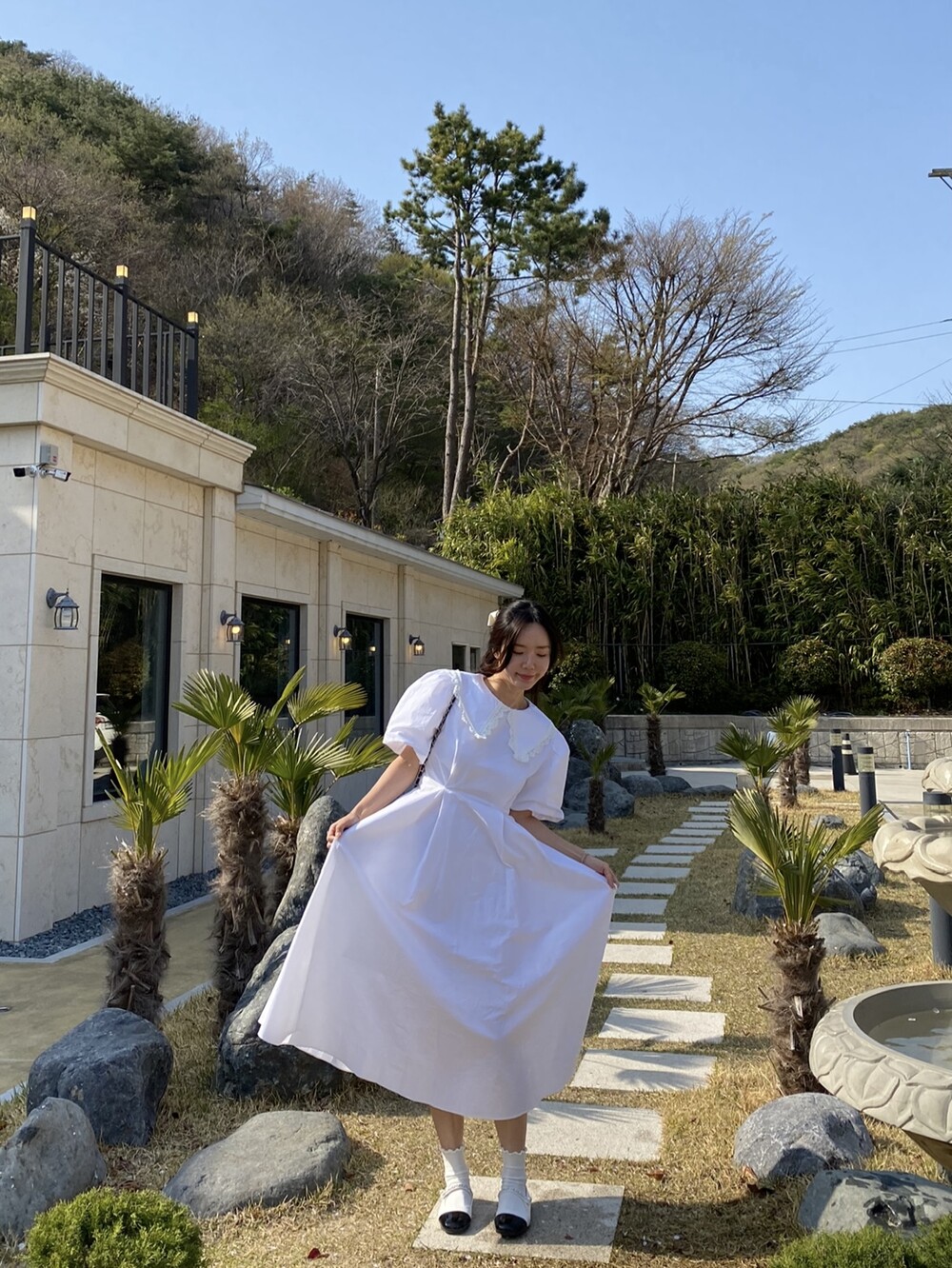 큼지막한 카라가 사랑스러운 벌룬 원피스예요