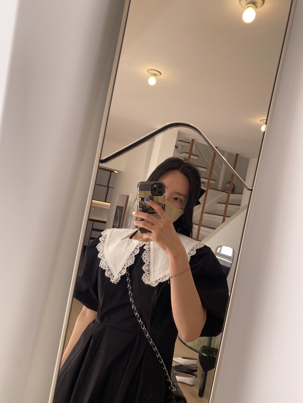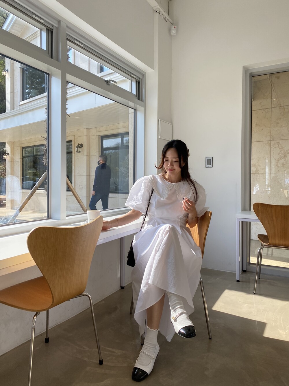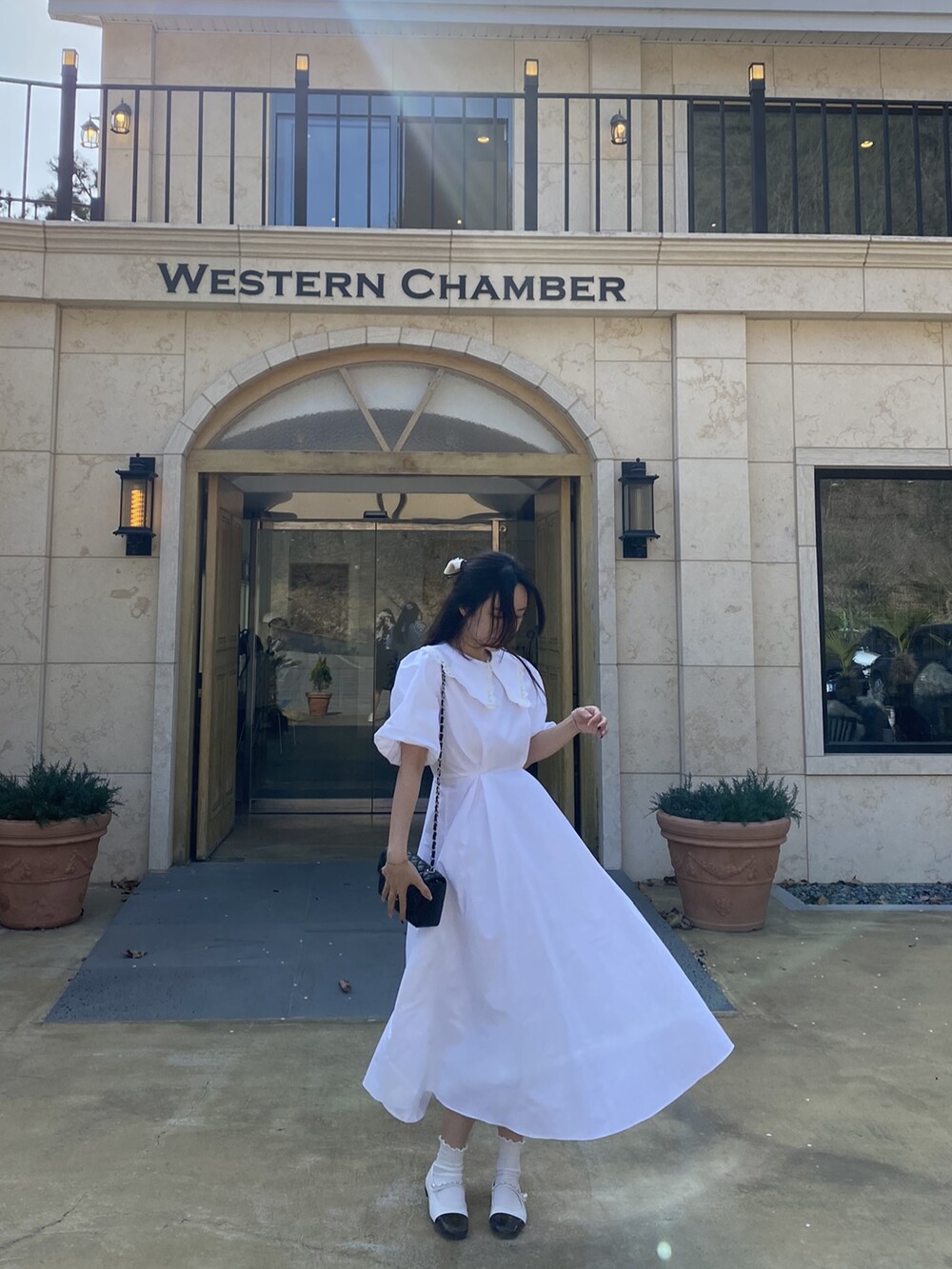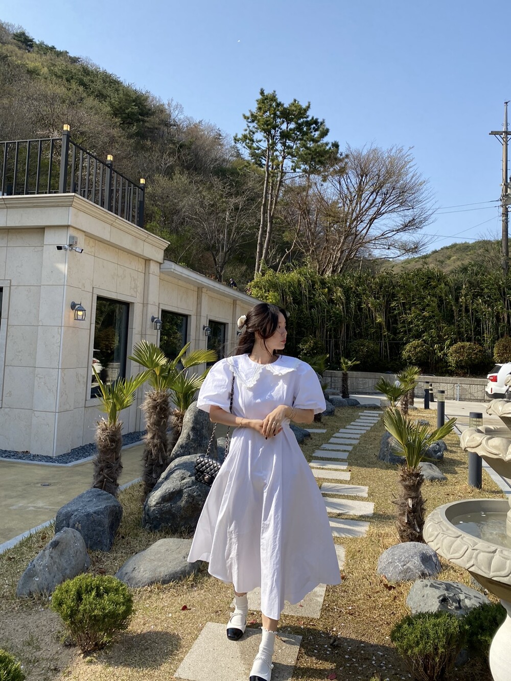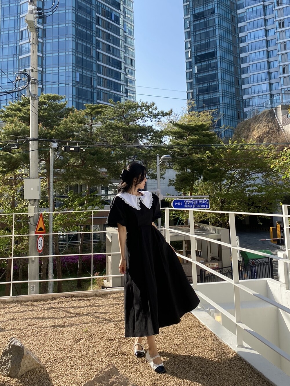 큼지막한 카라가 사랑스러운 벌룬 원피스예요