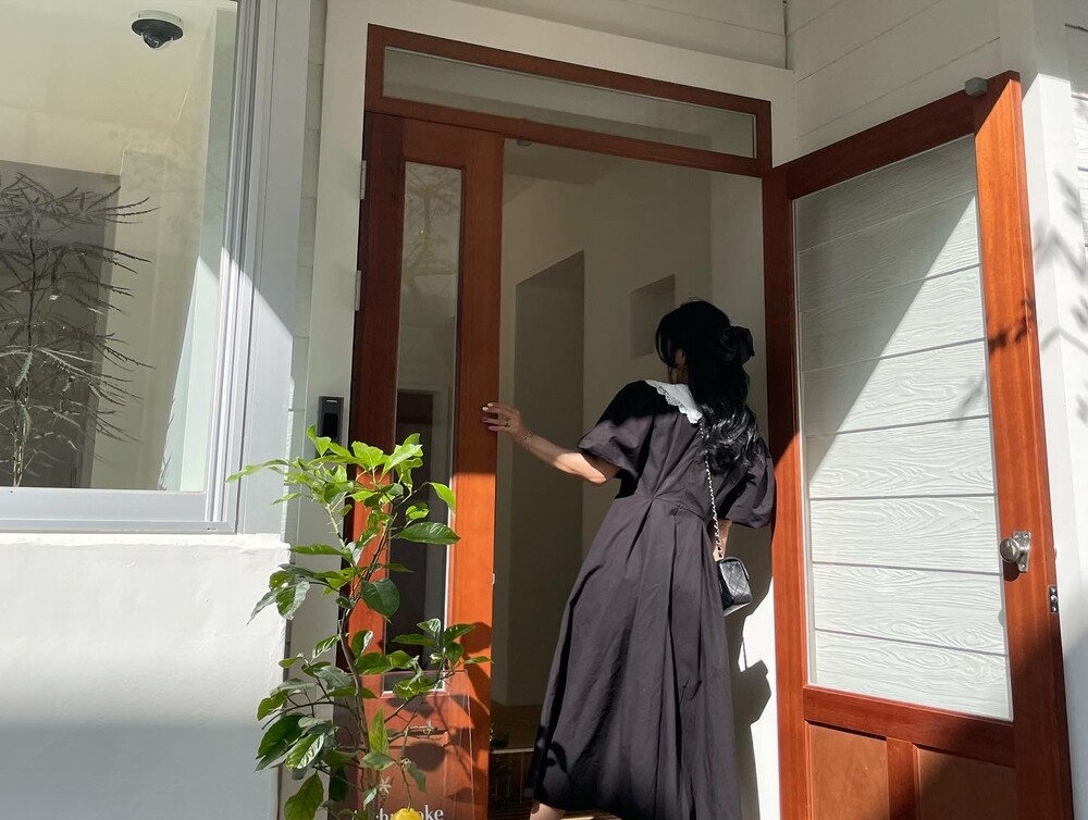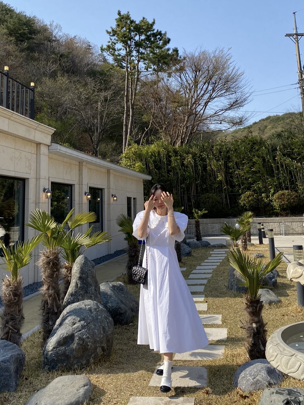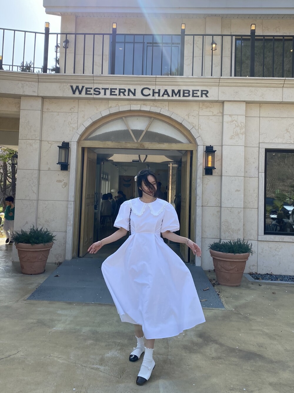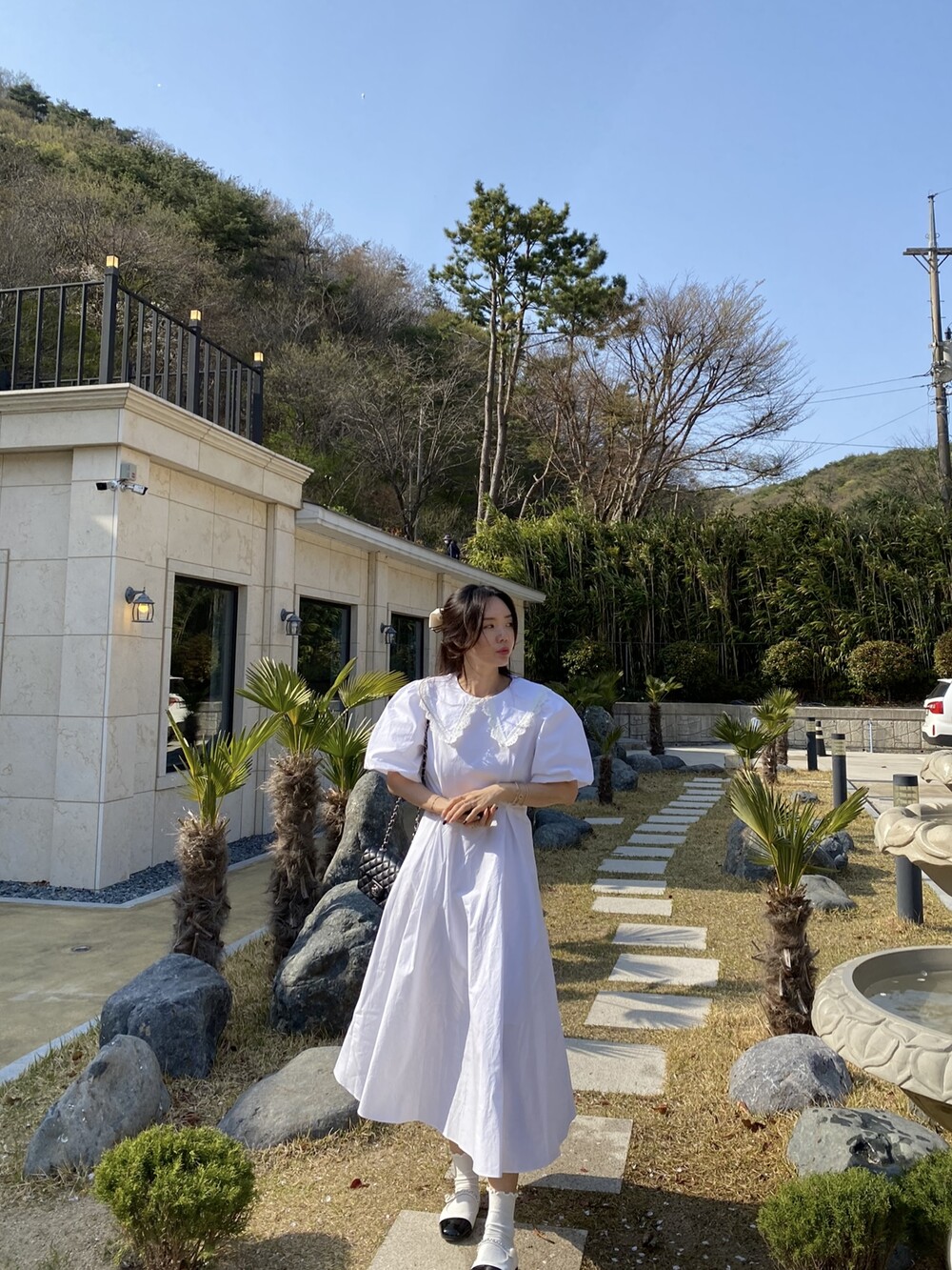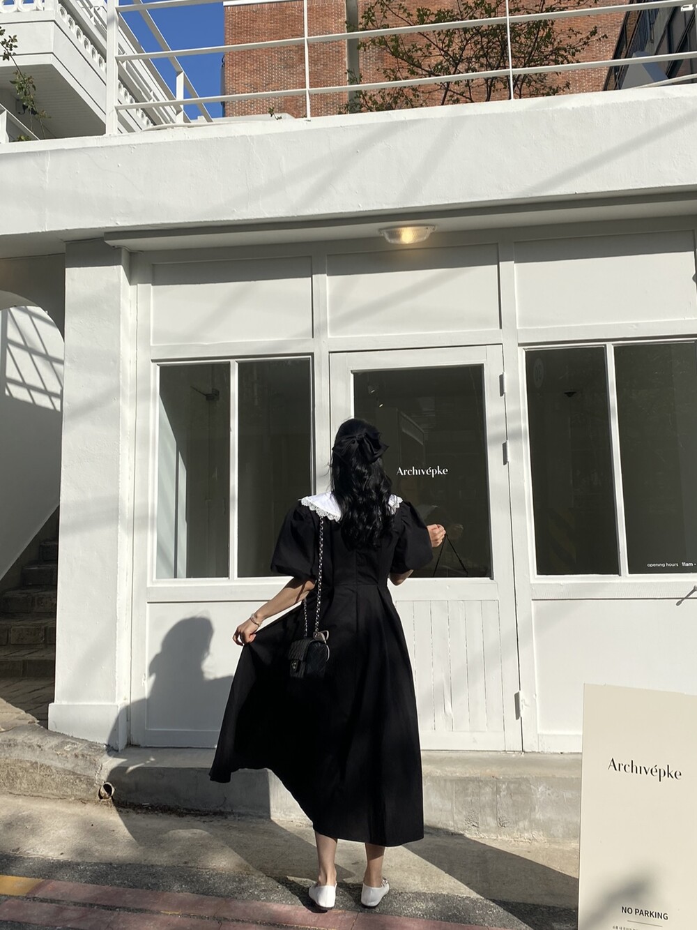 큼지막한 카라가 사랑스러운 벌룬 원피스예요