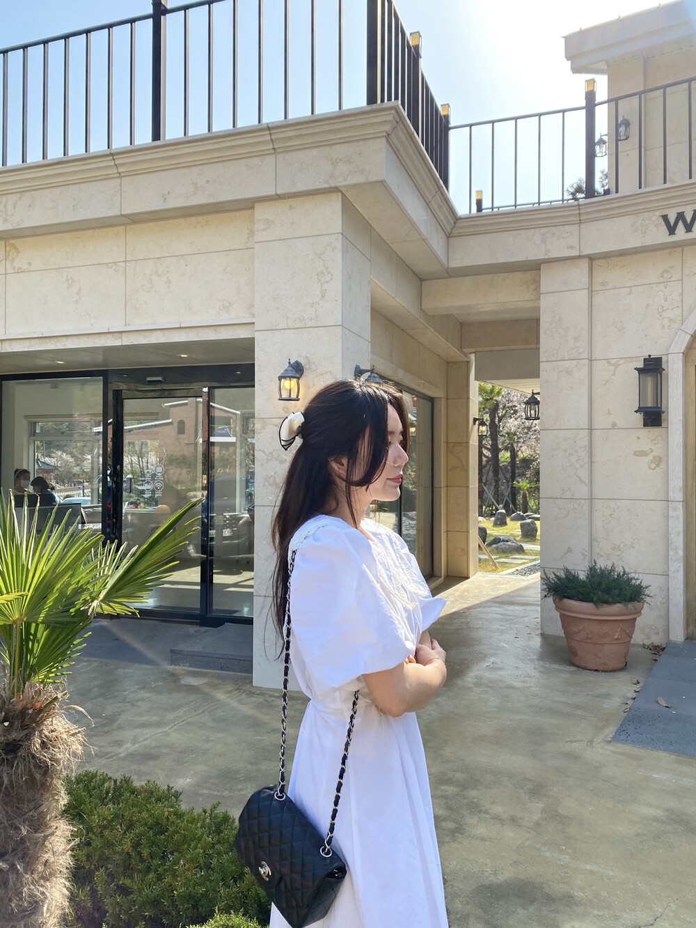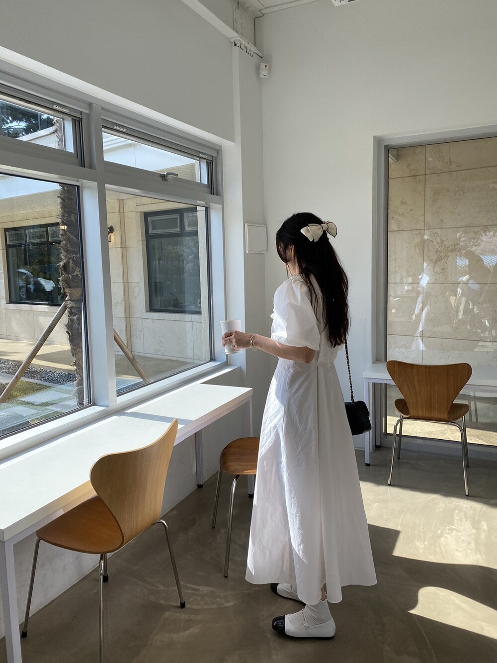 부풀어 있는 퍼프 소매가 어깨라인을 잡아주면서