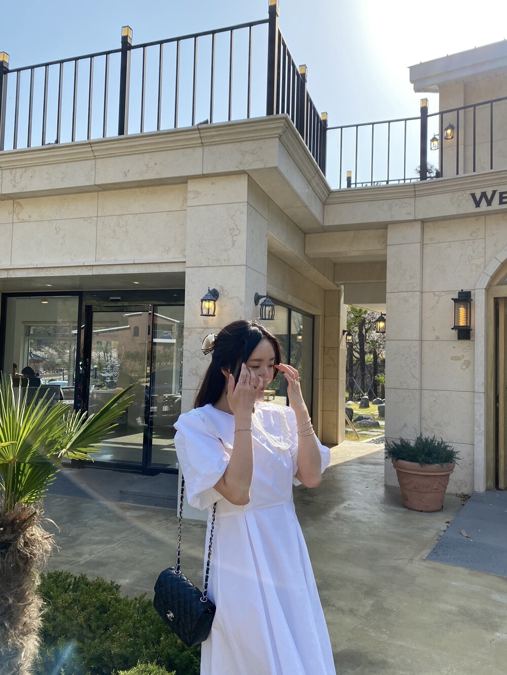 큼지막한 카라와 레이스 마감으로 완성도를 높었으며