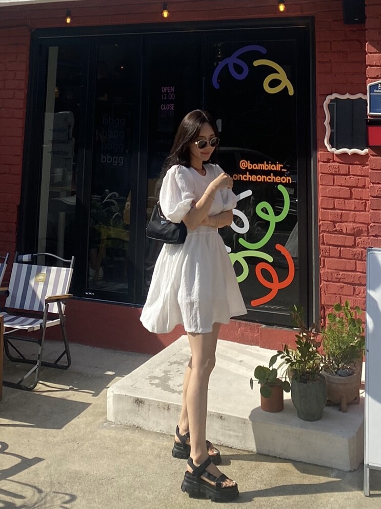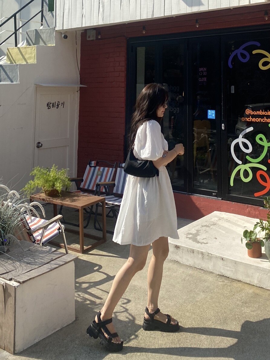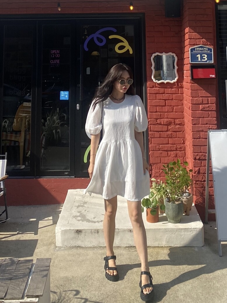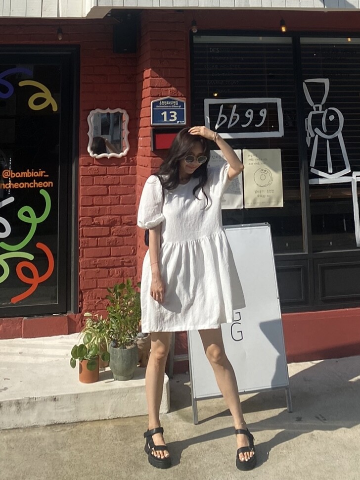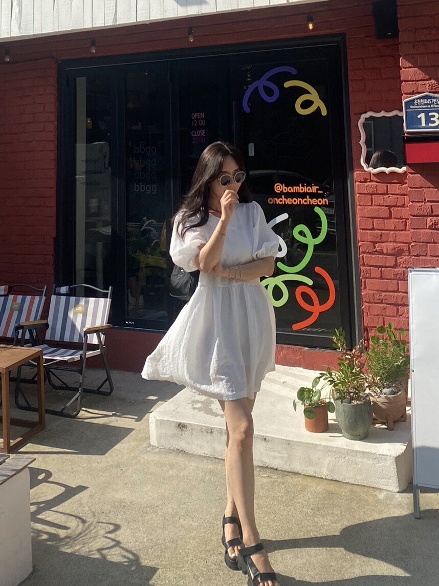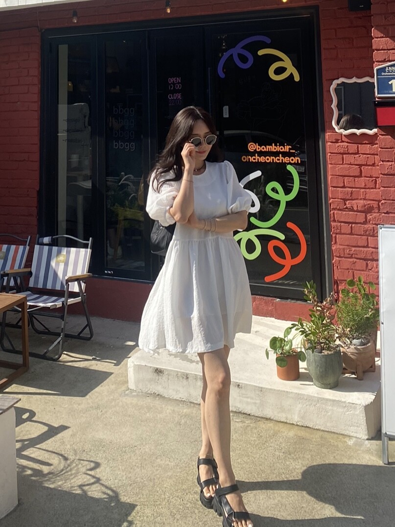 퍼프 소매 디자인에 A라인으로 퍼지는