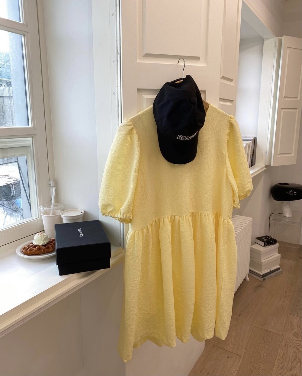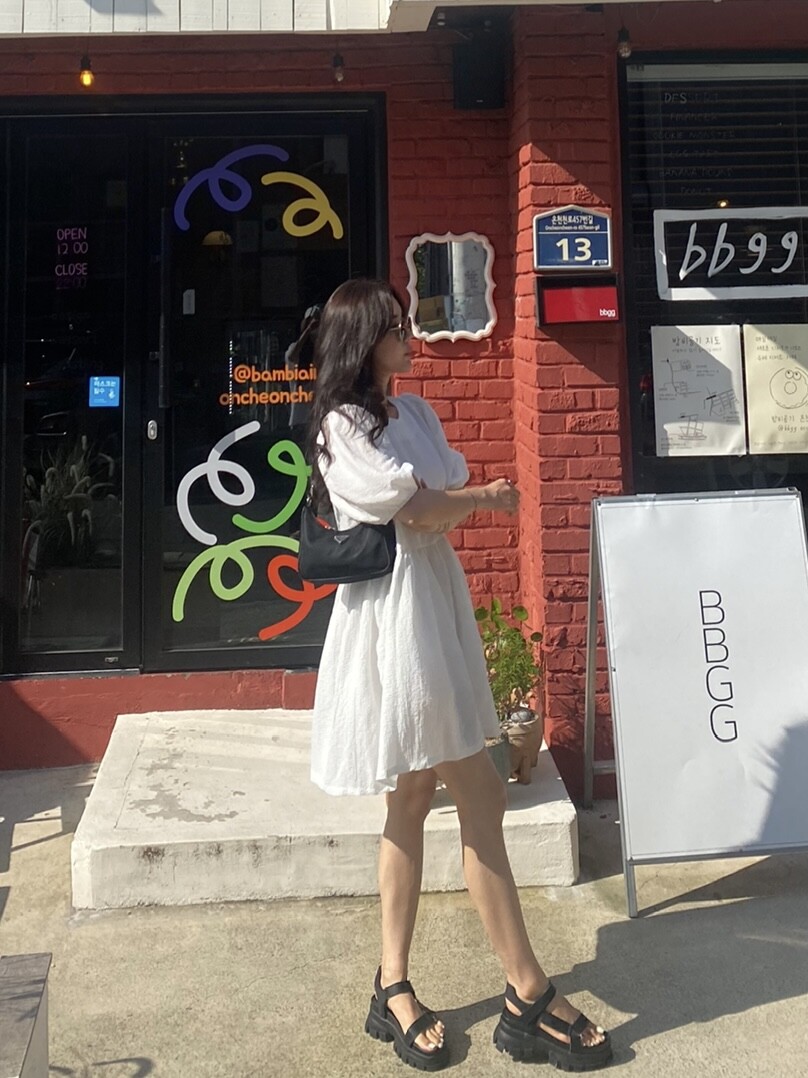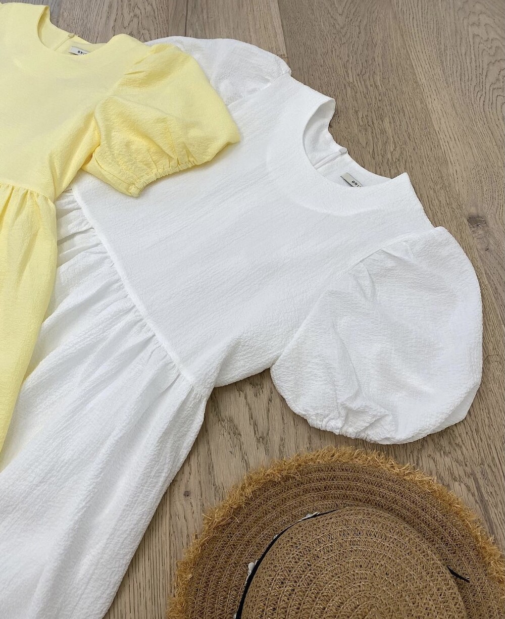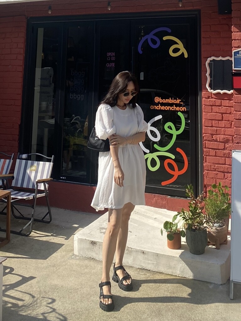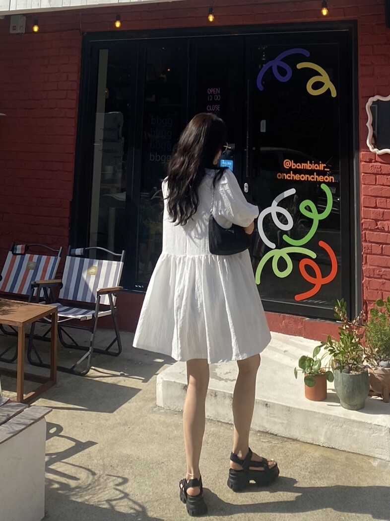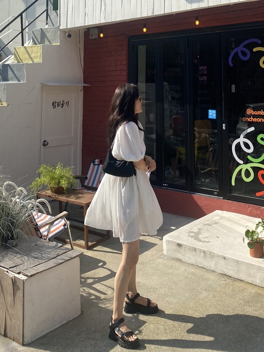 퍼프 소매 디자인에 A라인으로 퍼지는