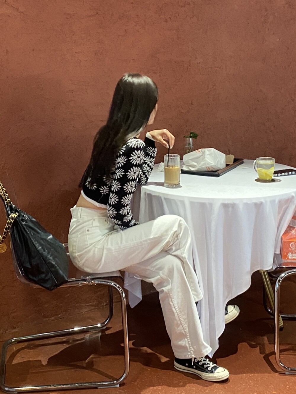 특징: 신축성 O , 비침 X, 안감 X , 두께감 보통, 무게감 보통