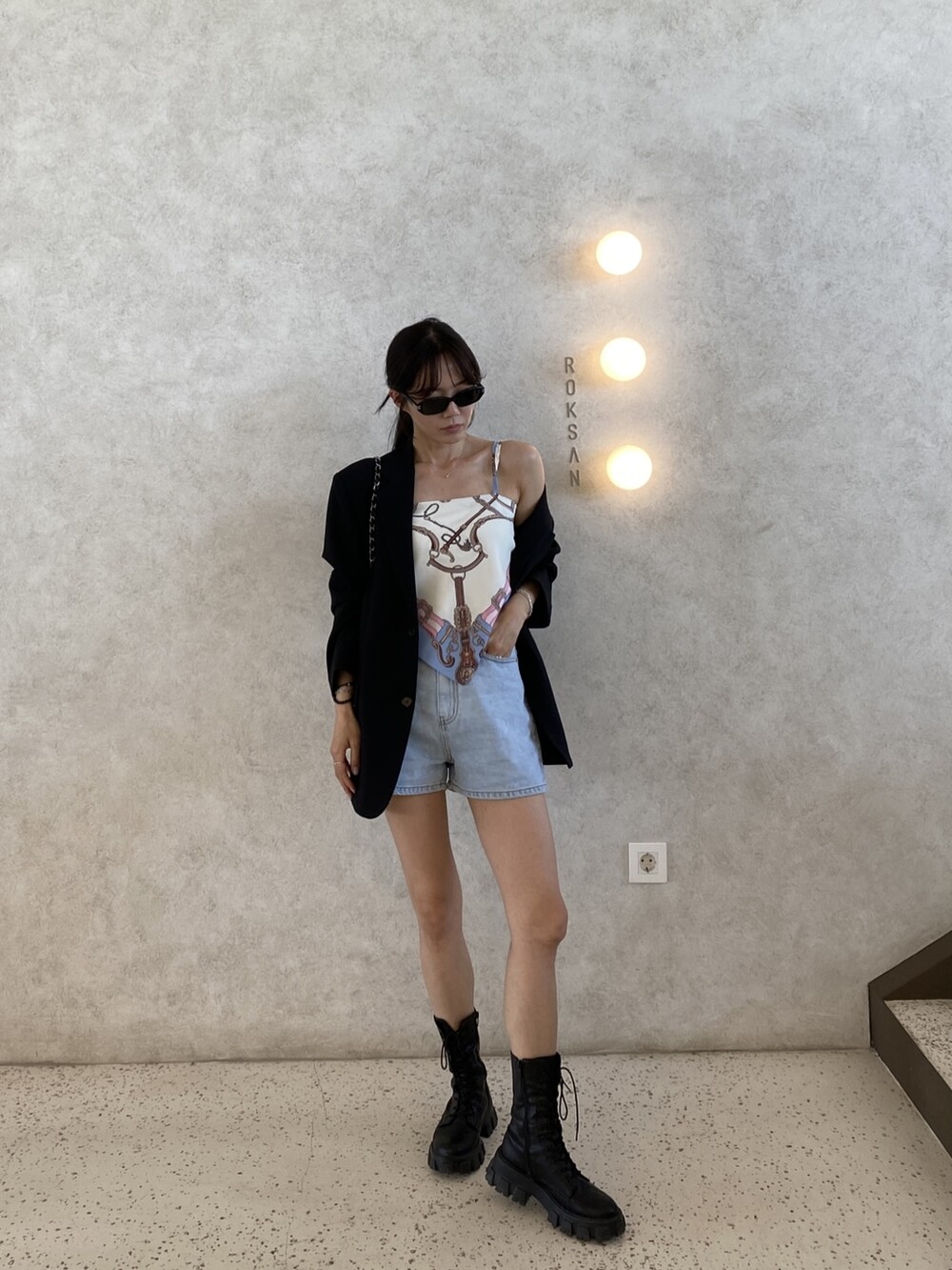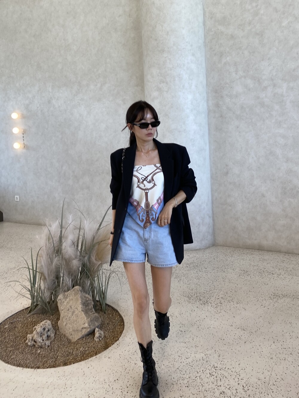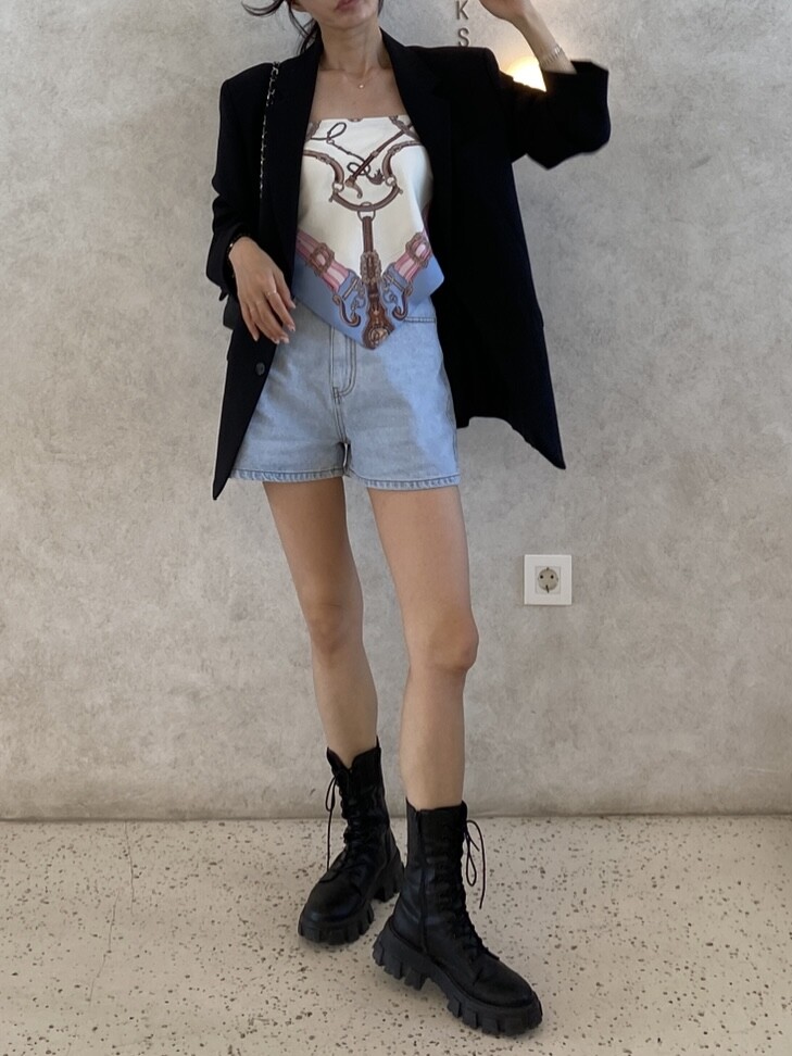 S 허리 32 힙 47 밑위 34 허벅지 31 총장 40