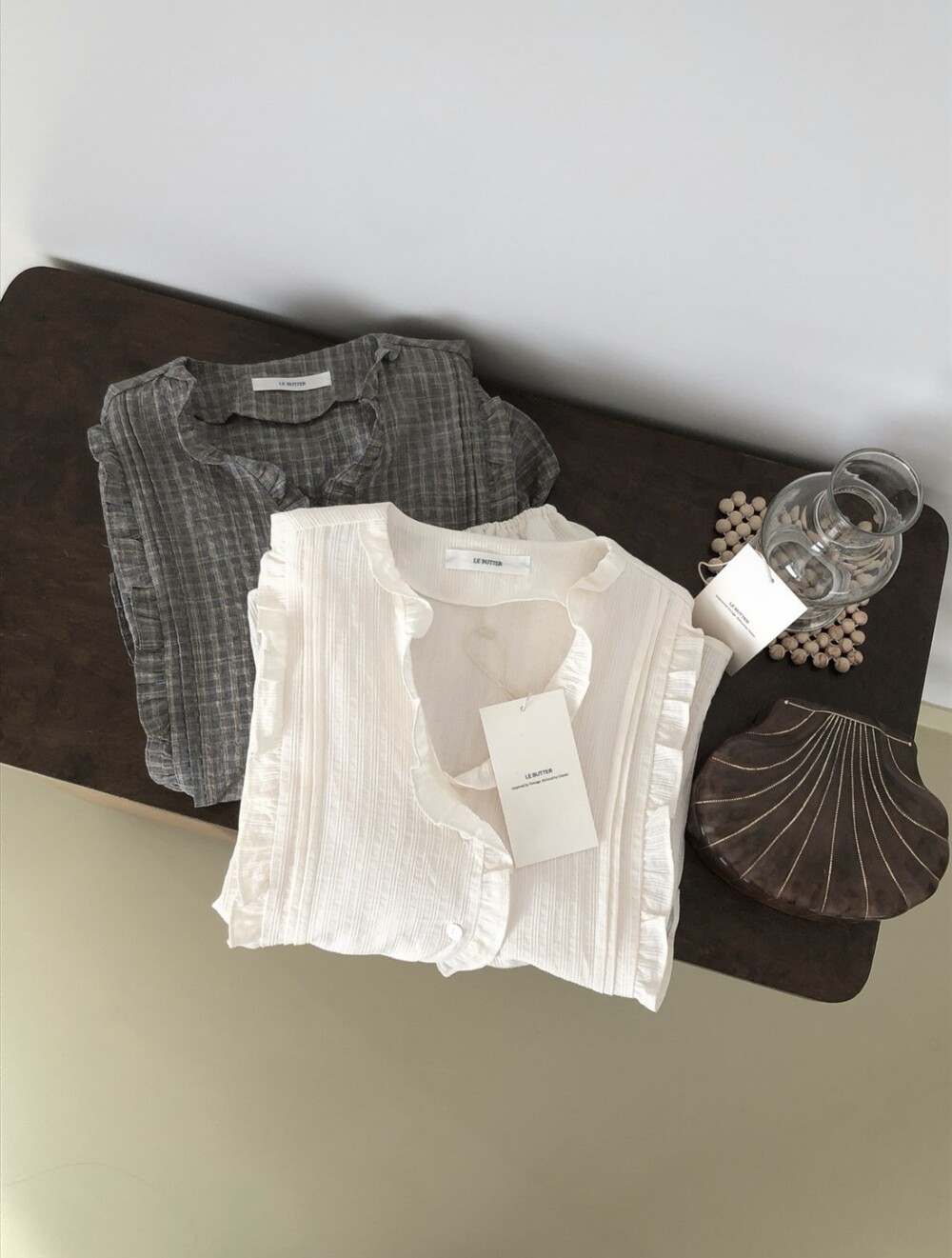 여성스러운 분위기의 제인 프릴 블라우스예요