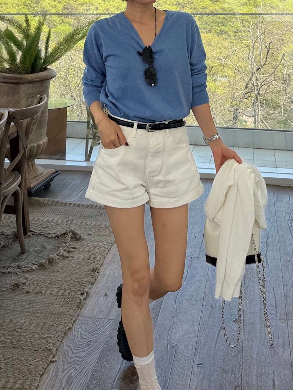 뱀부 브이넥 니트