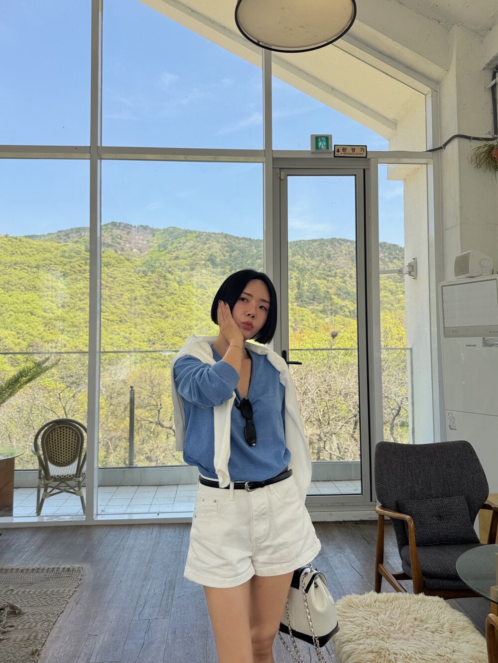 모델: 165cm , 48kg, 55사이즈