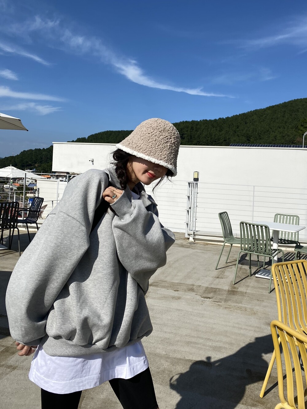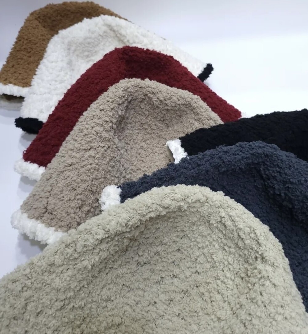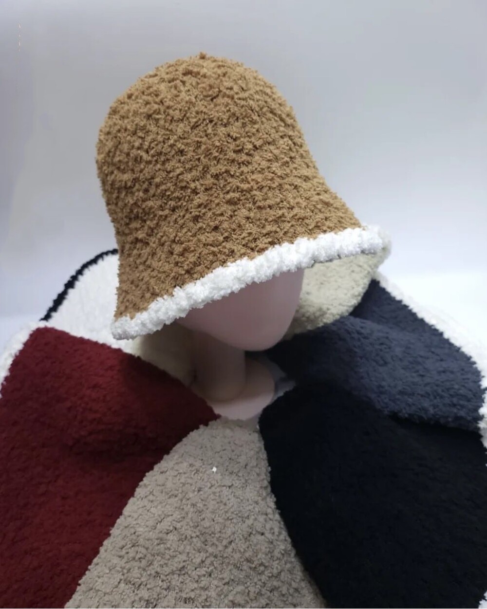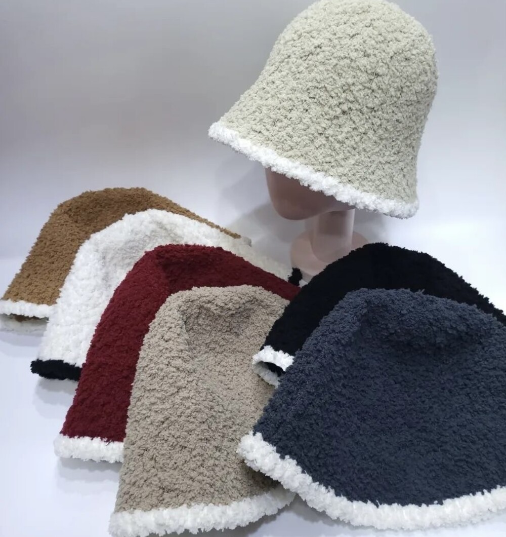 배색 뽀글이 버킷햇이예요