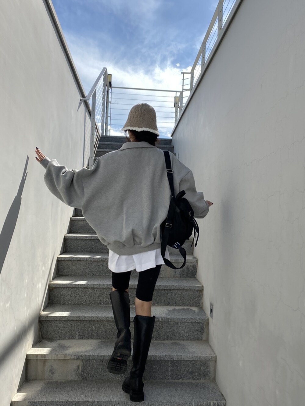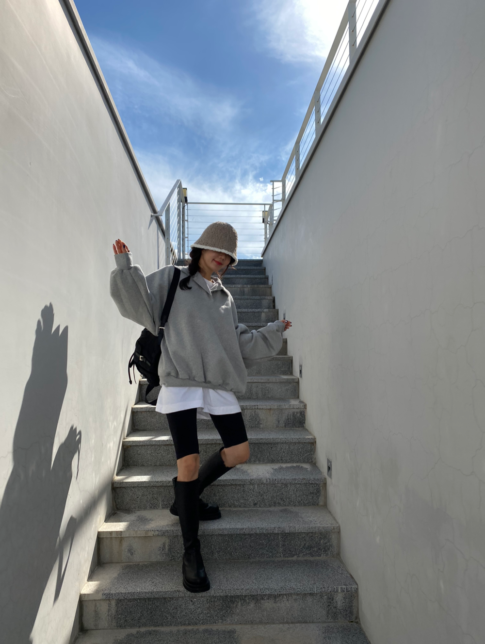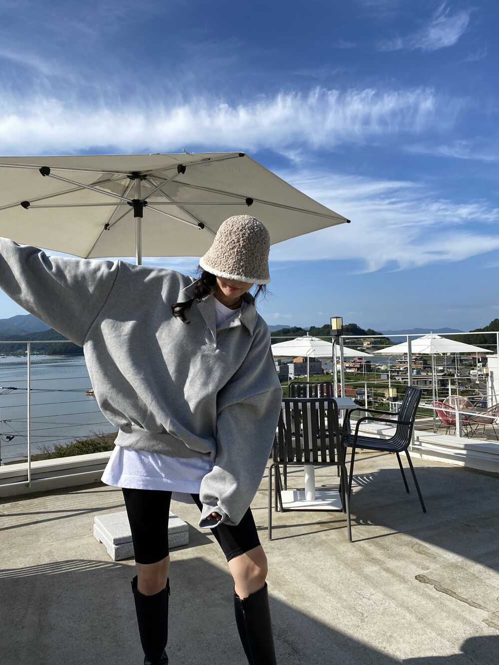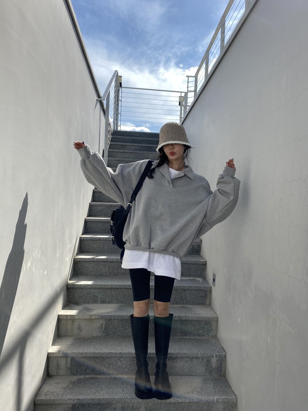 배색 뽀글이 버킷햇이예요