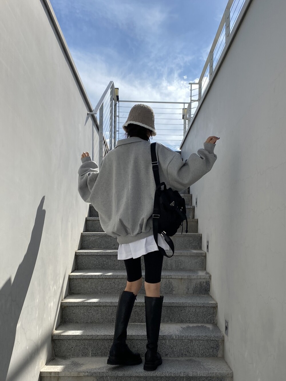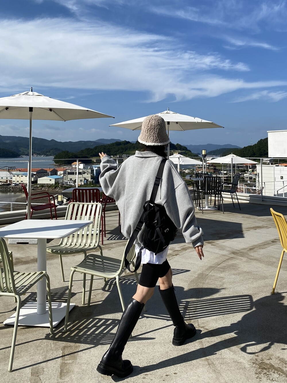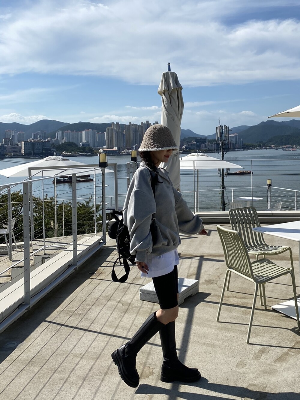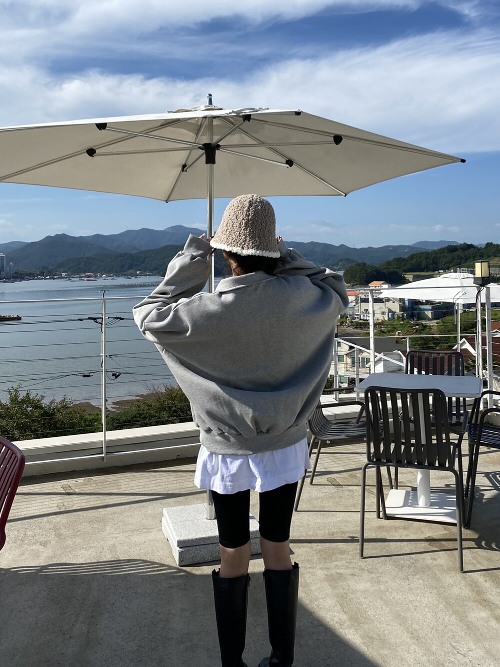 배색 뽀글이 버킷햇이예요
