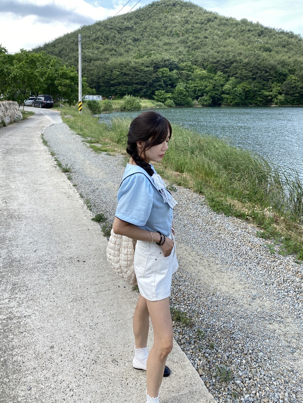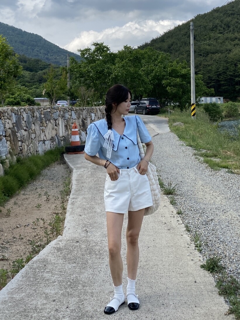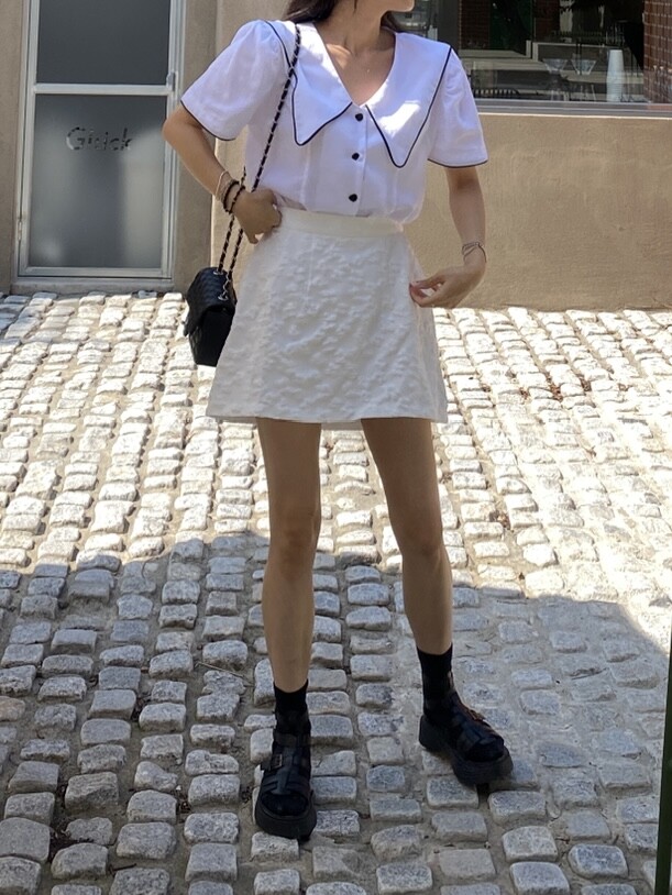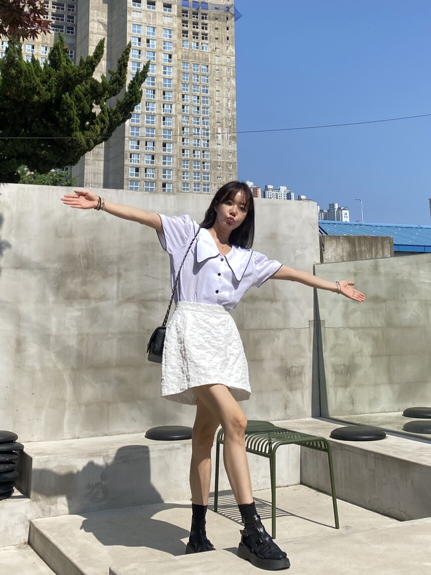 특징: 신축성 X, 비침 밝은컬러 약간, 안감 X , 두께감 보통, 무게감 보통