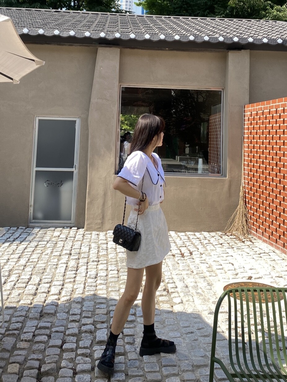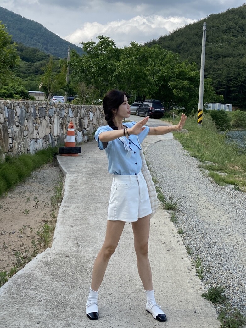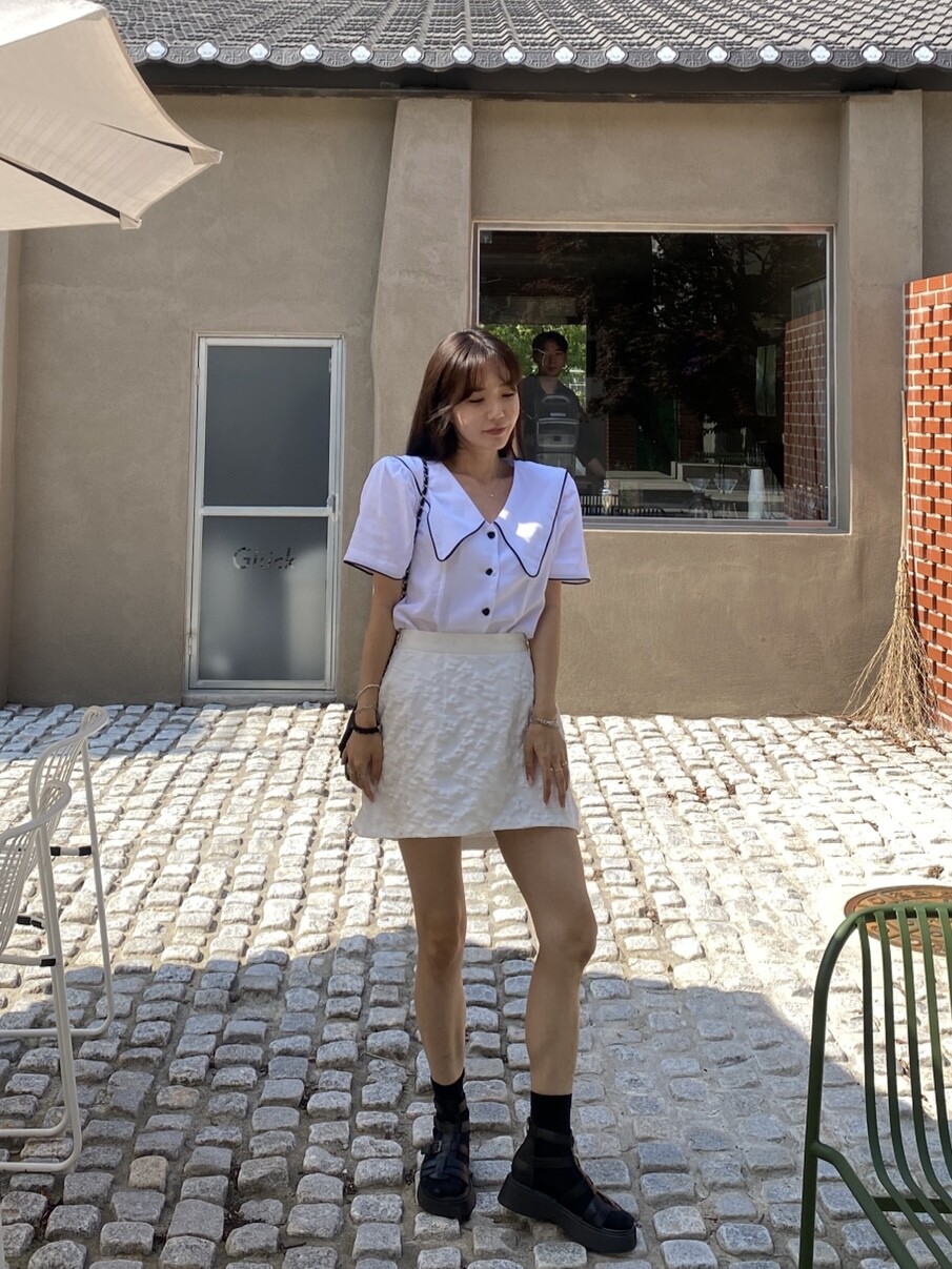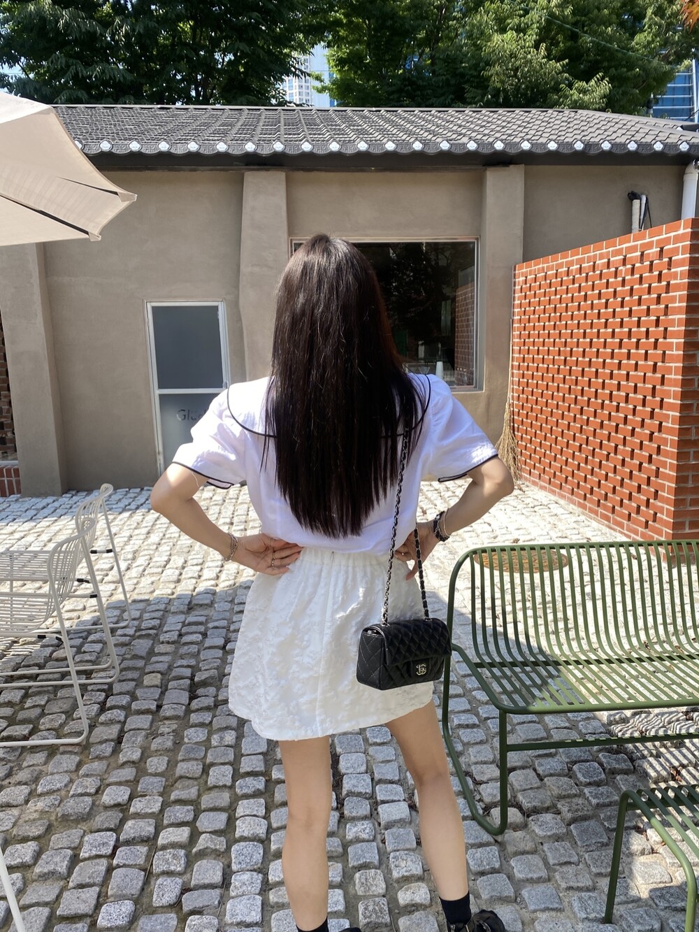 특징: 신축성 X, 비침 밝은컬러 약간, 안감 X , 두께감 보통, 무게감 보통