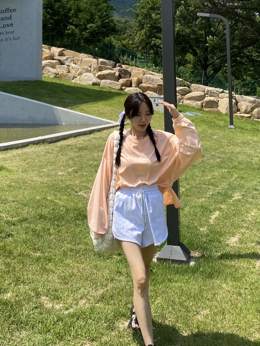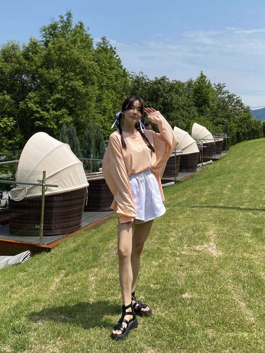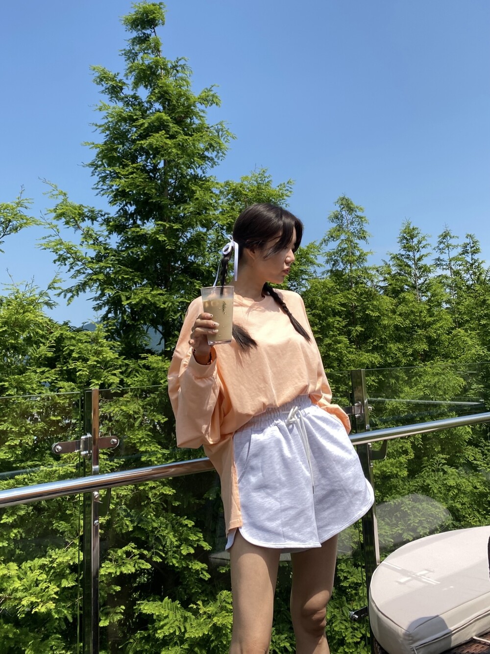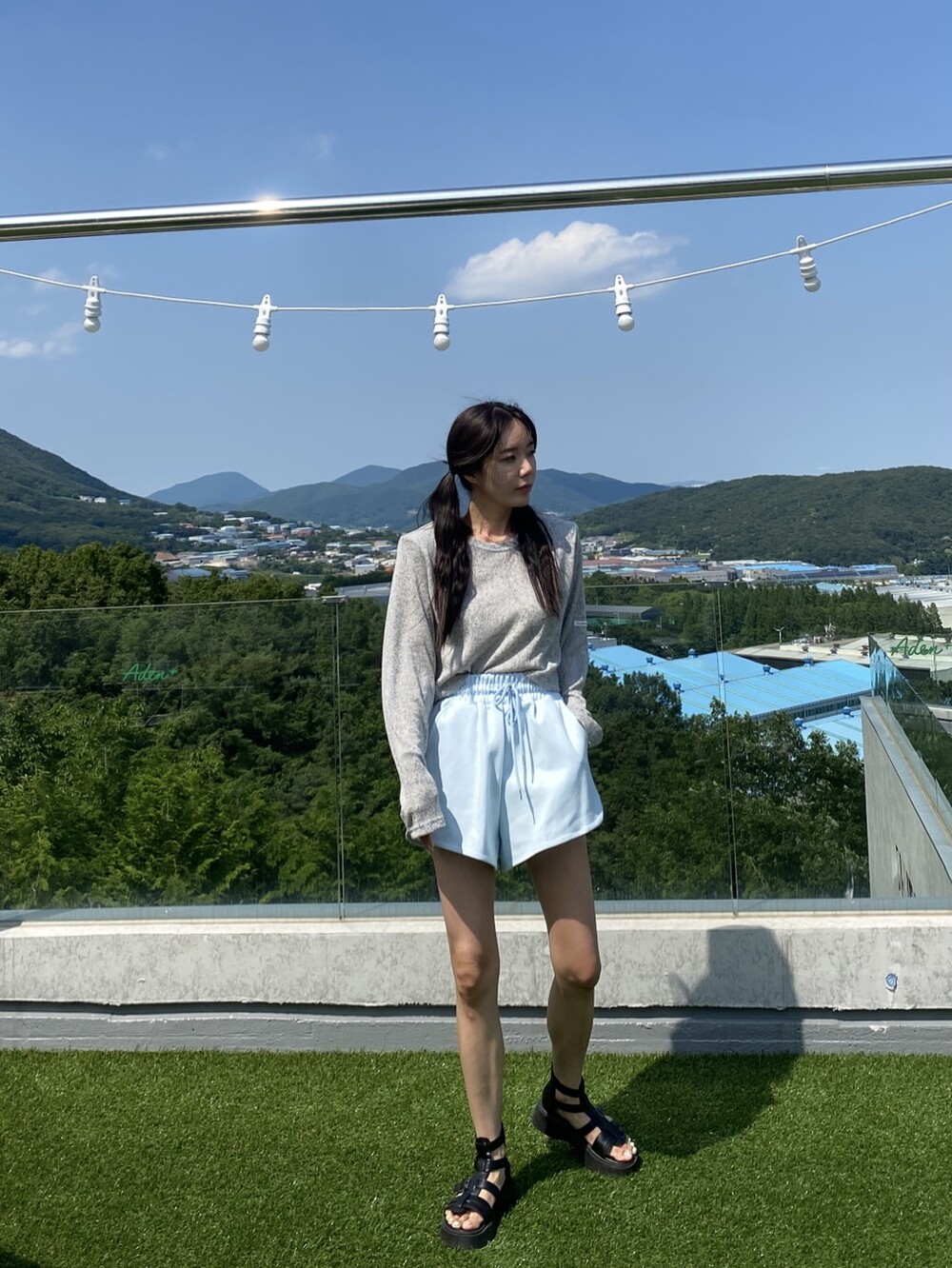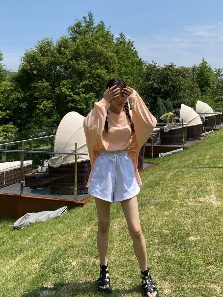 특징: 신축성 O, 비침X, 안감 X , 두께감 보통, 무게감 가벼움