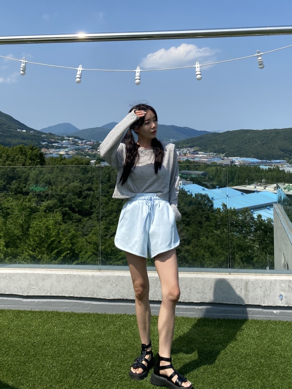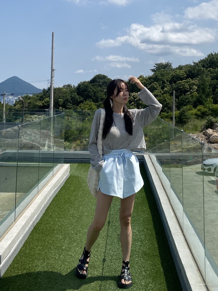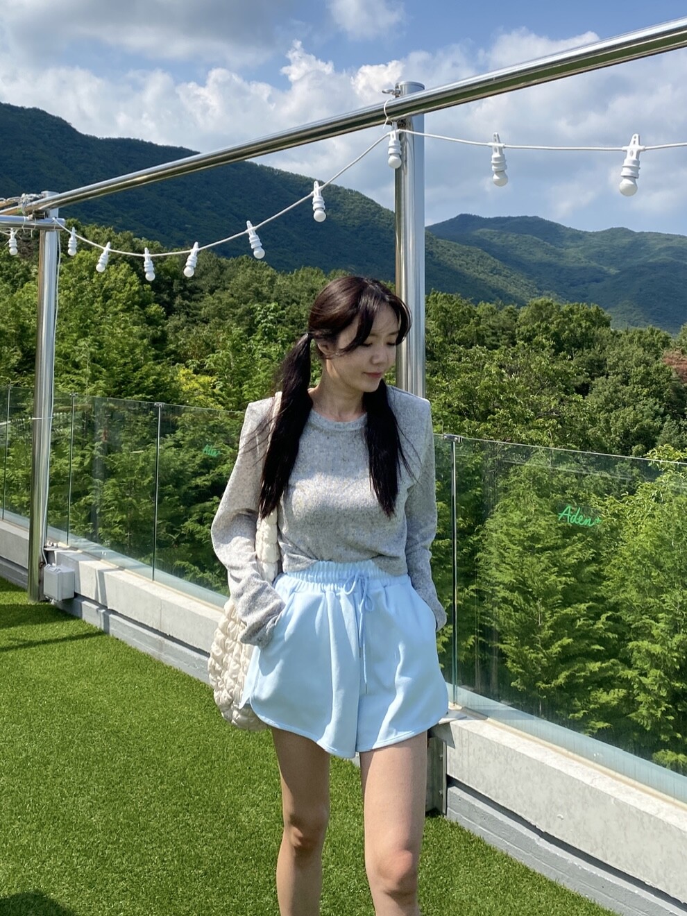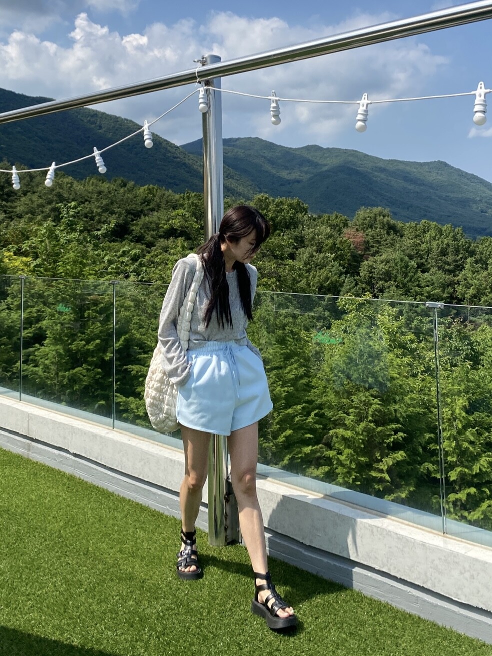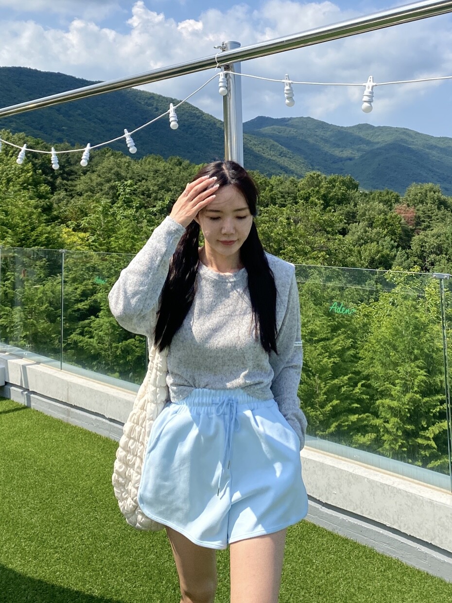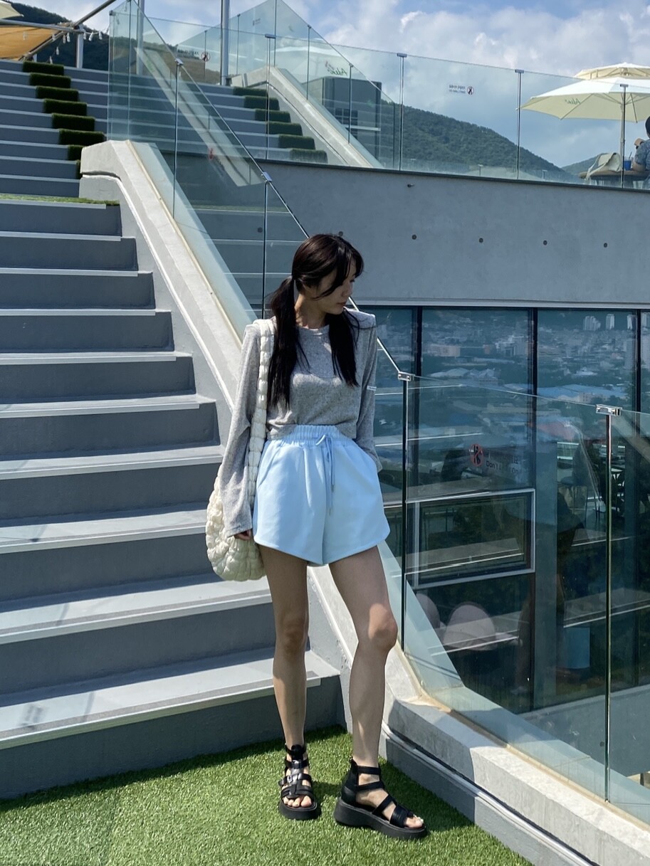 특징: 신축성 O, 비침X, 안감 X , 두께감 보통, 무게감 가벼움